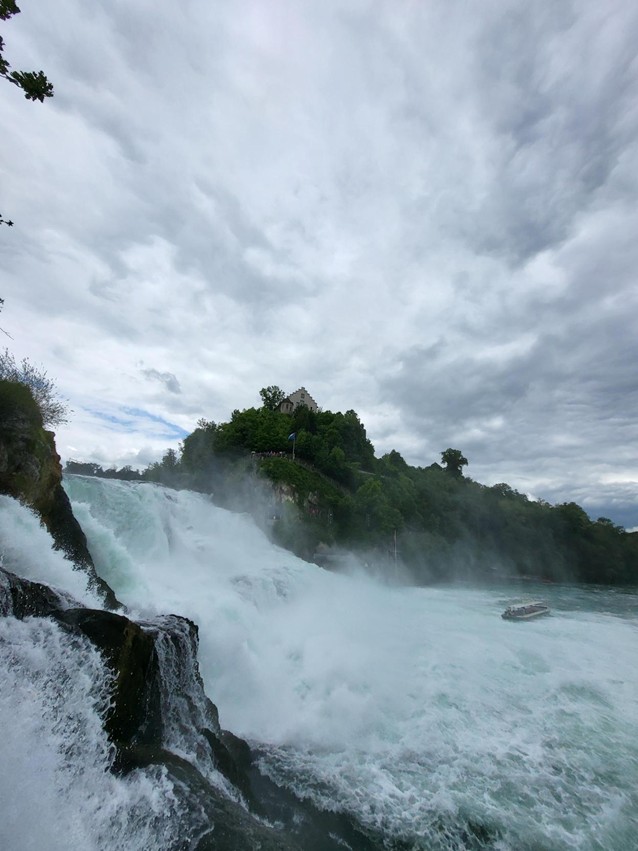 In Feuerthalen angekommen, überquerten wir zu Fuss die Brücke über den Rhein und genossen den wundervollen Blick auf die Festung Munot, ein echtes Highlight! Anschliessend schlenderten wir durch die Altstadt von Schaffhausen, liessen uns ein leckeres Glace schmecken und genossen das schöne Wetter. Danach fuhren wir mit einem Bus nach Neuhausen am Rheinfall. Nach einem kurzen Spaziergang standen wir schliesslich vor dem imposanten Naturschauspiel. Ein besonderes Erlebnis war die Bootsfahrt zum mittleren Felsen. Wir bestiegen eine Aussichtsplattform. Der Ausblick war atemberaubend!