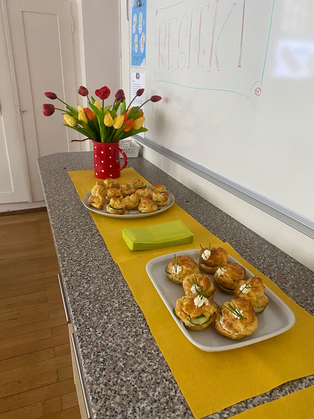 Unserer Kreativität waren kaum Grenzen gesetzt. In unterschiedlichsten Aufgaben konnten wir unser Wissen anwenden und neue Ideen ausprobieren. Den krönenden Abschluss bildete das grosse Finale – das Team-Backen zum Thema „Frühling pur“. Ziel war es, ein geschmacklich wie optisch passendes Gebäck zu kreieren.