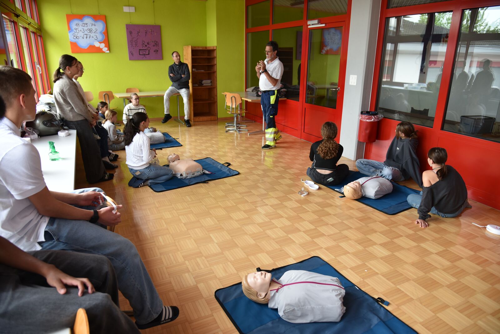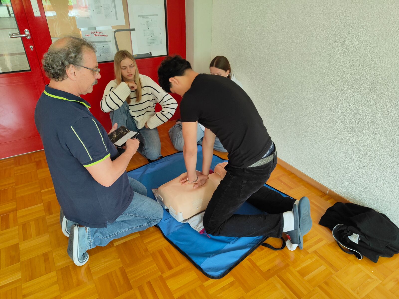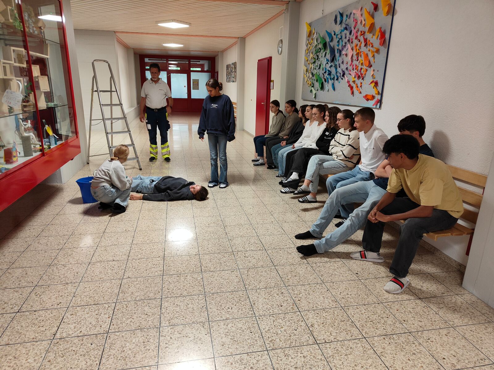 Während den Sondertagen bot sich für die Drittklässler die Möglichkeit, genau diese Frage in einem vom örtlichen Samariterverein organisierten Nothelferkurs zu klären. Dieses Jahr meldeten sich rund 50 Schülerinnen und Schüler. Vom Wissen über das richtige Handeln in Notsituationen profitiert besonders die Gesellschaft, und den Jugendlichen wird der Kurs beim Auto-Führerausweis angerechnet. Während drei Halbtagen lernten sie das Einmaleins der Ersten Hilfe anhand theoretischer und praktischer Beispiele. Zur Erlangung des Zertifikats musste am Ende jeder im Teamwork einen konkreten Notfall lösen. Diese Prüfung schafften die meisten mit Bravour.