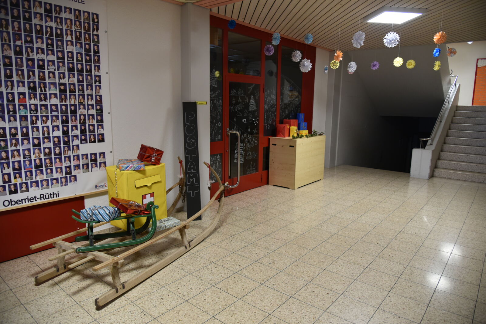 Die Adventszeit ist auch am OZ Oberriet angekommen. Eine grosse Tanne schmückt den Eingangsbereich des Schulhauses und ein grosser Wichtel lädt mit dem einem Schild "Hereinspaziert" zum Verweilen ein. Die von den einzelnen Schulklassen aufwändig dekorierten Schulzimmertüren bilden das Weihnachtsdorf OZO.