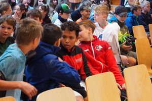 Mit einer kurzen Vorstellung aller Lehrpersonen, den wichtigsten Informationen und schlussendlich der Einteilung in die vier Klassen, startete für 86 Schülerinnen und Schüler der erste Tag am OZO. Die Begrüssung wurde von einem grossartigen musikalischen Einsatz von Rafael Keel aus der 3ra unterstrichen.
