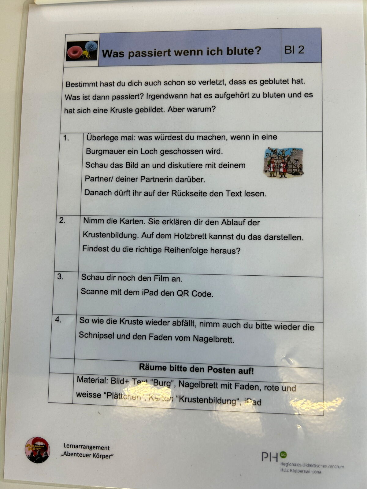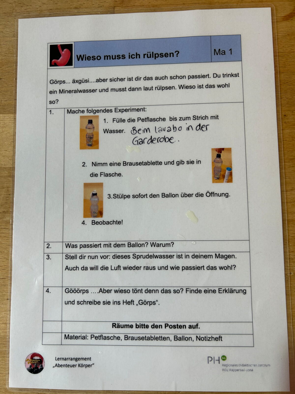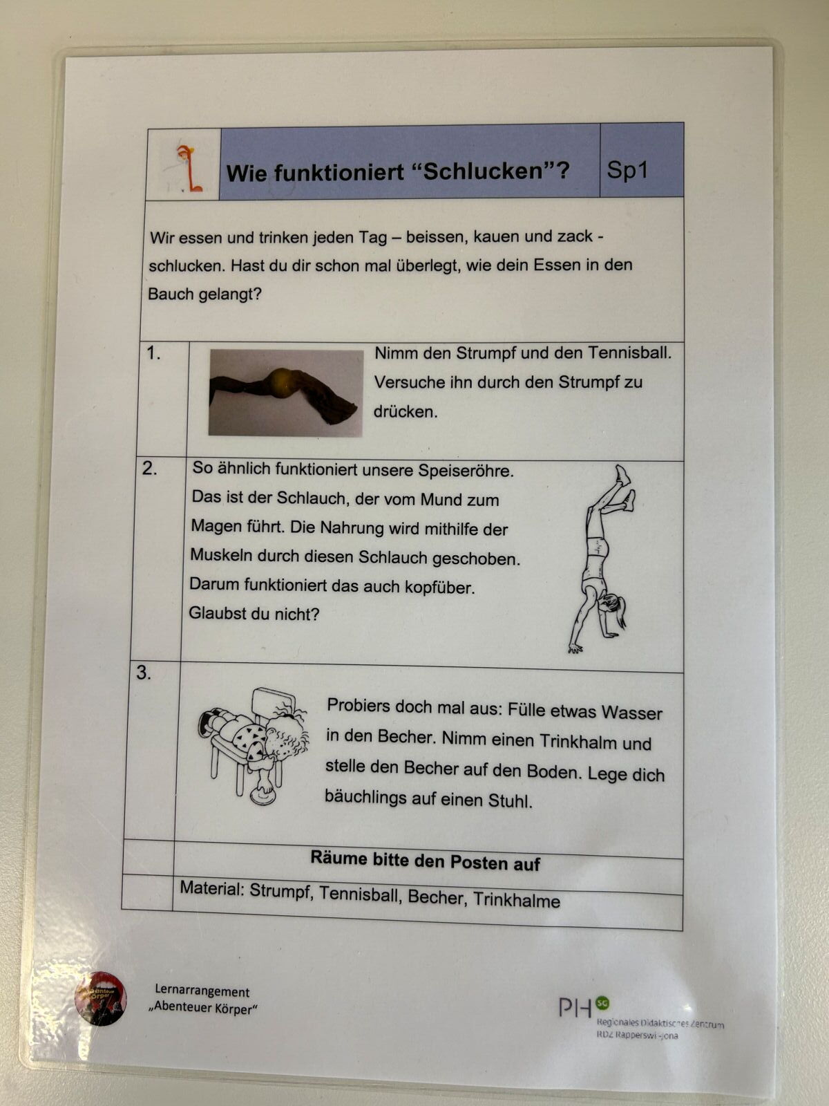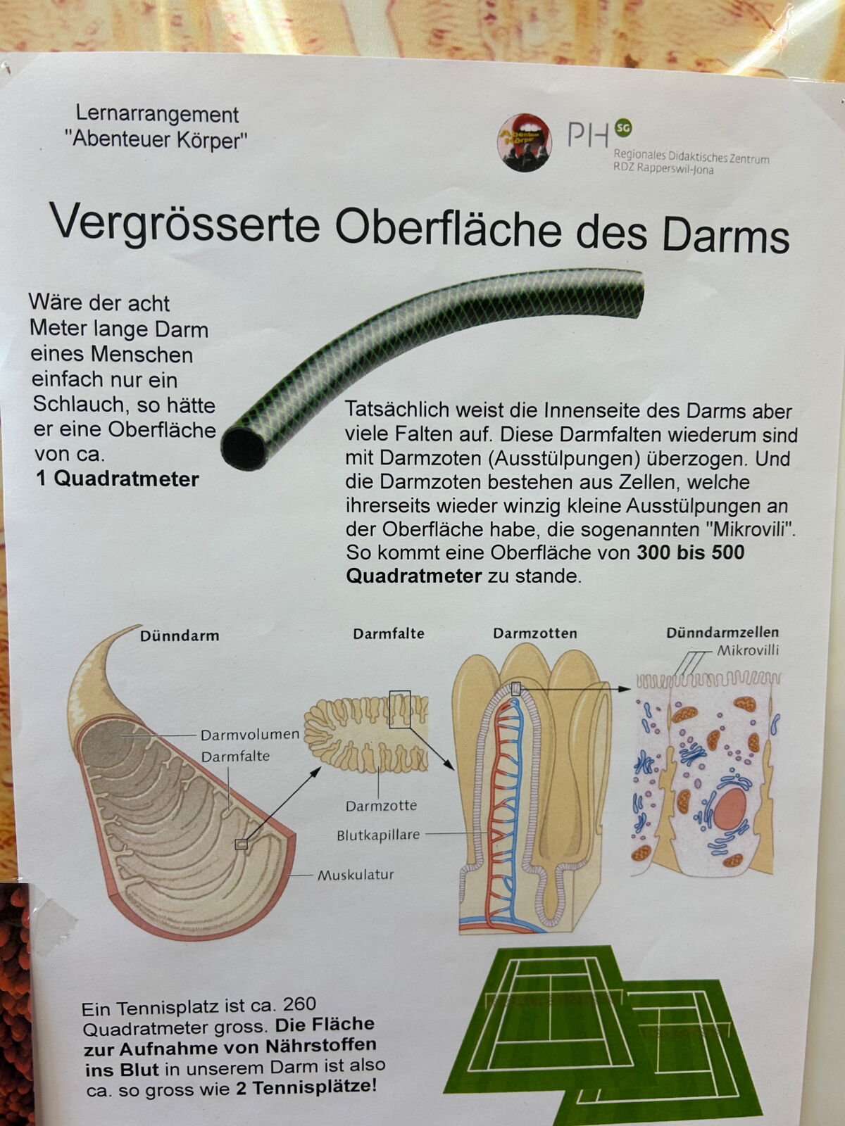 Durch einen Körper wandern und dabei ganz nebenbei vieles über unsere inneren Organe lernen? Genau dies haben die Kinder der 5./6. Klasse zusammen mit ihren Lehrpersonen gemacht. Im RDZ (Regionales Didaktisches Zentrum) in Sargans gibt es eine Lernumgebung, die sich den verschiedenen Systemen des menschlichen Körpers widmet. Die Reise hat sich wirklich gelohnt!