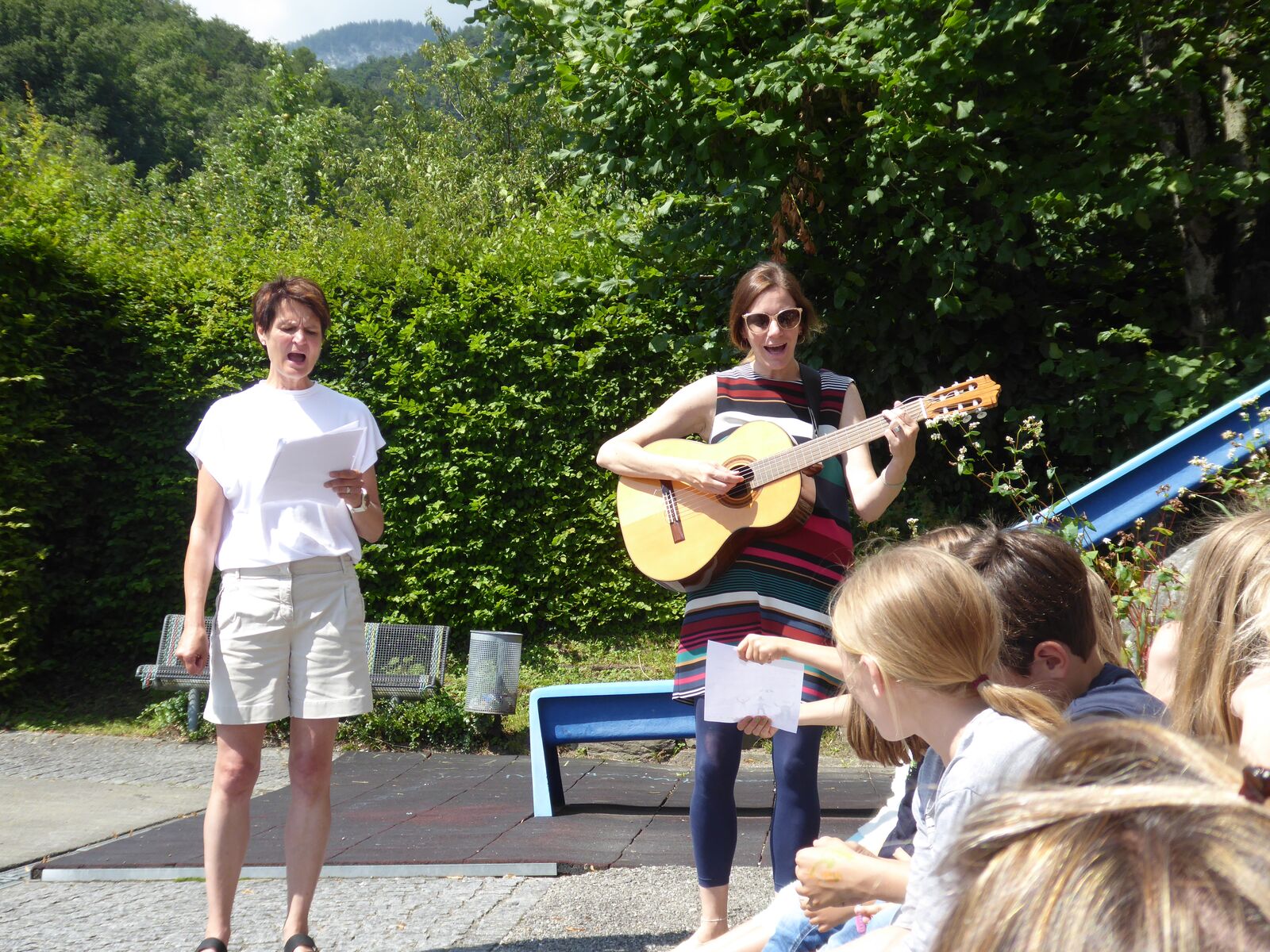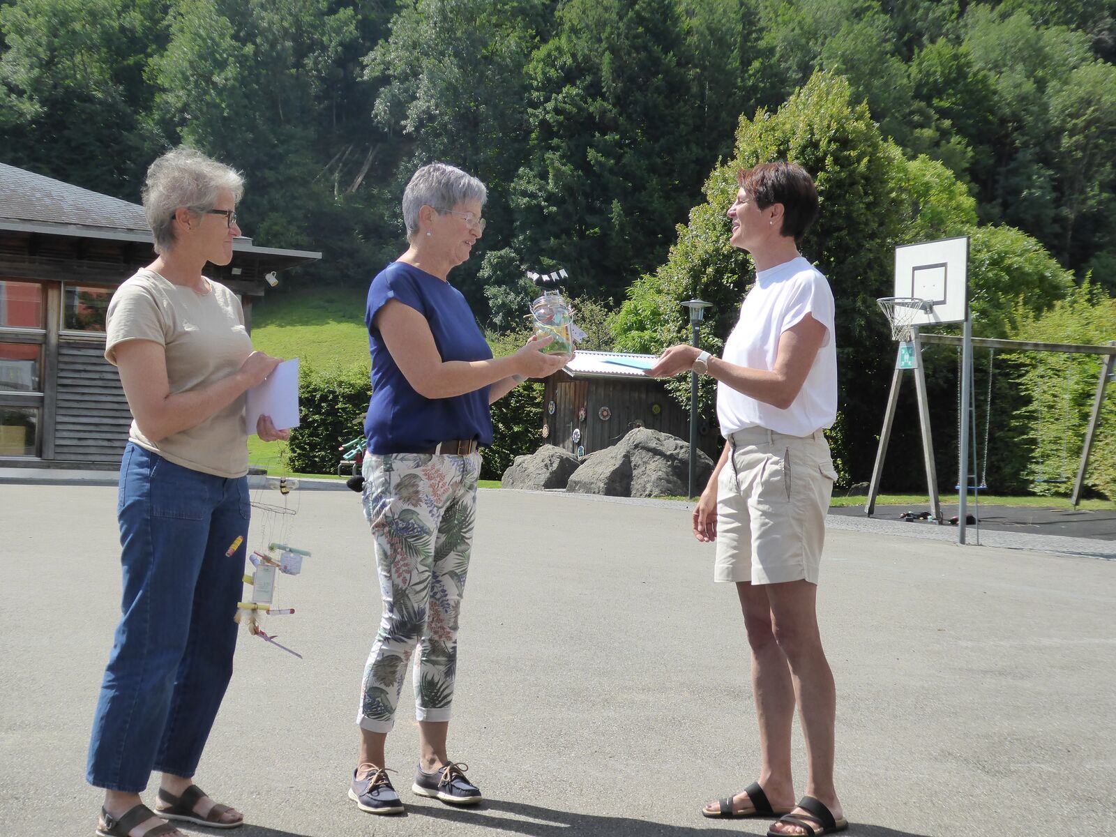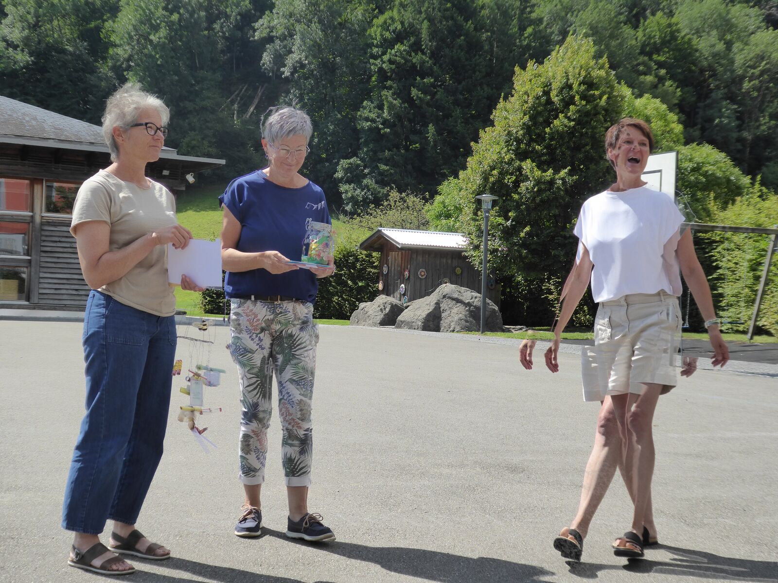Nach jahrelangem Wirken an unserer Schule wurden Franziska Graber und Renate Dietsche von allen Kindern und Lehrkräften verabschiedet und mit einem Geschenk in die Ferien geschickt. Franziska und Renate haben sich über Jahre für die Kinder und das Team unserer Schule mit Herzblut engagiert. Wir wünschen ihnen für die Zukunft nur das Beste!