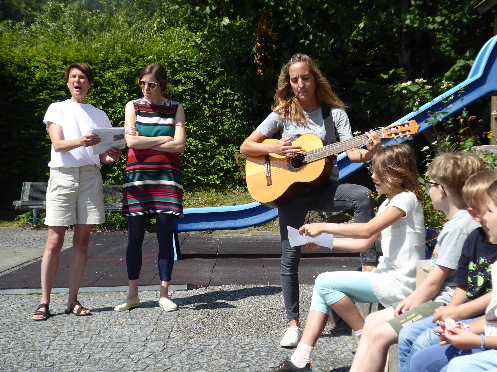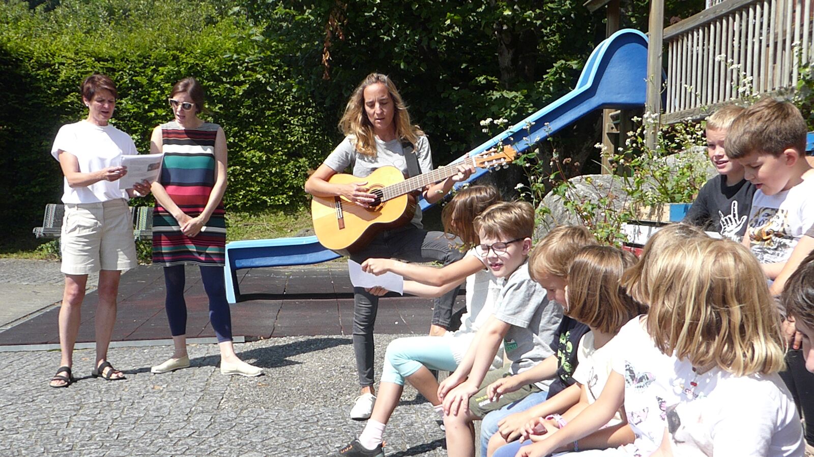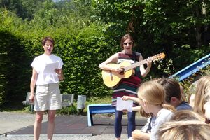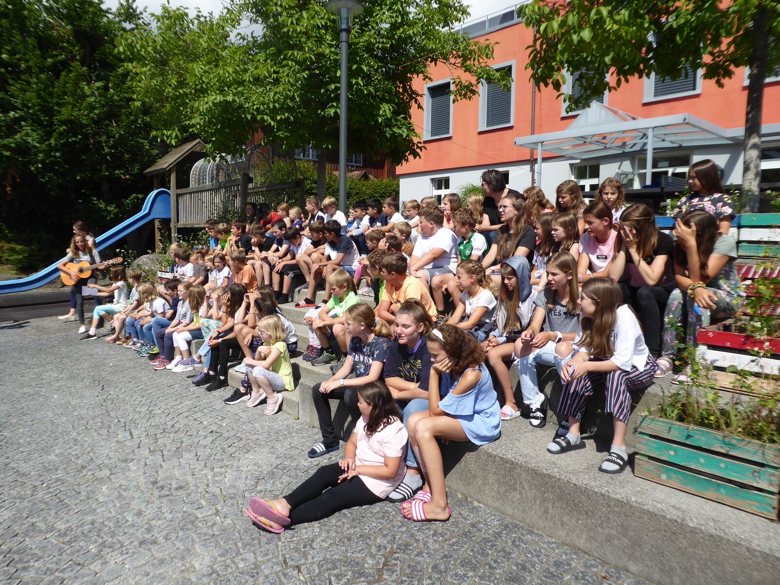 Nach jahrelangem Wirken an unserer Schule wurden Franziska Graber und Renate Dietsche von allen Kindern und Lehrkräften verabschiedet und mit einem Geschenk in die Ferien geschickt. Franziska und Renate haben sich über Jahre für die Kinder und das Team unserer Schule mit Herzblut engagiert. Wir wünschen ihnen für die Zukunft nur das Beste!