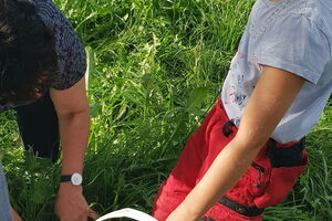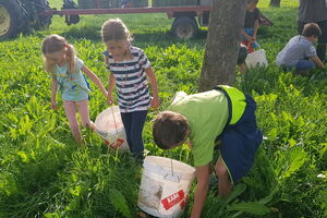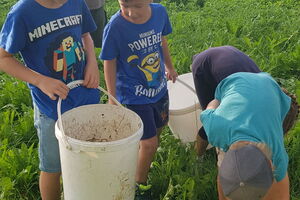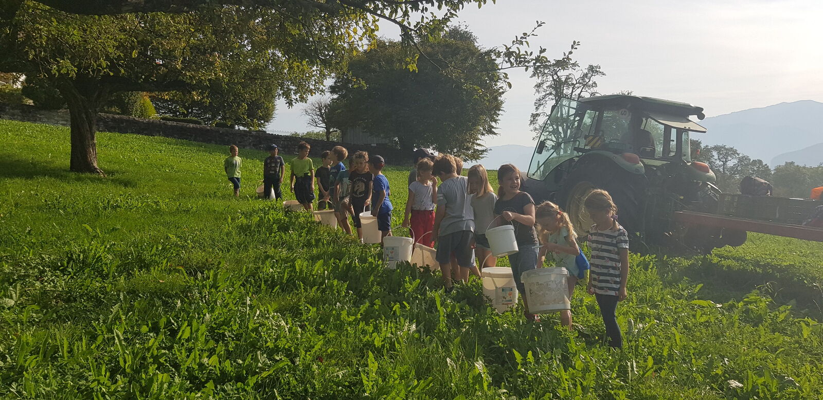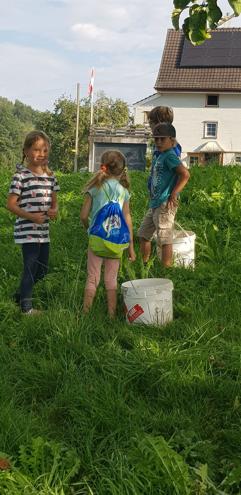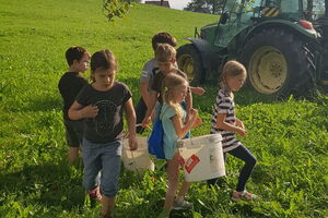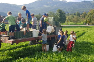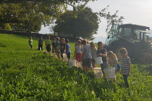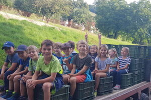Wir konnten auf dem Anhänger vom Traktor sitzen.