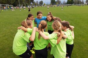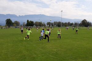 Wenn der CS Cup stattfindet, ist die Stimmung wie an einem Grümpelturnier. Während die einen verbissen dem Ball hinterherjagen, nehmen es andere eher locker. Die Mädchen der 5./6. Klasse Kobelwald fanden in Widnau auf dem Fussballplatz Aegeten eine gute Mischung aus Ehrgeiz und Lockerheit. Die mitgereisten Eltern bekamen tollen Sport, grossen Einsatz und spannende Matches zu sehen. Der Teamgedanke stand ganz im Vordergrund, und um ein Haar hätte es für's Halbfinale gereicht!