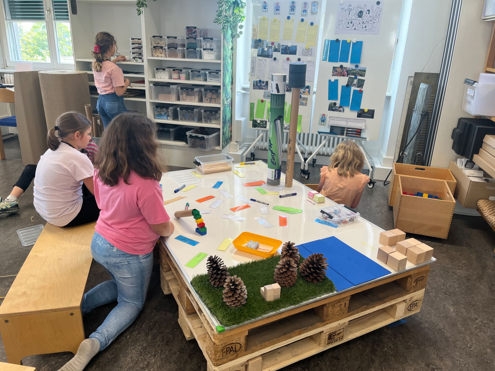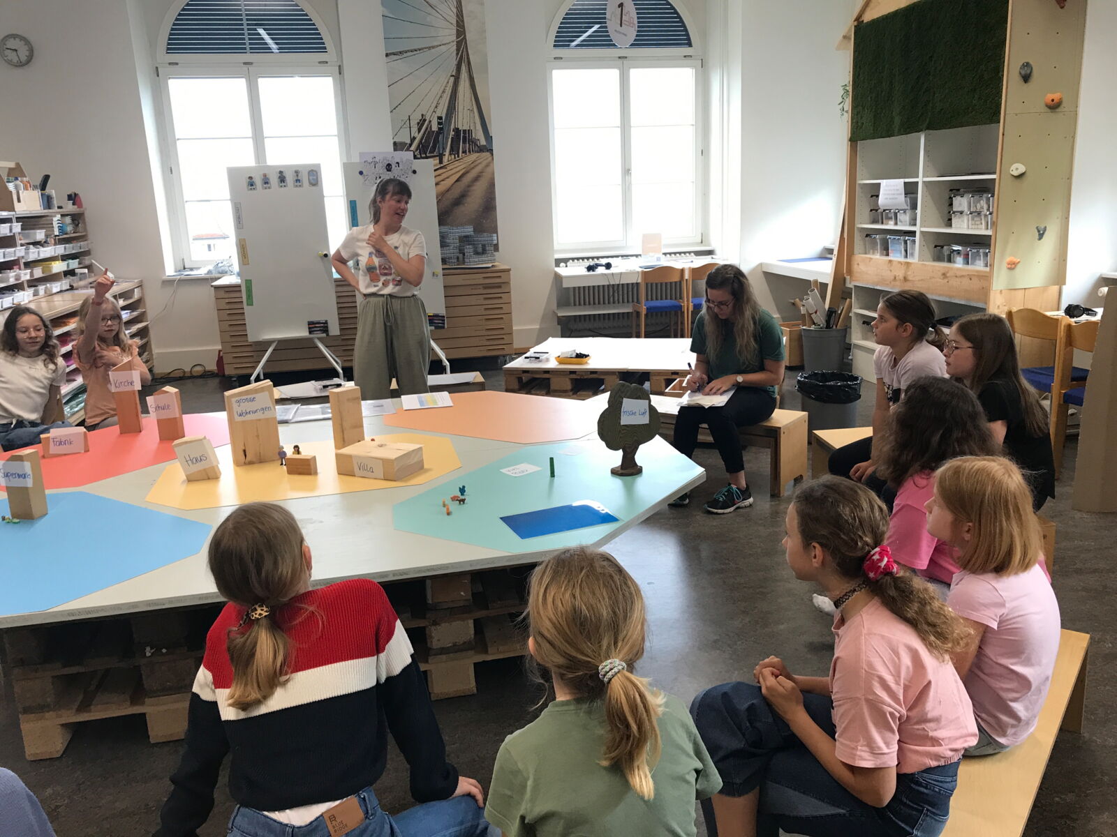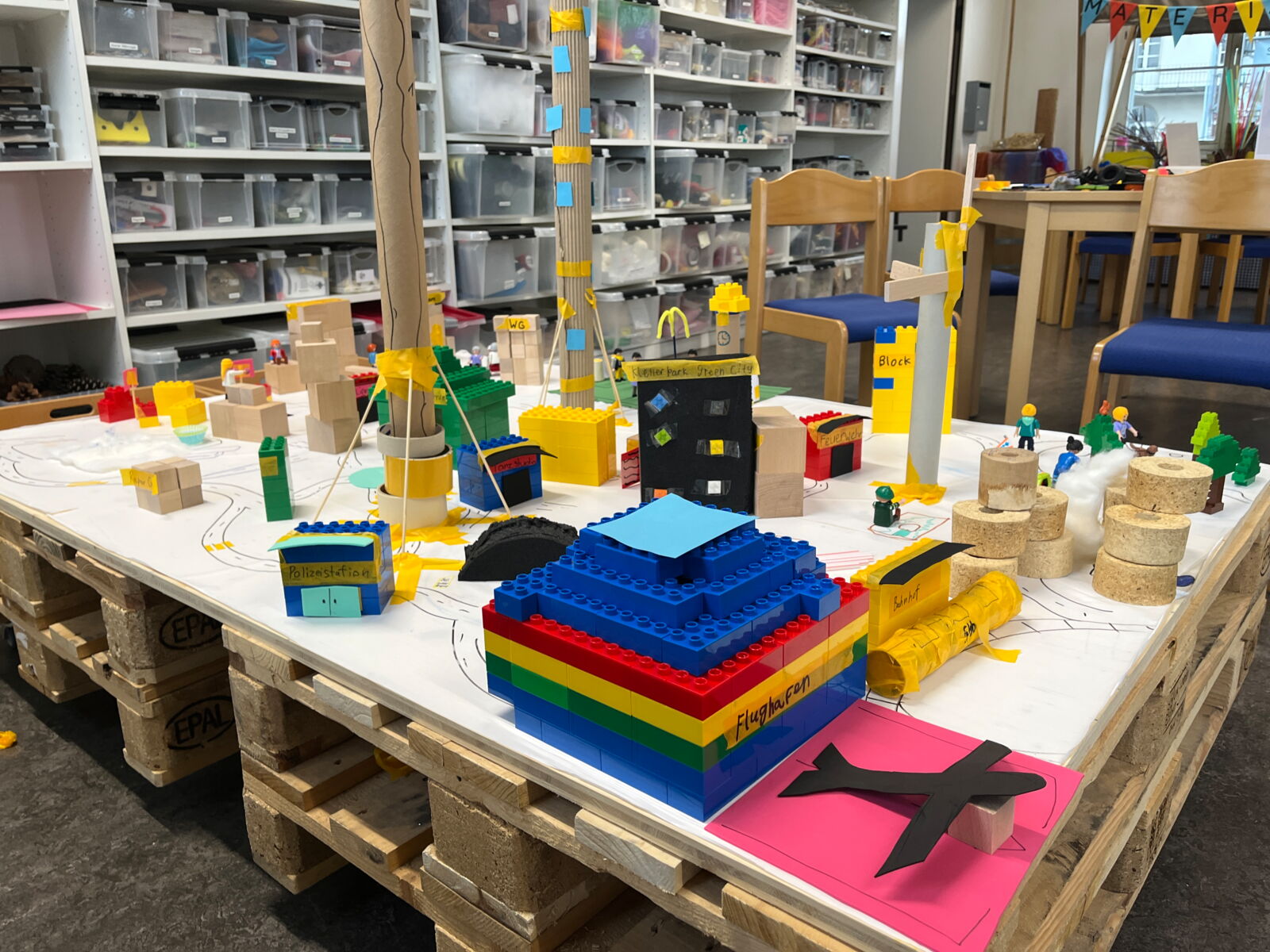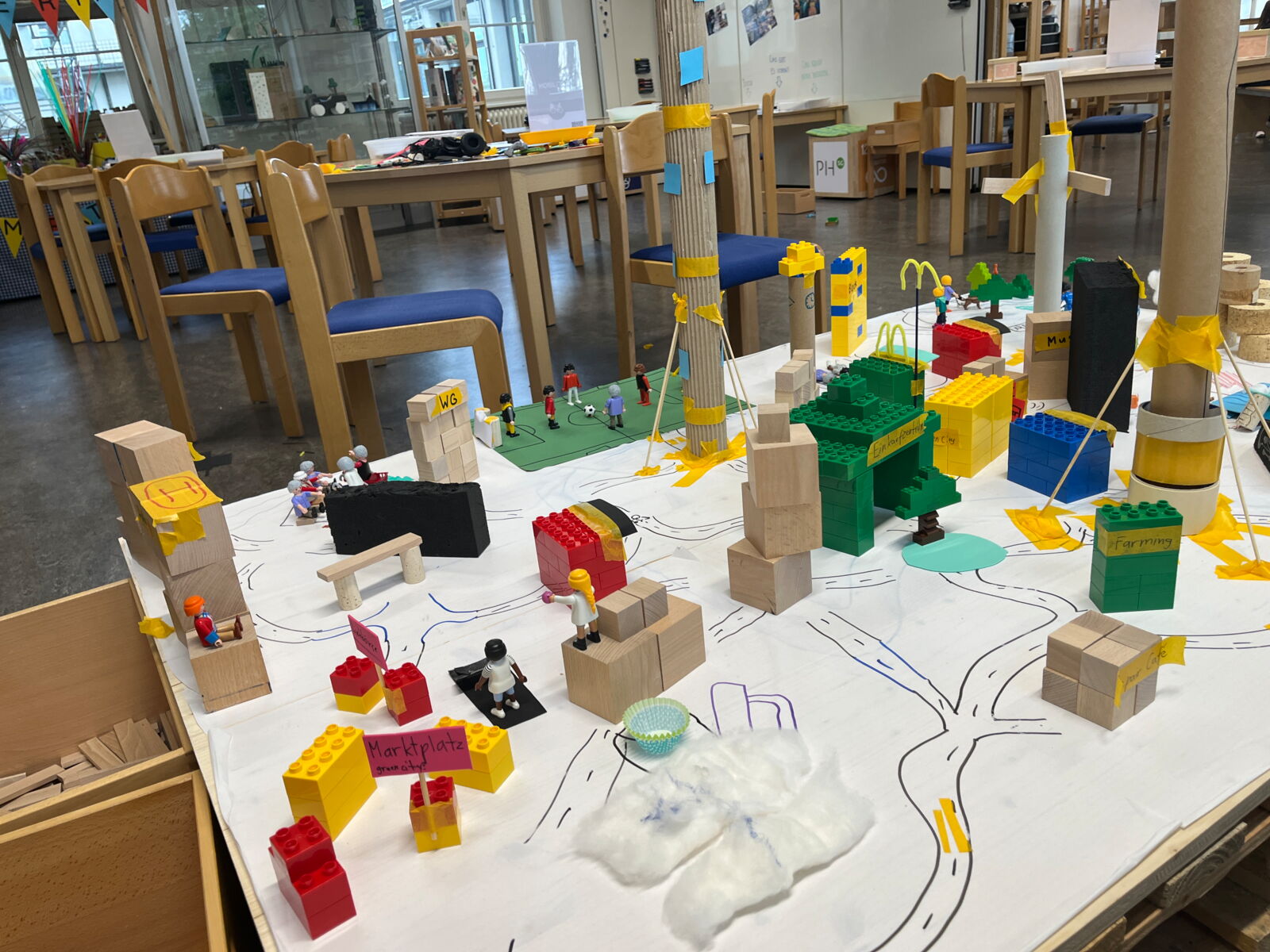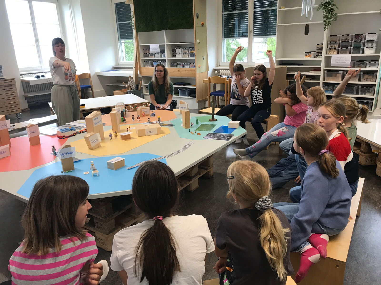 Im Rahmen einer kurzen Knacknuss hat sich die 3./4. Klasse mit dem Thema Städte der Zukunft beschäftigt. Wir haben das Leben auf dem Land und das Leben in der Stadt unter die Lupe genommen und dabei viele Unterschiede und Gemeinsamkeiten entdeckt. Um tiefer in die Thematik einzutauchen, haben wir die Knacknuss mit einem Ausflug ins didaktische Zentrum in Rorschach abgeschlossen, wo wir ein Lernarrangement zum Thema «Future Cities» absolvieren durften. Dort haben die Kinder gelernt, was es in einer Stadt braucht, damit diese ein lebenswerter Wohn- und Lebensraum sein kann. Mit dem Bau einer eigenen Stadt, konnten sie das neu erlernte Wissen direkt umsetzen und ihr Ergebnis am Ende präsentieren.