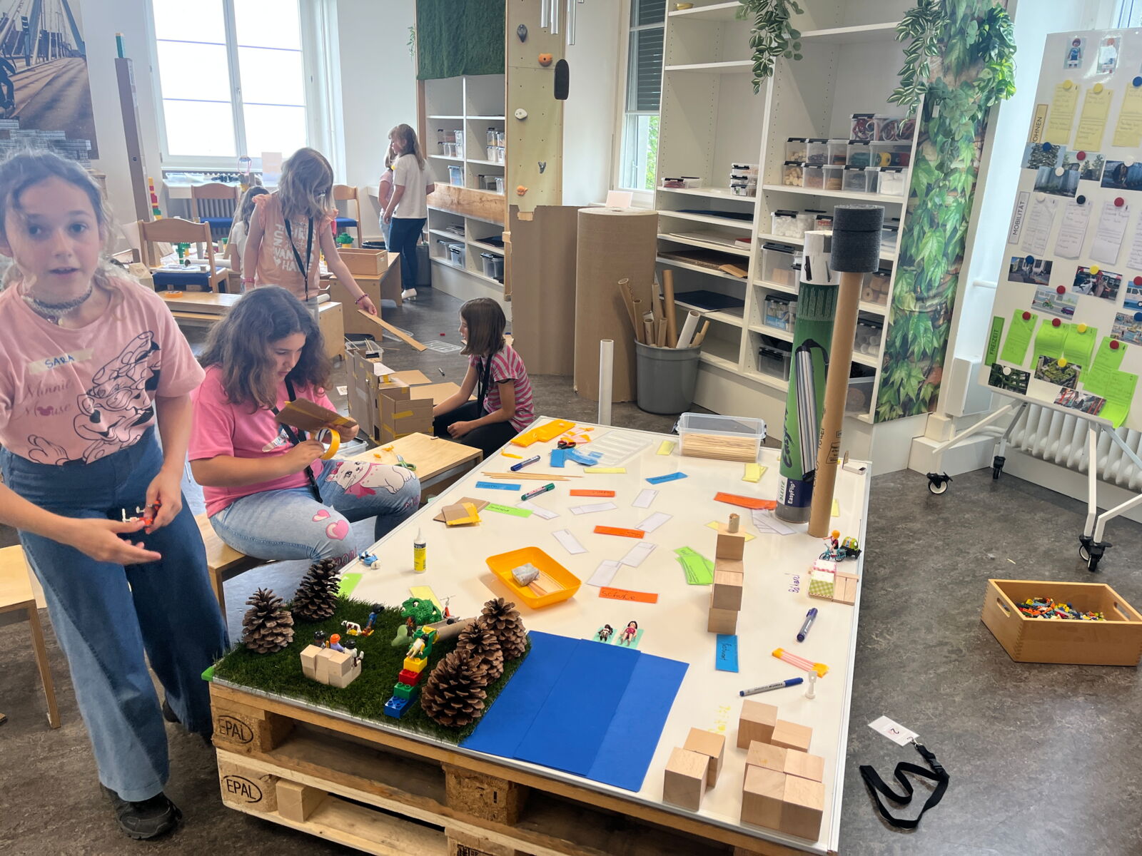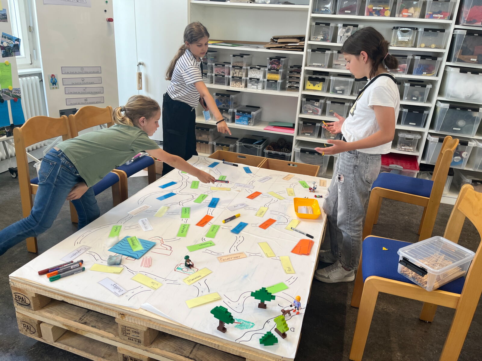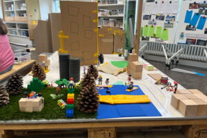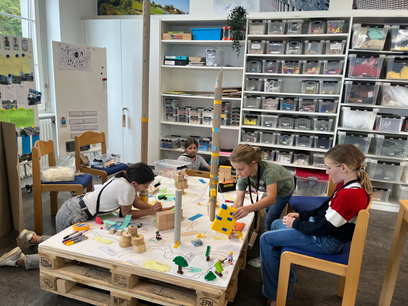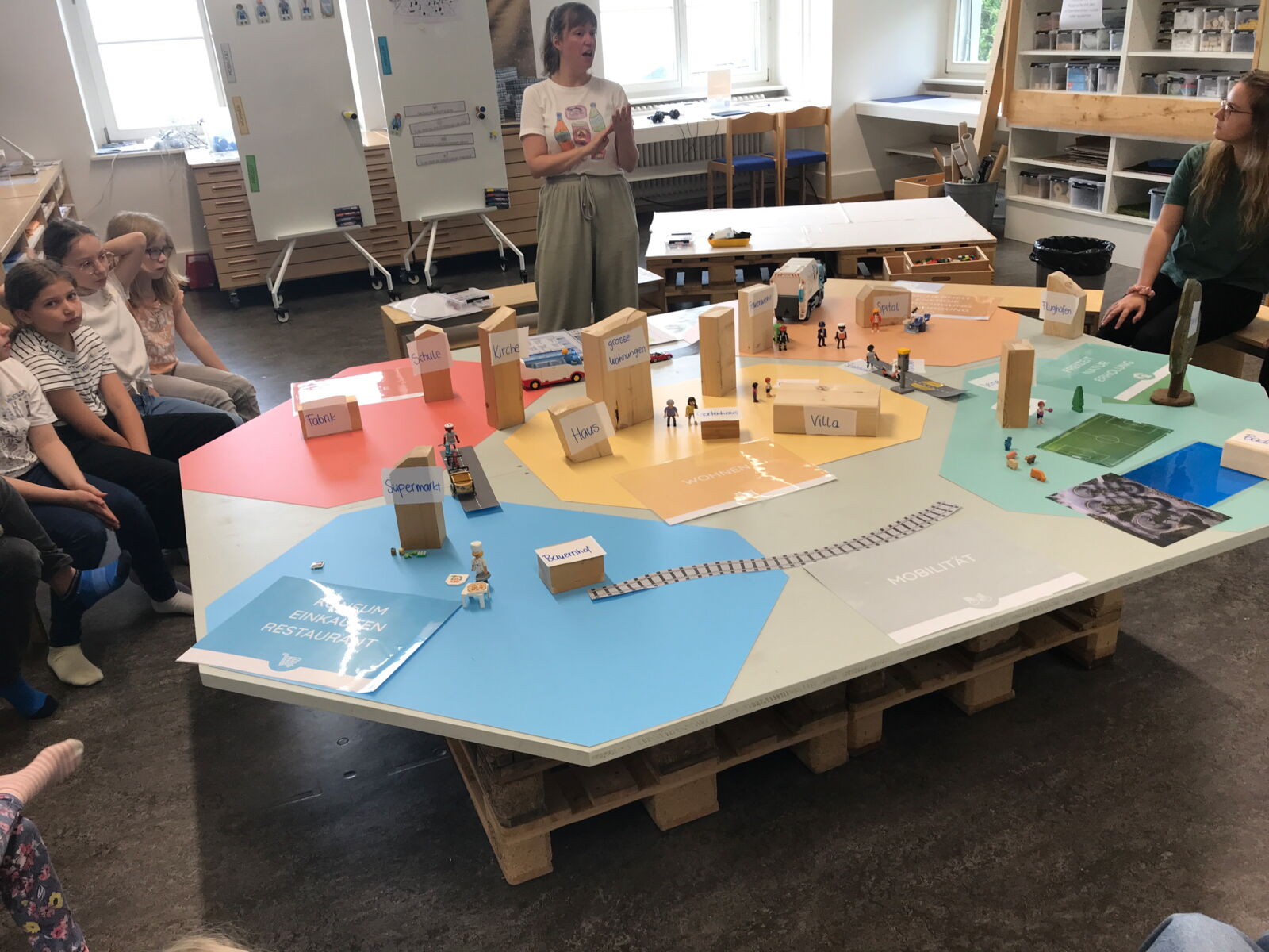 Im Rahmen einer kurzen Knacknuss hat sich die 3./4. Klasse mit dem Thema Städte der Zukunft beschäftigt. Wir haben das Leben auf dem Land und das Leben in der Stadt unter die Lupe genommen und dabei viele Unterschiede und Gemeinsamkeiten entdeckt. Um tiefer in die Thematik einzutauchen, haben wir die Knacknuss mit einem Ausflug ins didaktische Zentrum in Rorschach abgeschlossen, wo wir ein Lernarrangement zum Thema «Future Cities» absolvieren durften. Dort haben die Kinder gelernt, was es in einer Stadt braucht, damit diese ein lebenswerter Wohn- und Lebensraum sein kann. Mit dem Bau einer eigenen Stadt, konnten sie das neu erlernte Wissen direkt umsetzen und ihr Ergebnis am Ende präsentieren.