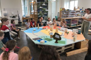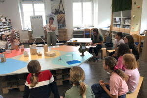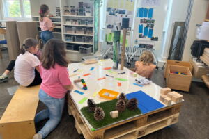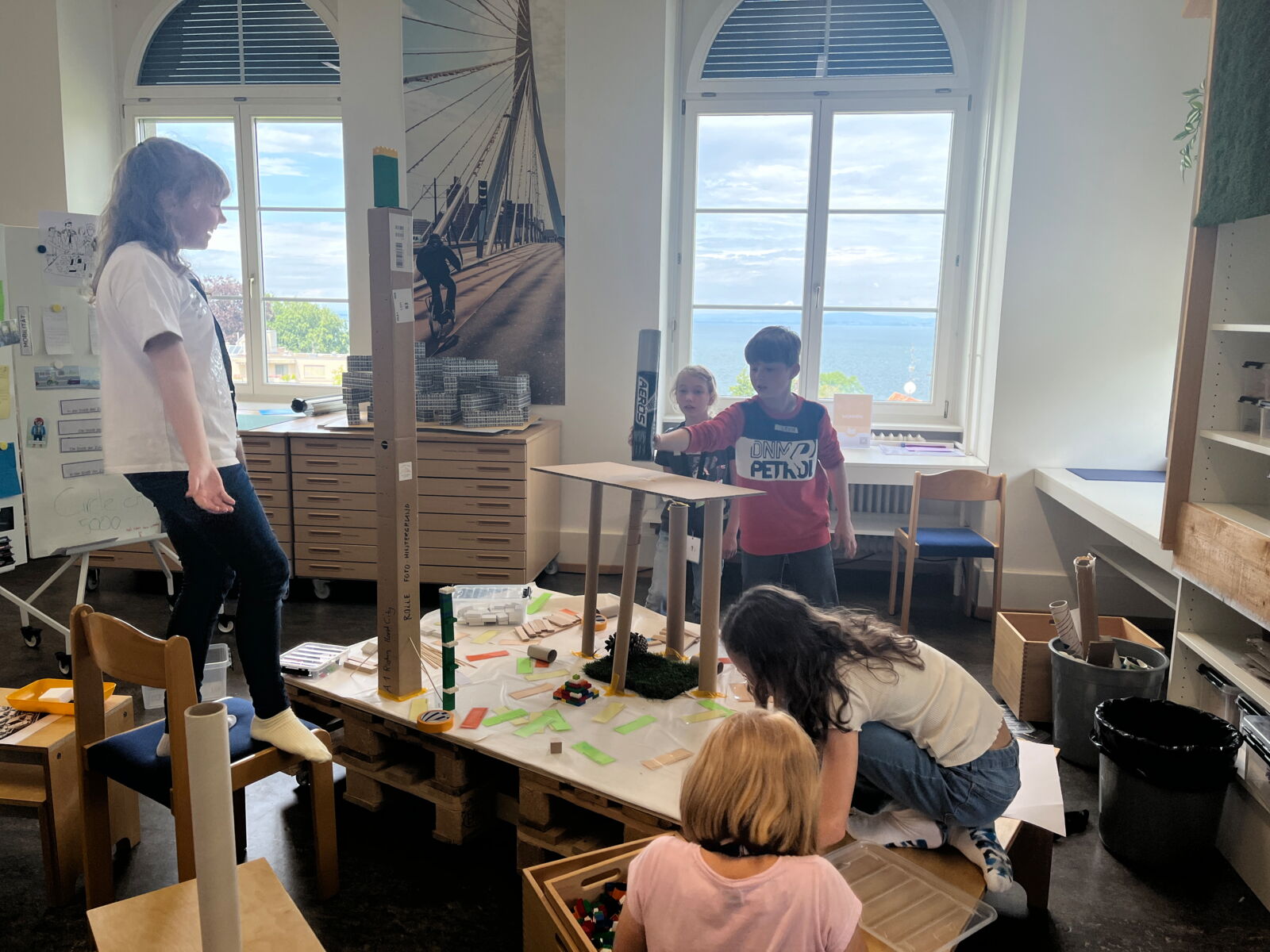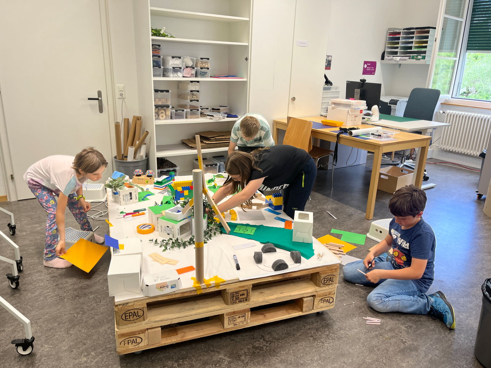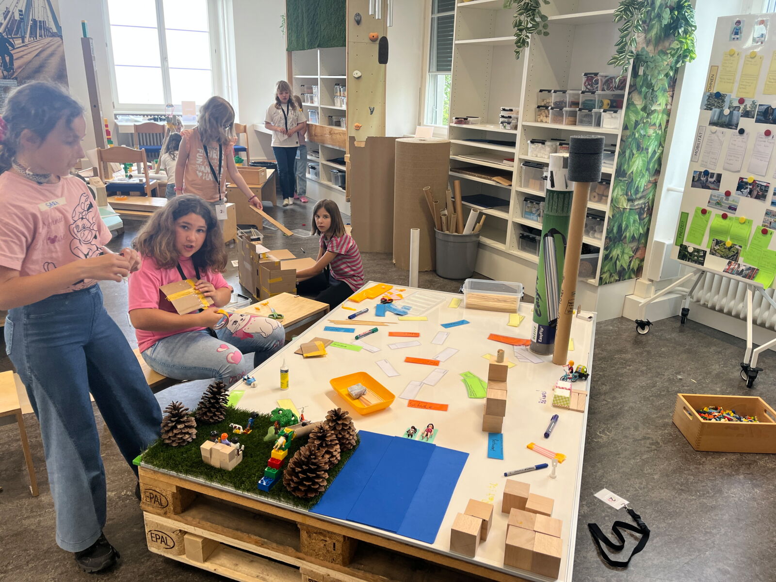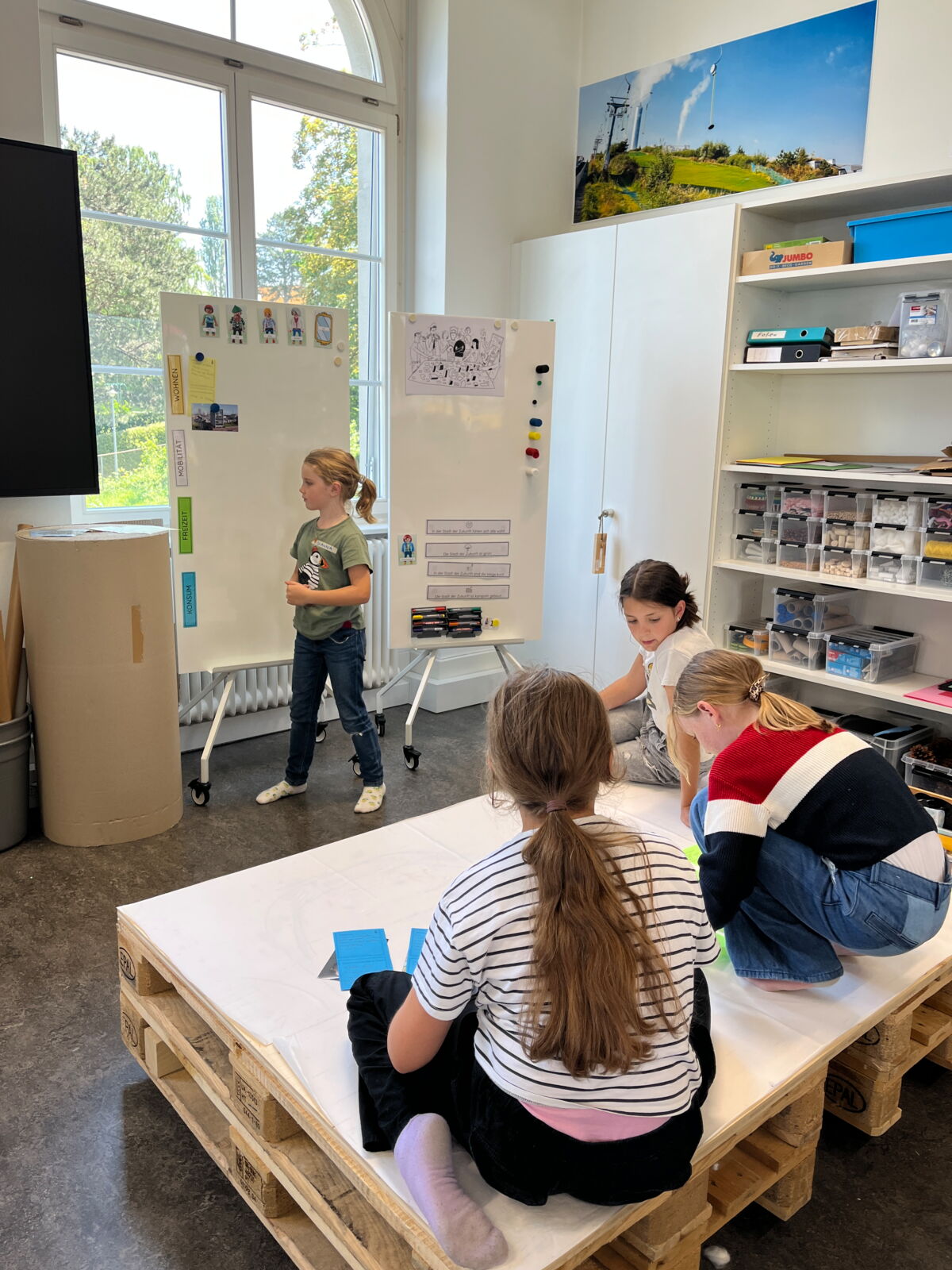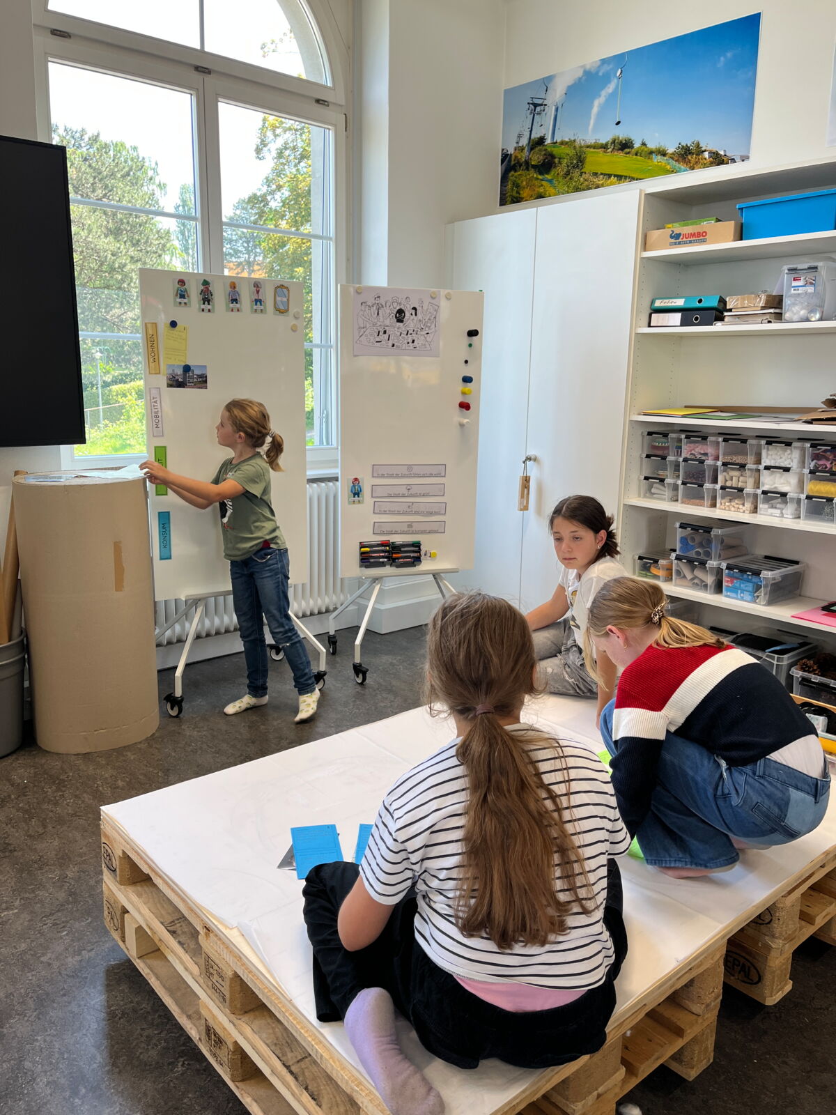 Im Rahmen einer kurzen Knacknuss hat sich die 3./4. Klasse mit dem Thema Städte der Zukunft beschäftigt. Wir haben das Leben auf dem Land und das Leben in der Stadt unter die Lupe genommen und dabei viele Unterschiede und Gemeinsamkeiten entdeckt. Um tiefer in die Thematik einzutauchen, haben wir die Knacknuss mit einem Ausflug ins didaktische Zentrum in Rorschach abgeschlossen, wo wir ein Lernarrangement zum Thema «Future Cities» absolvieren durften. Dort haben die Kinder gelernt, was es in einer Stadt braucht, damit diese ein lebenswerter Wohn- und Lebensraum sein kann. Mit dem Bau einer eigenen Stadt, konnten sie das neu erlernte Wissen direkt umsetzen und ihr Ergebnis am Ende präsentieren.
