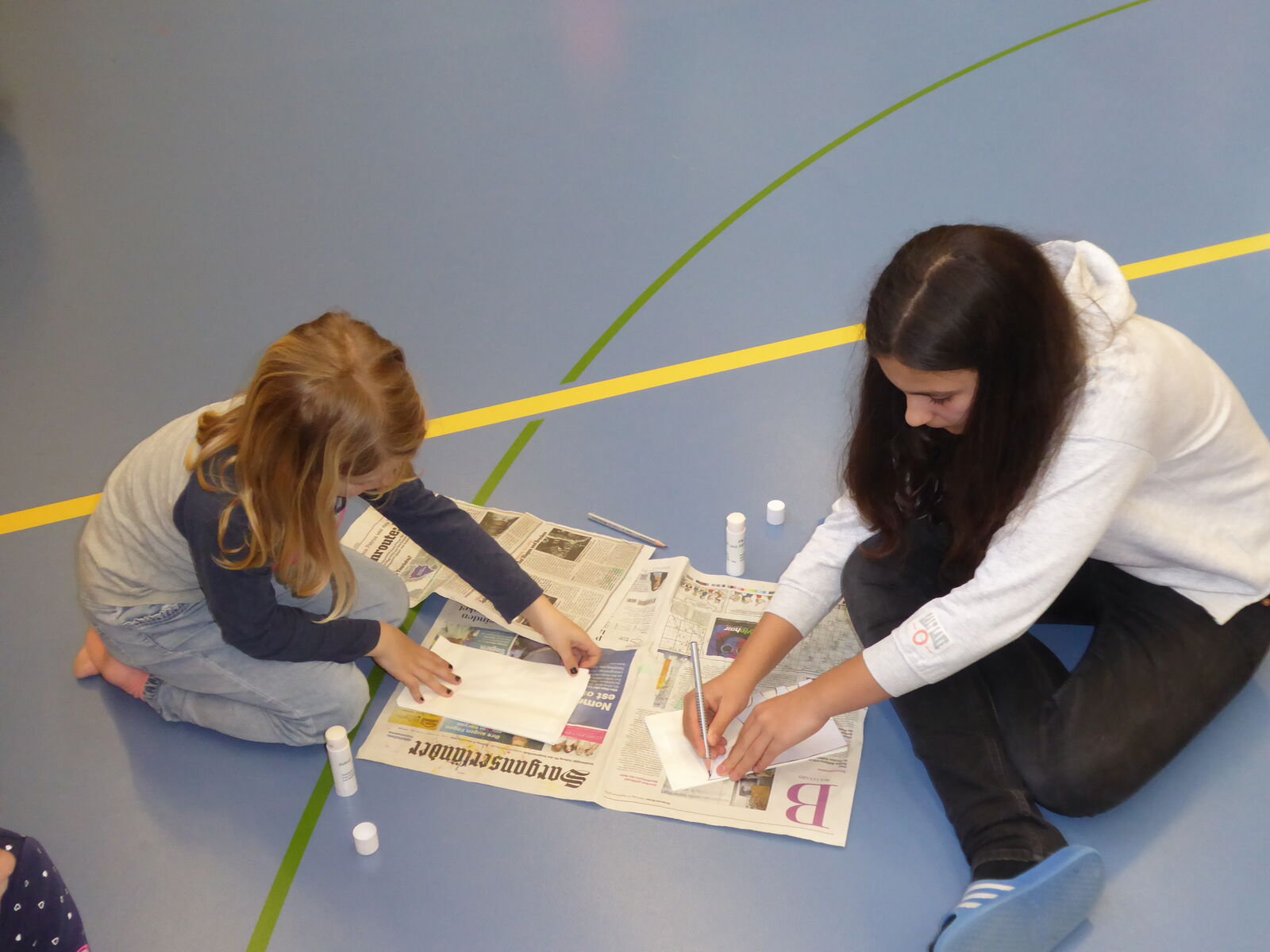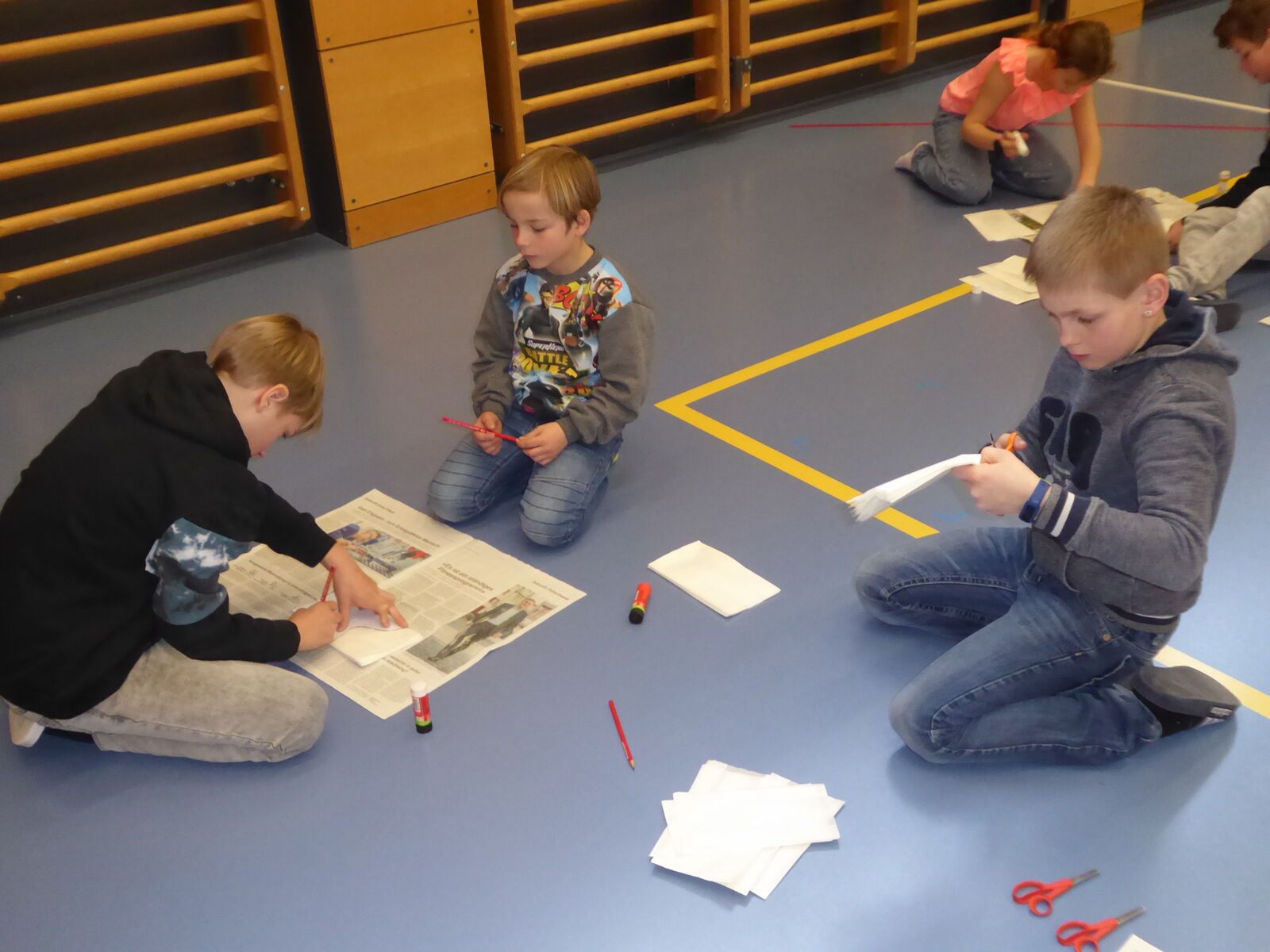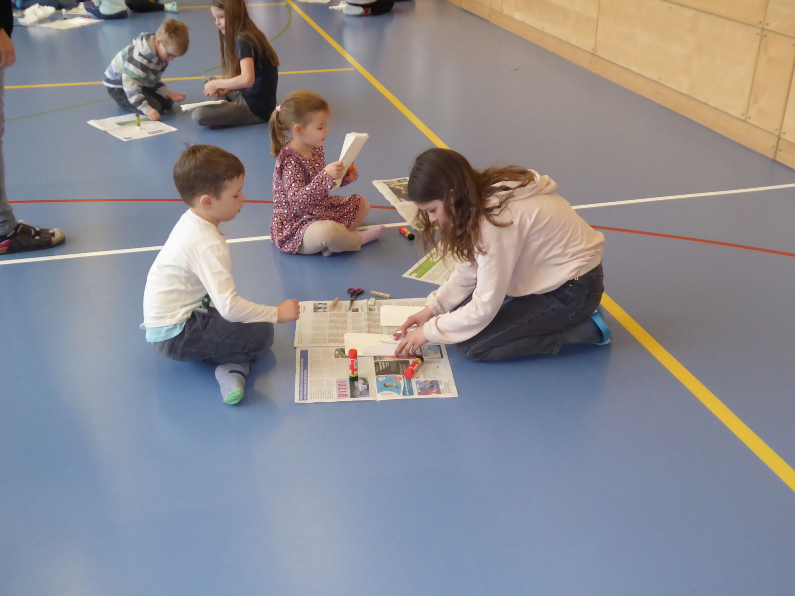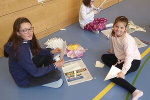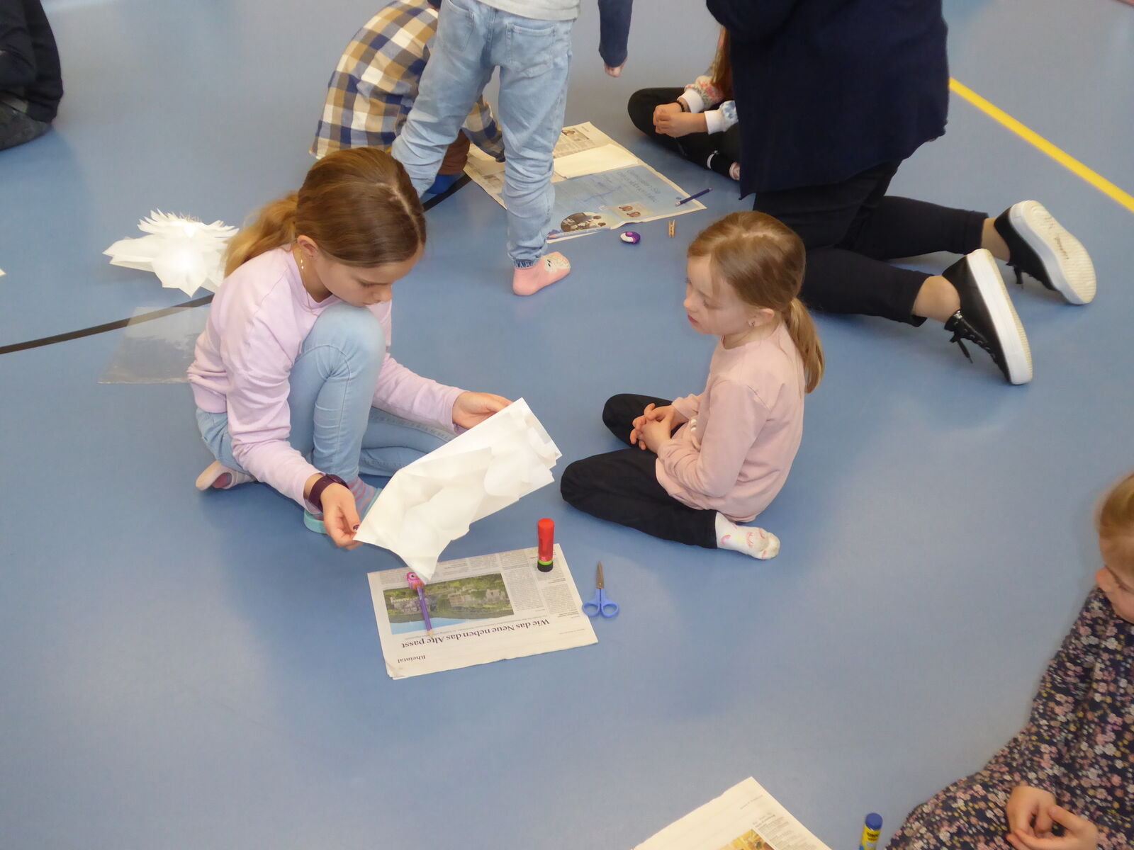 Am Gotta-Götti-Anlass im März stellten alle Kinder eine farbige Blume her, die in den nächsten Wochen als Dekoration dienen wird.