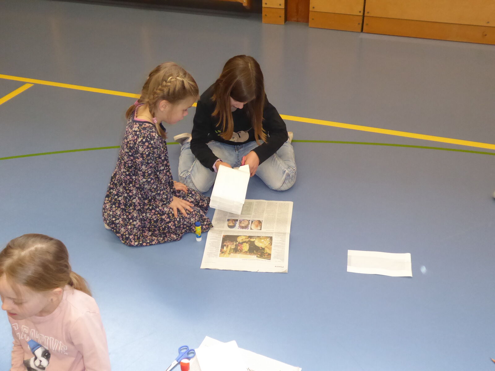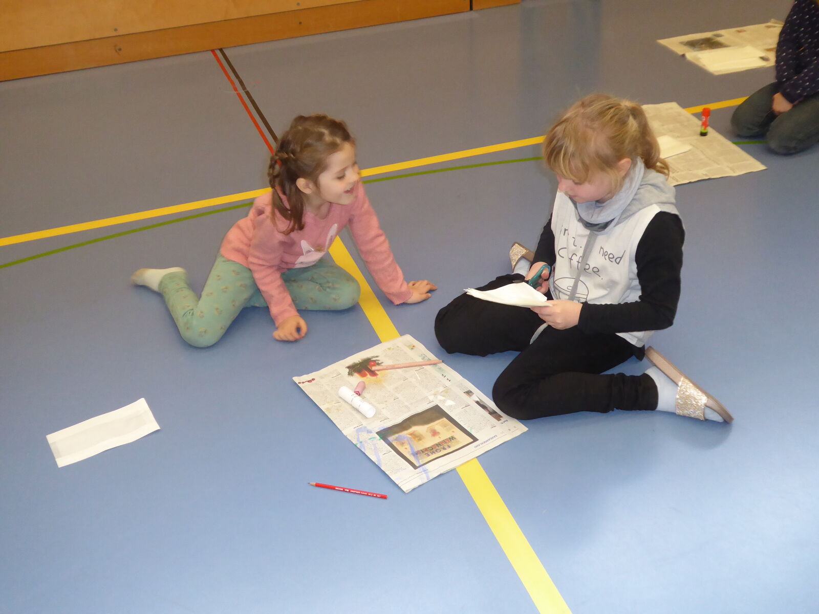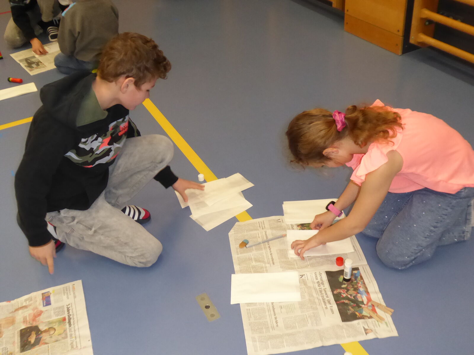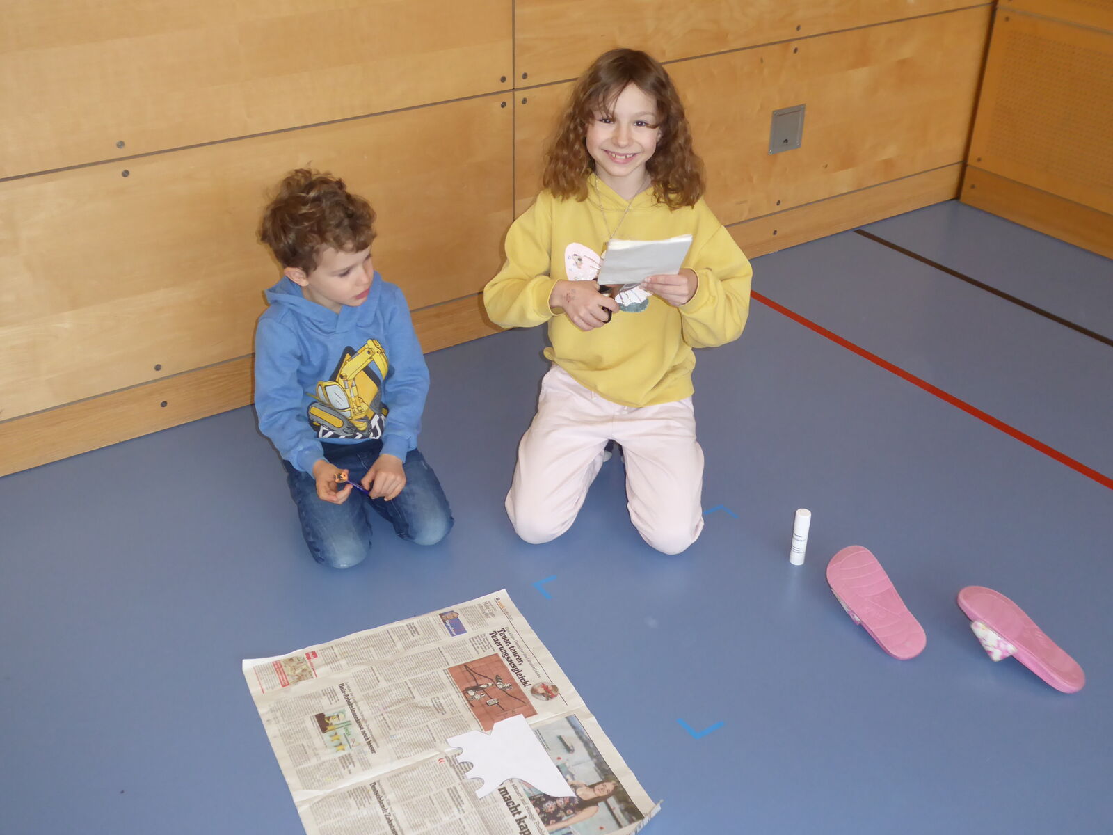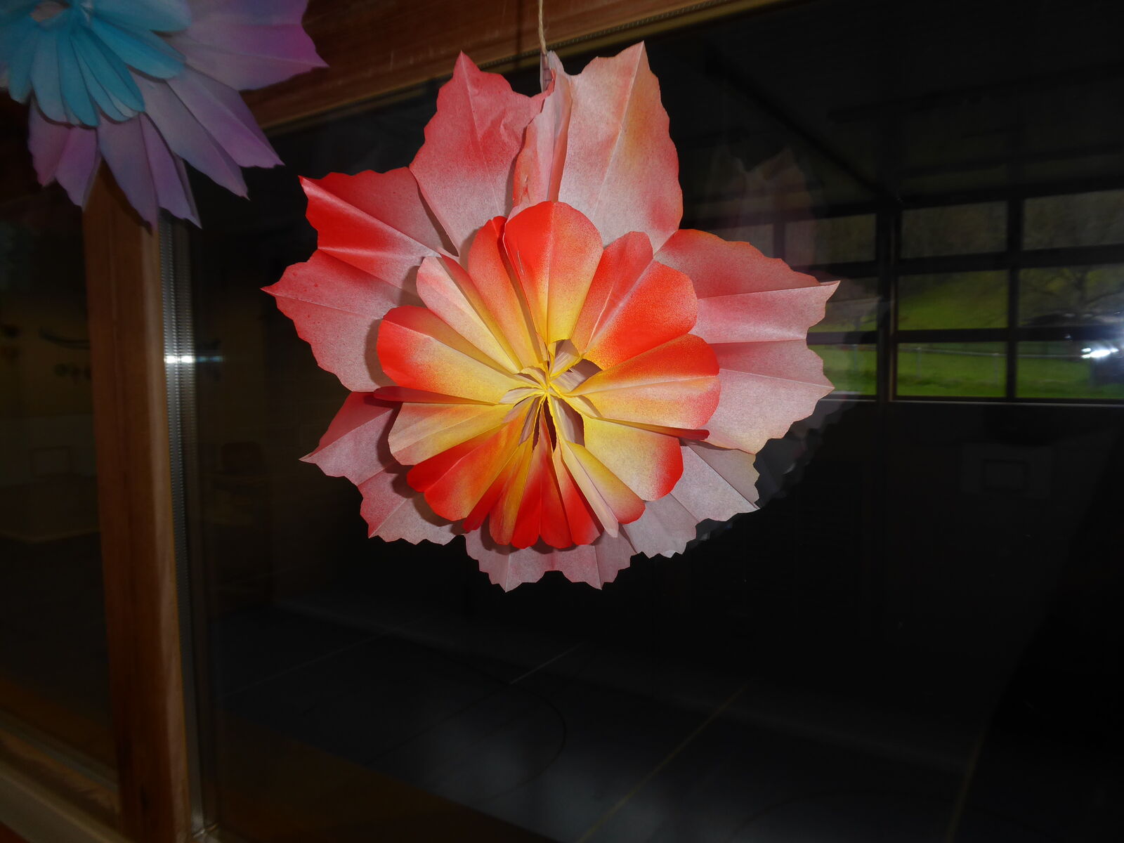 Am Gotta-Götti-Anlass im März stellten alle Kinder eine farbige Blume her, die in den nächsten Wochen als Dekoration dienen wird.