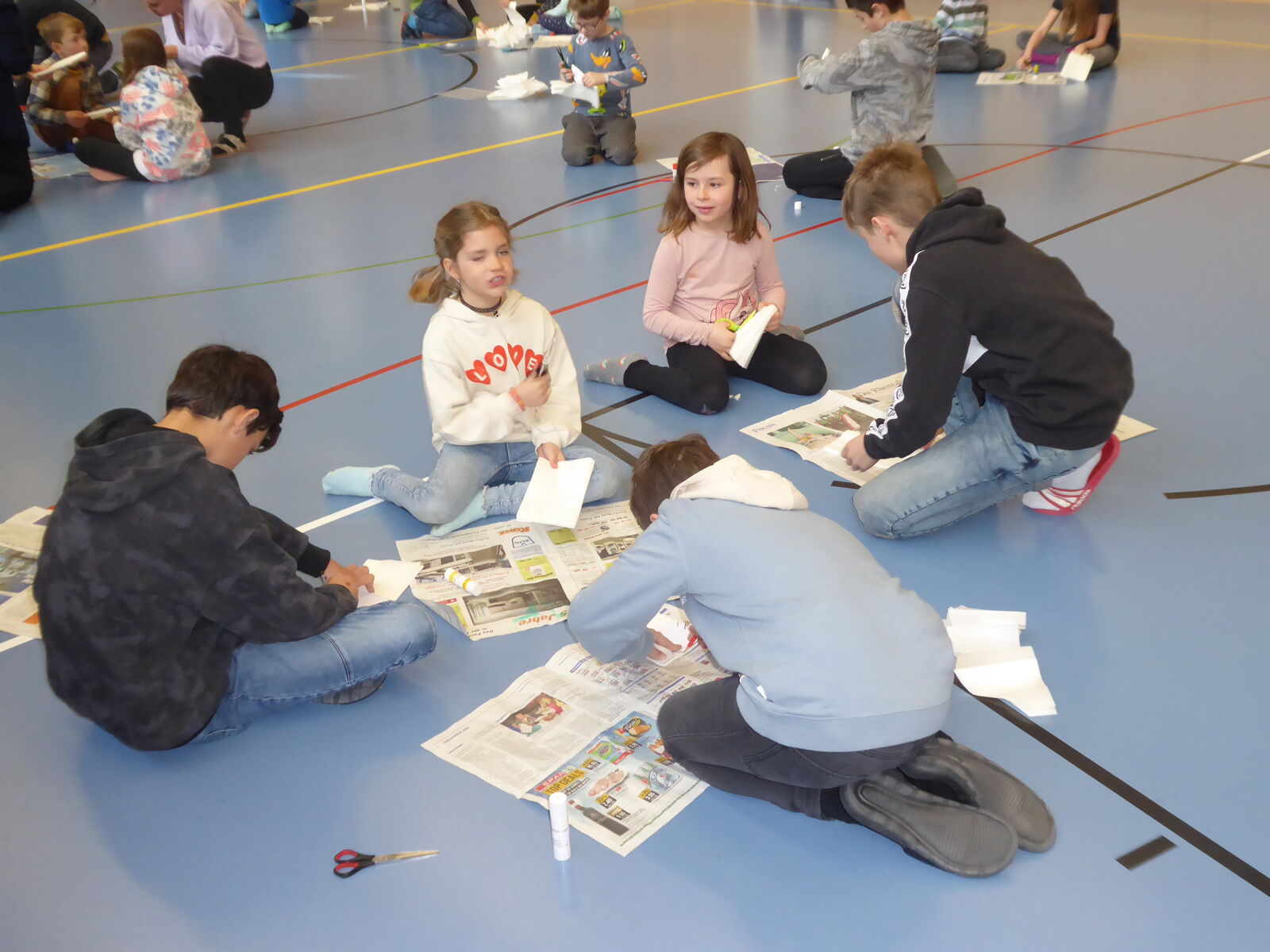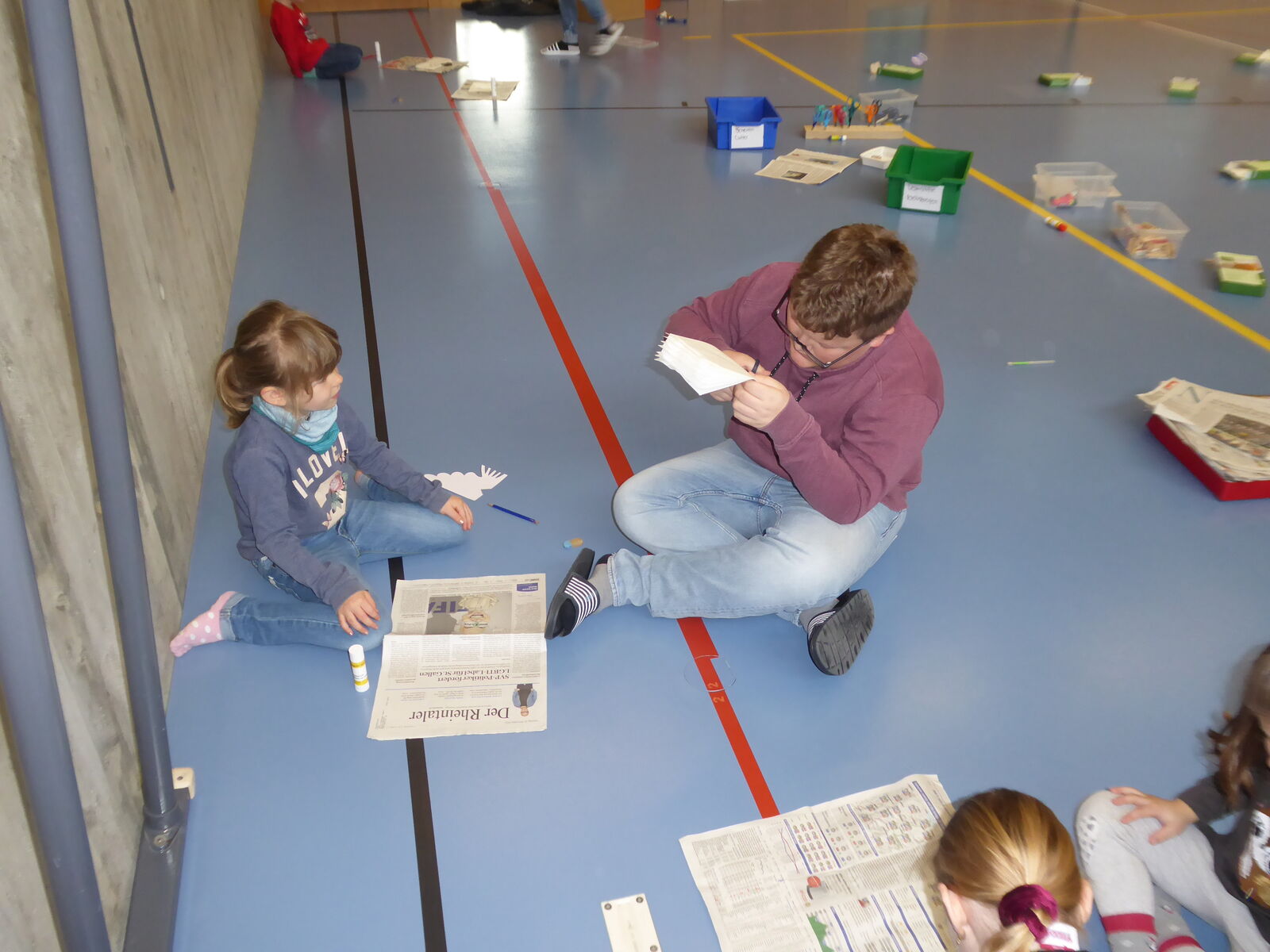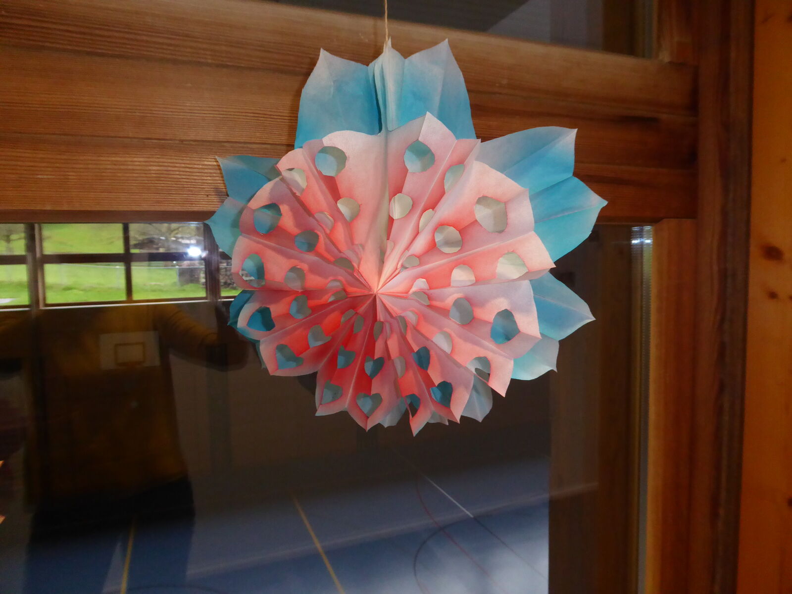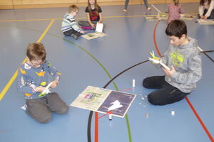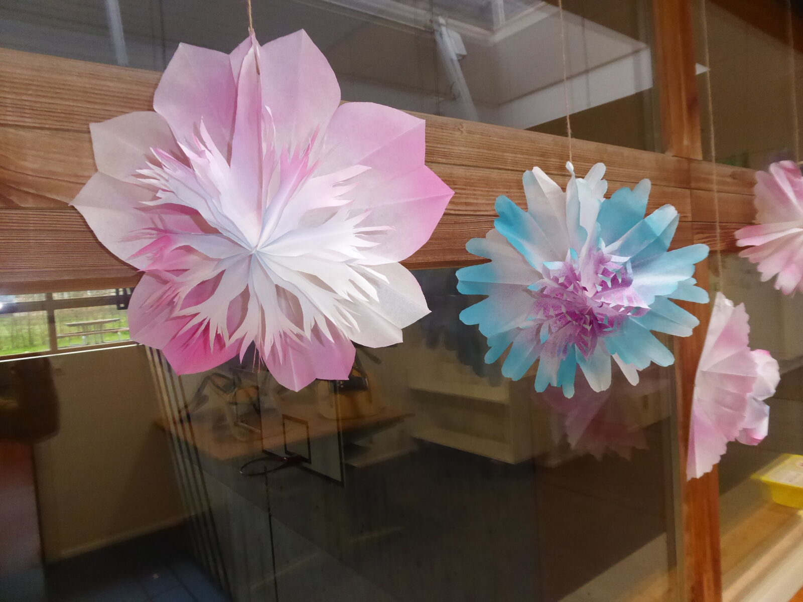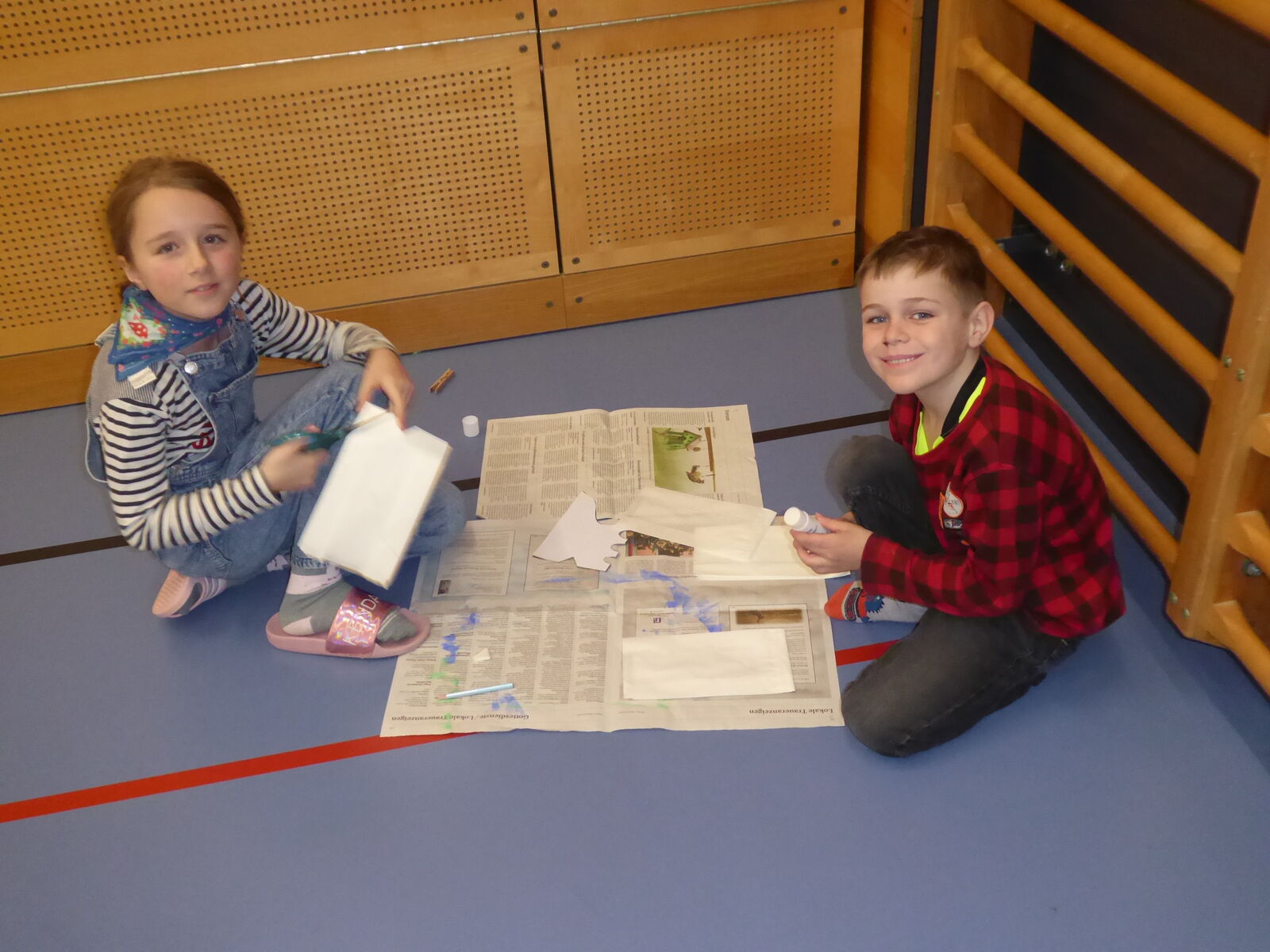 Am Gotta-Götti-Anlass im März stellten alle Kinder eine farbige Blume her, die in den nächsten Wochen als Dekoration dienen wird.