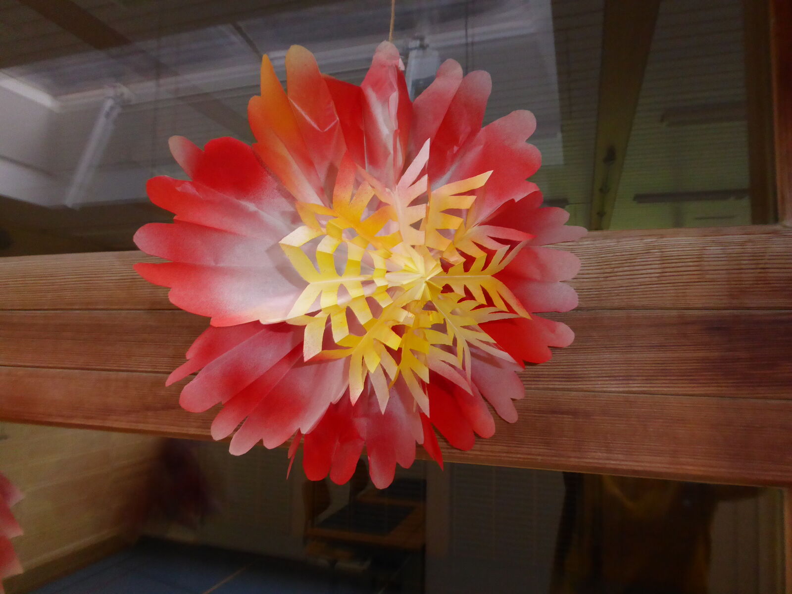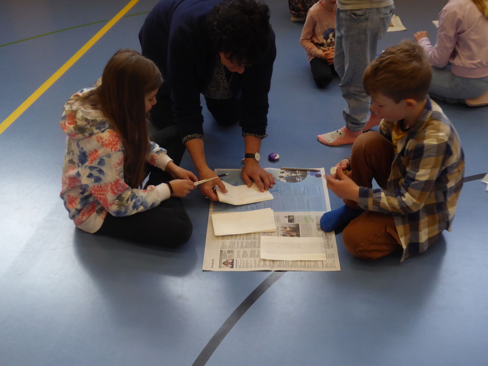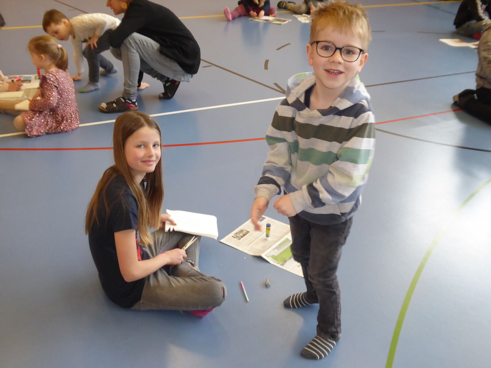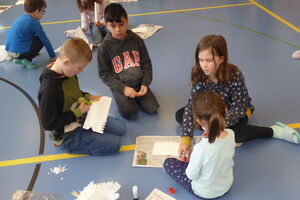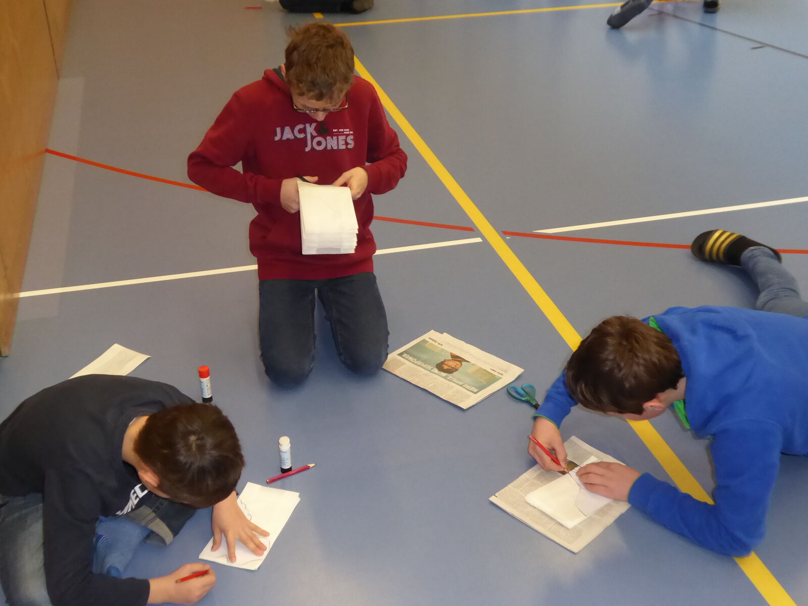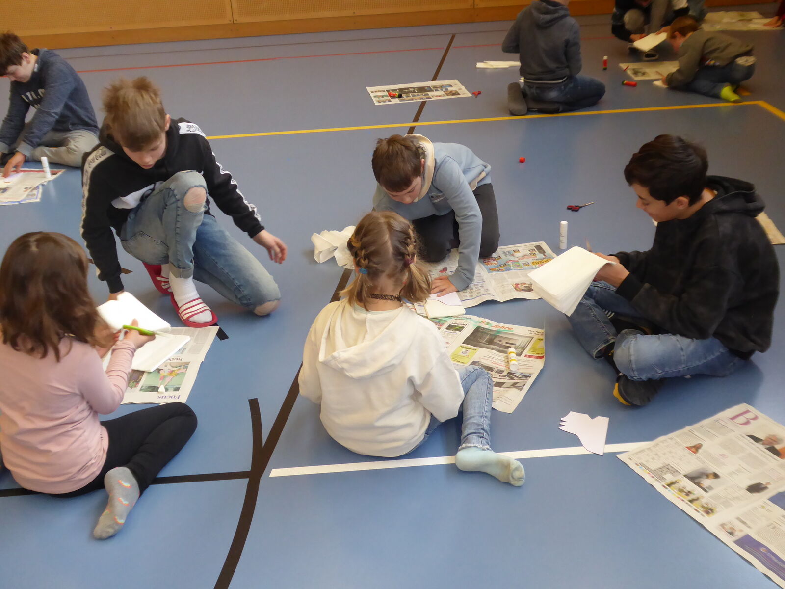 Am Gotta-Götti-Anlass im März stellten alle Kinder eine farbige Blume her, die in den nächsten Wochen als Dekoration dienen wird.