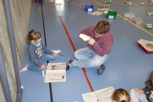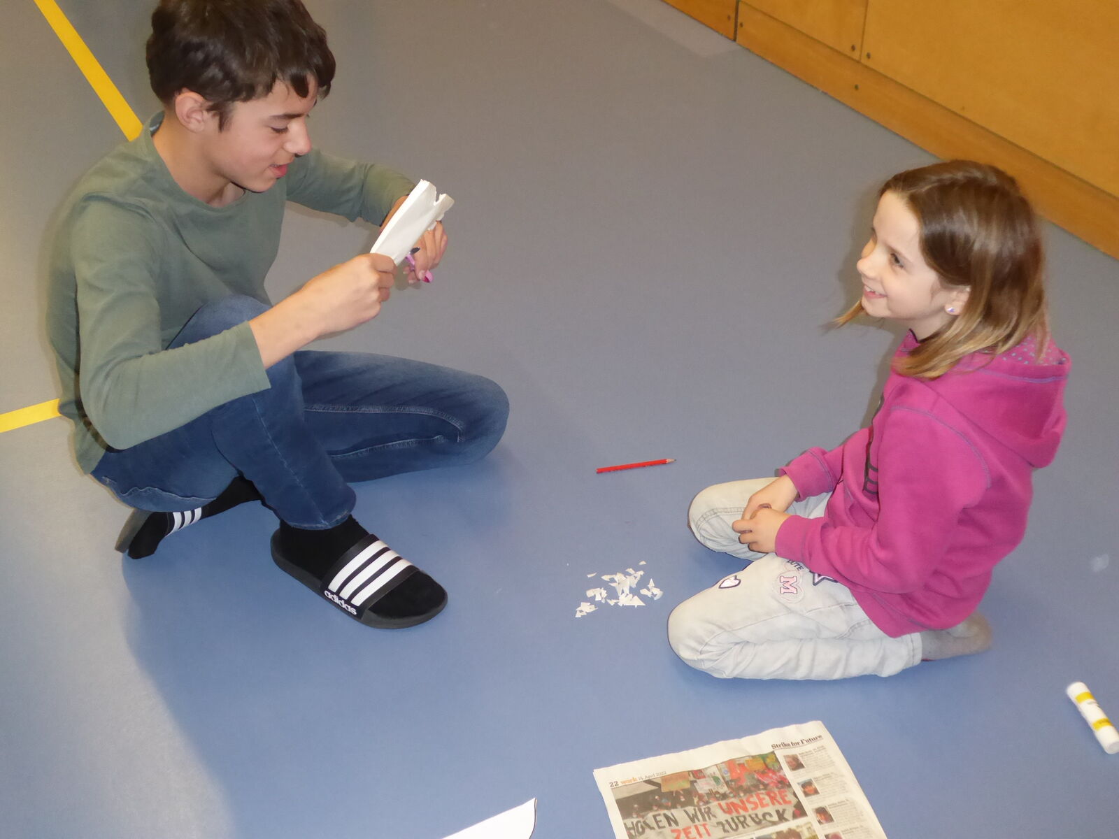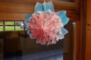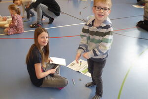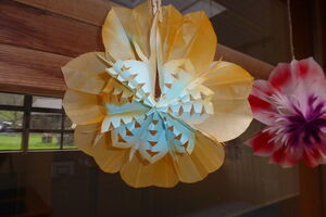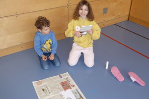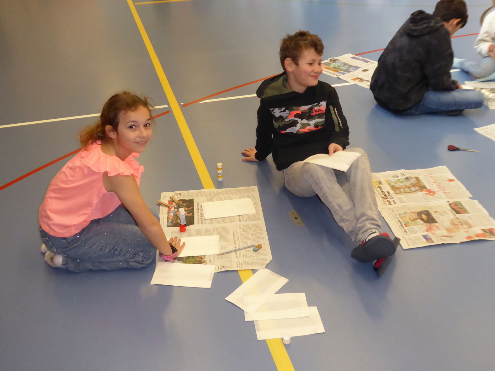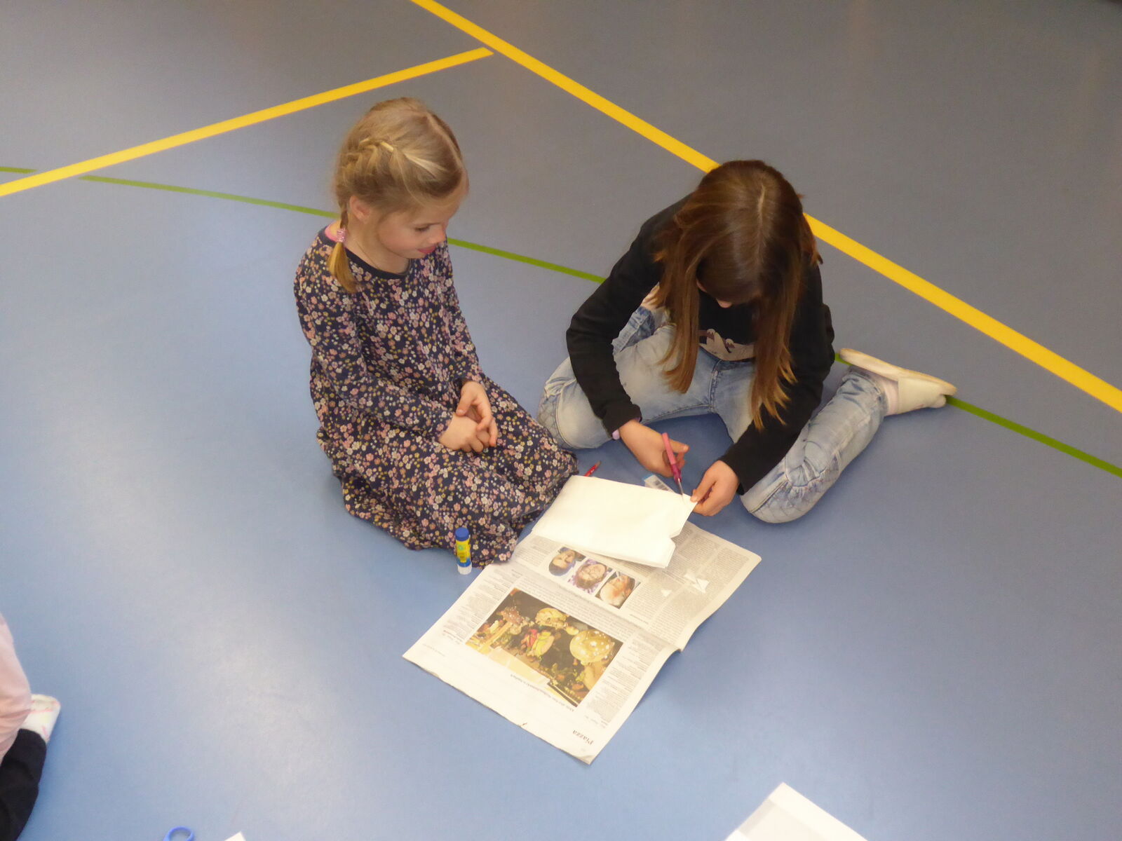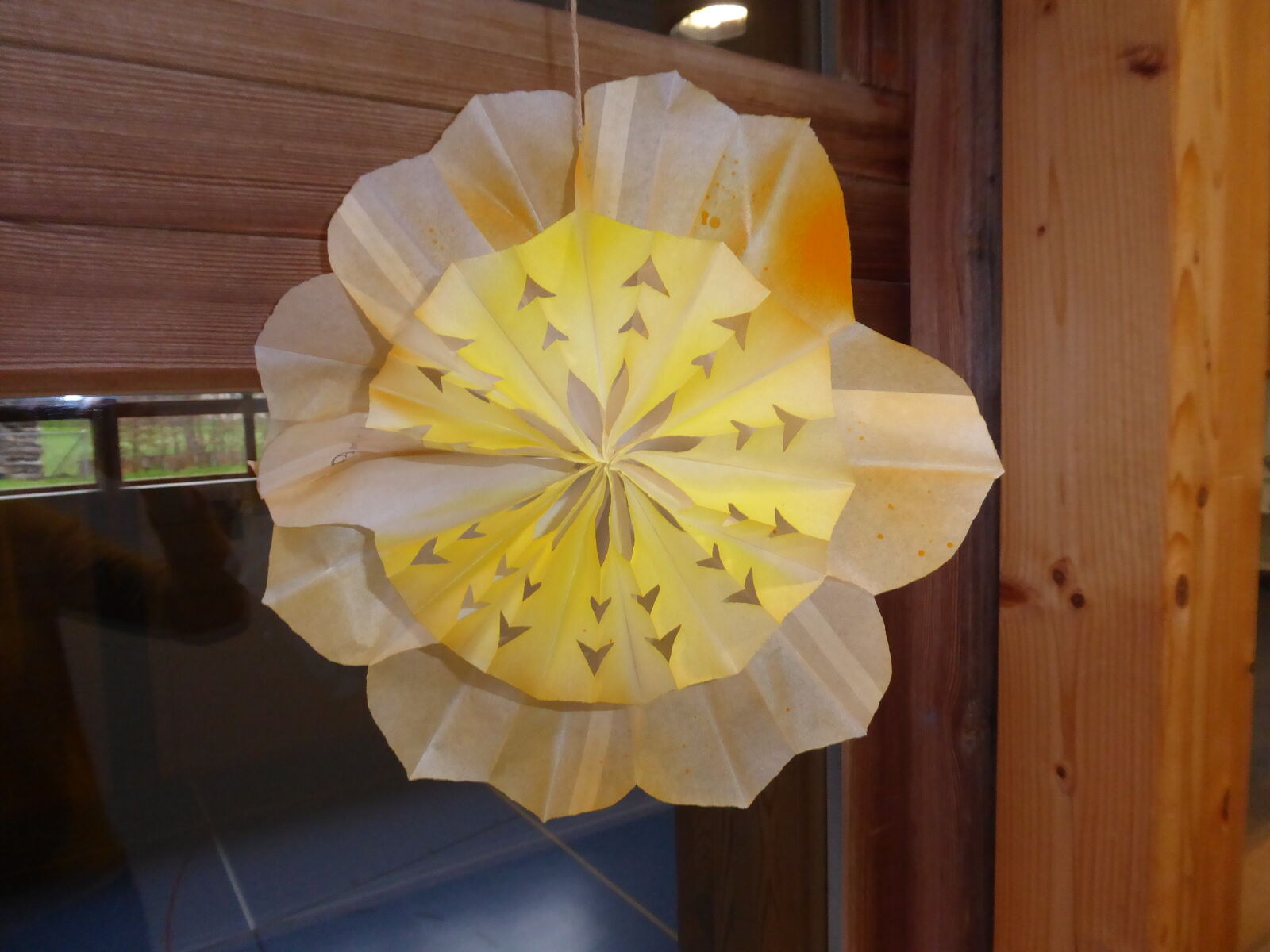 Am Gotta-Götti-Anlass im März stellten alle Kinder eine farbige Blume her, die in den nächsten Wochen als Dekoration dienen wird.