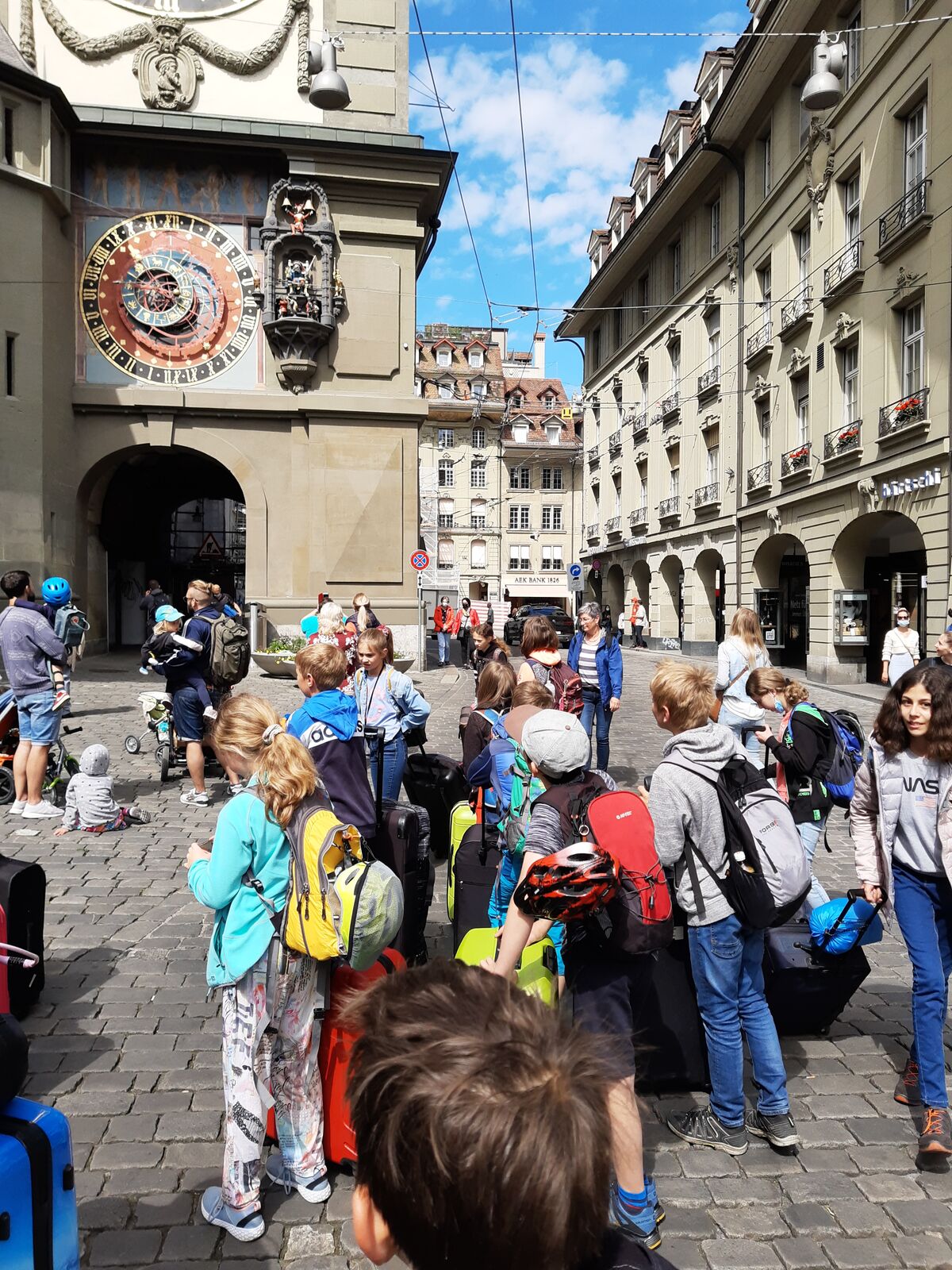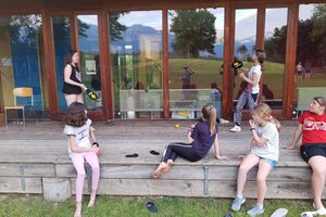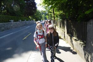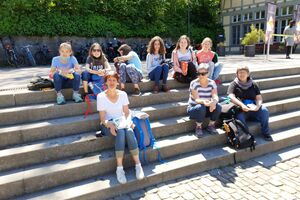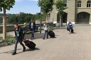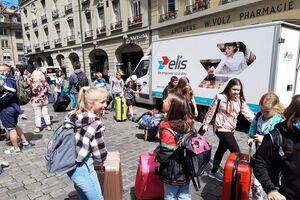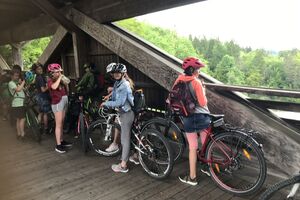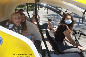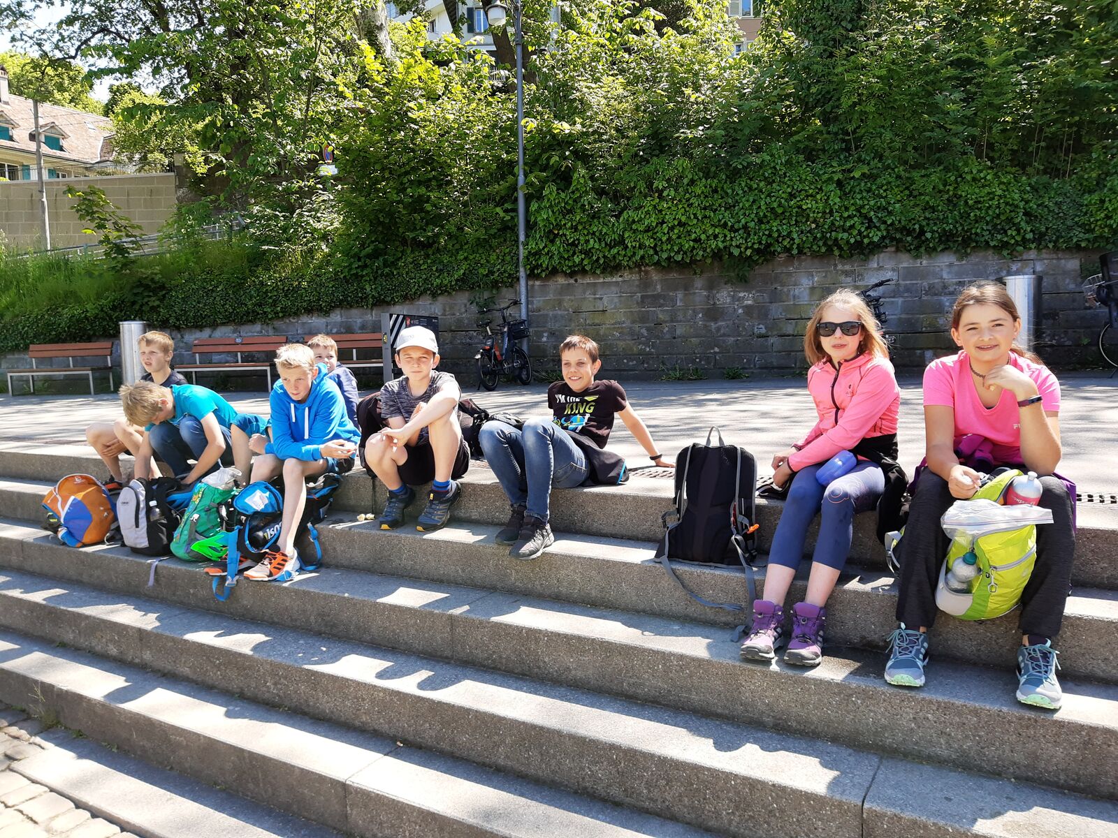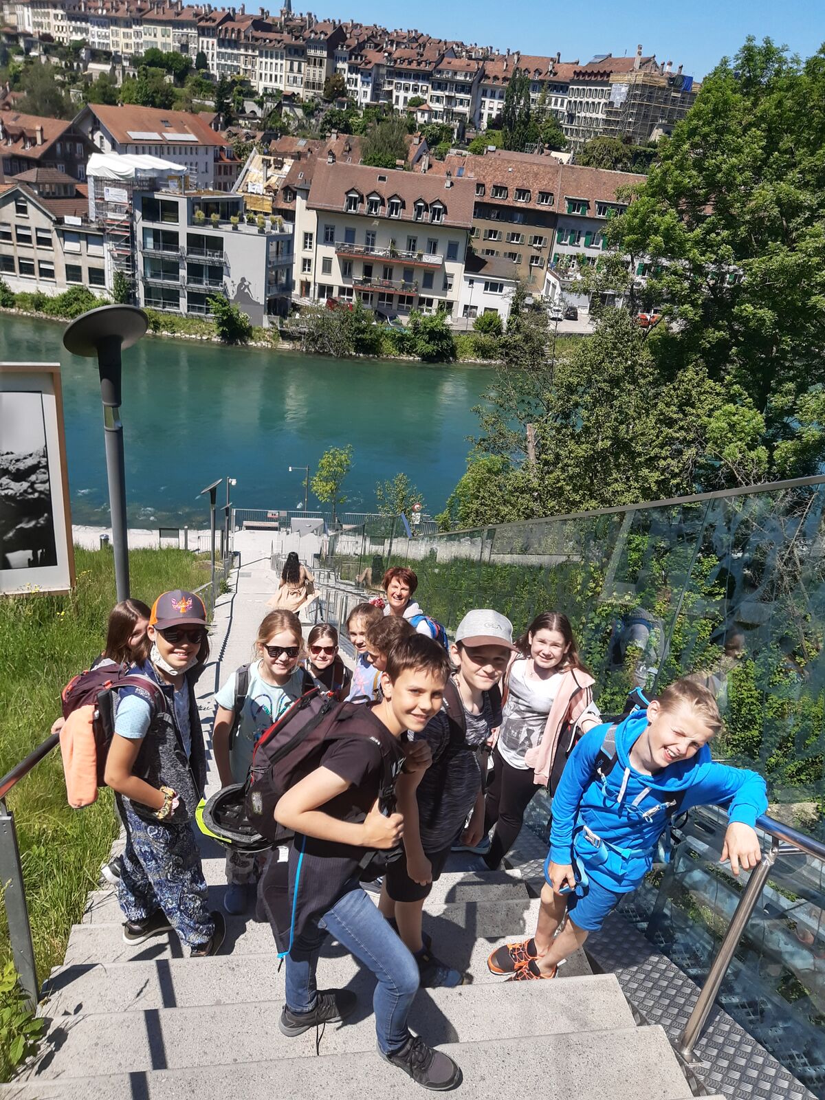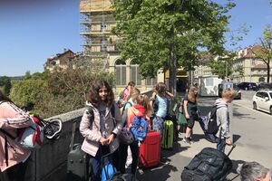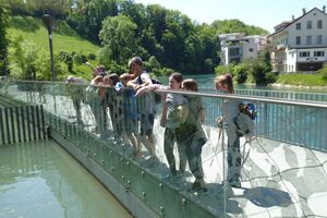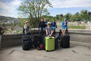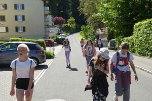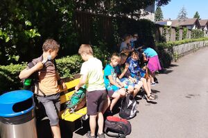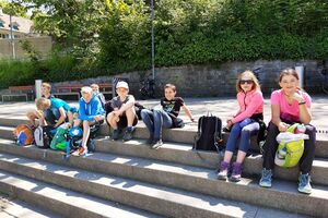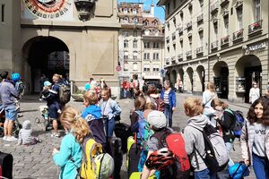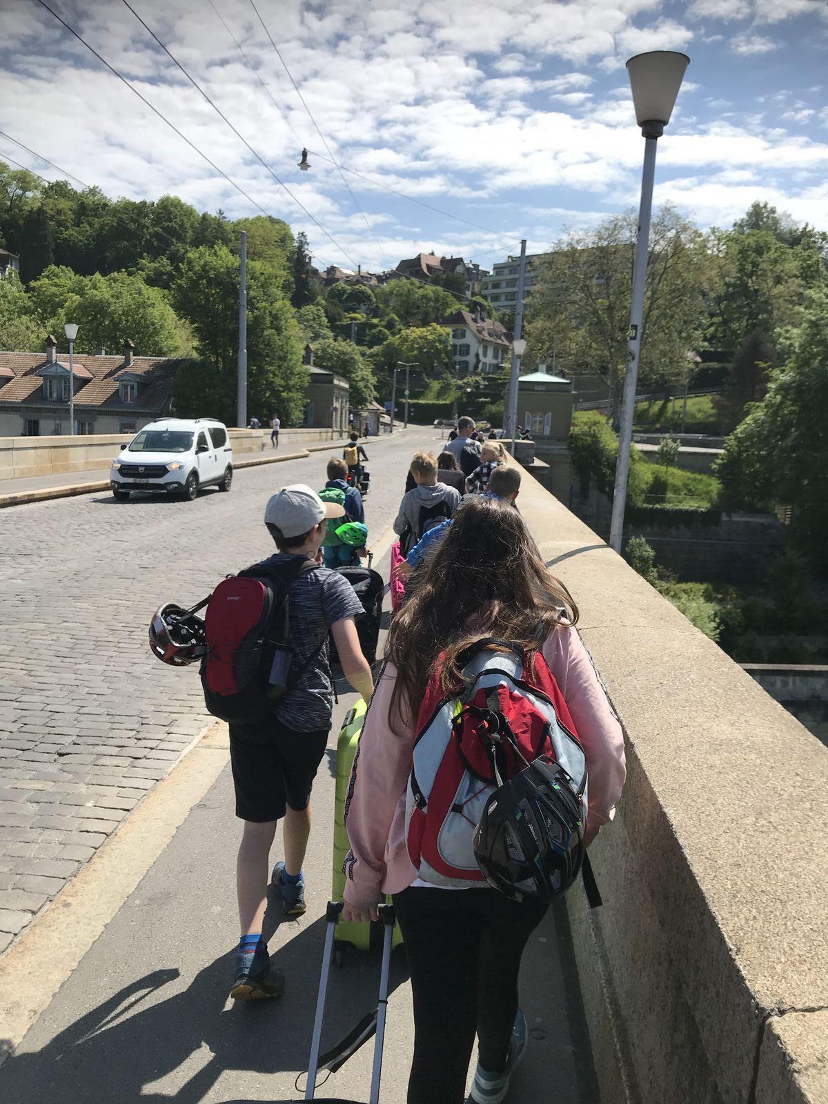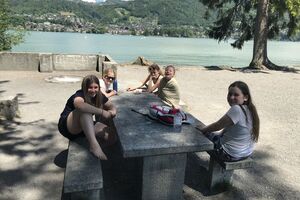 Unser Hauptverkehrsmittel ist das Velo. Im verkehrsreichen Thun eine grosse Herausforderung für uns. Carla fährt voraus, ich mache den Schluss. Zwischen uns, wie ein riesiger Bandwurm, 20 Kinder. Sie fahren im Grossen Ganzen sehr diszipliniert, aber es sind und bleiben eben Kinder, die auch mal einen Schlenker machen. Anfangs waren wir wie eine Herde Schafe. Alle hintereinander her, Hauptsache, den Anschluss nicht verlieren. Mittlerweile halten sie aber bei Rotlichtern an. Die meisten Autofahrer sind verständnisvoll, hin und wieder gibt's einen säuerlichen Blick, welchen ich mit einem freundlichen Winken quittiere. Meistens wirkt's.