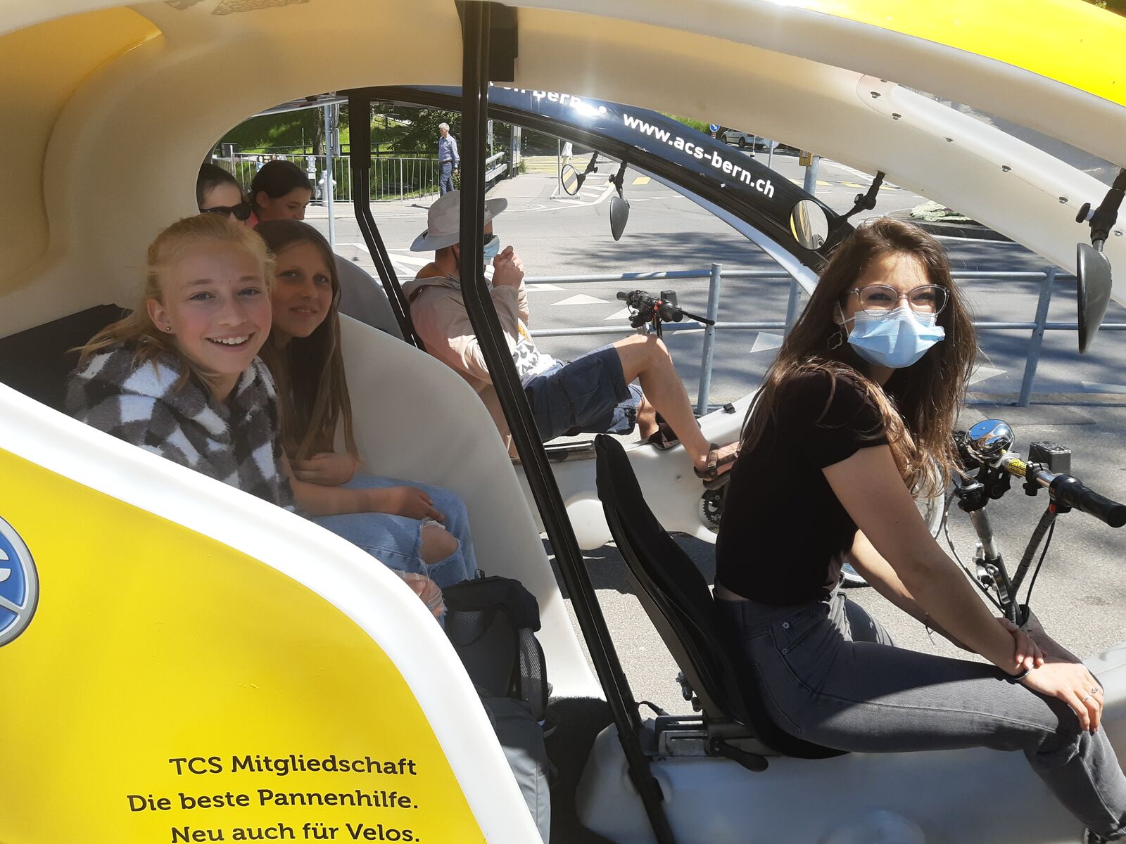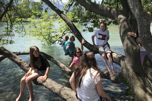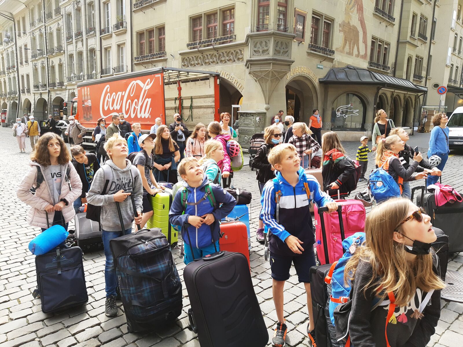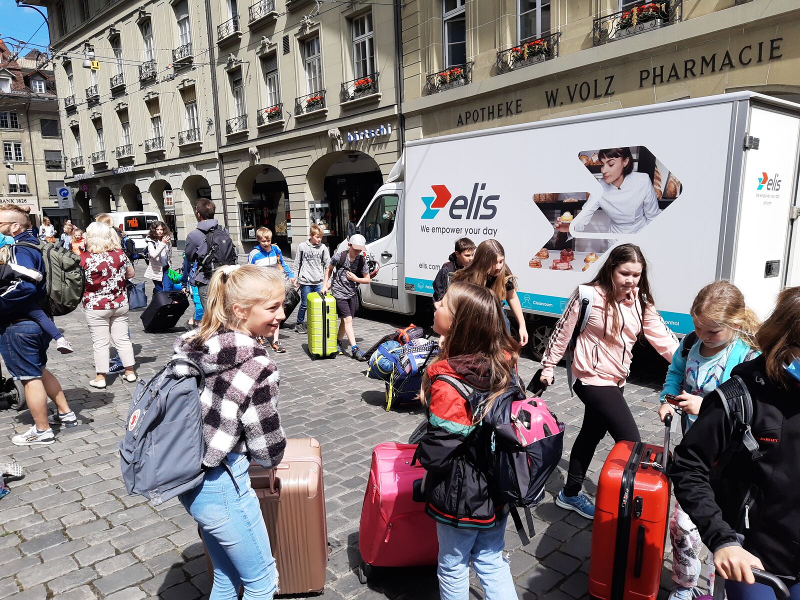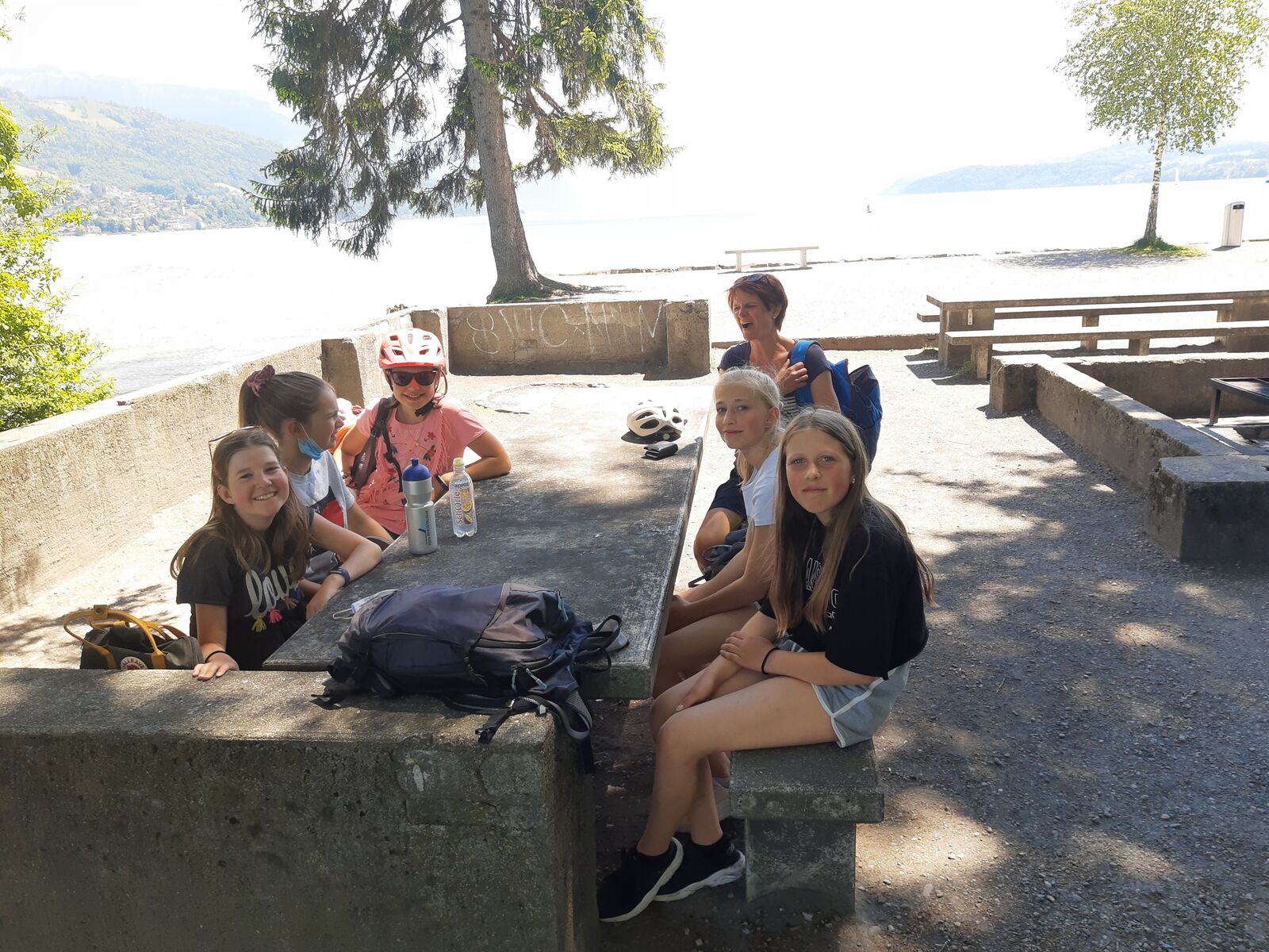 Unser Hauptverkehrsmittel ist das Velo. Im verkehrsreichen Thun eine grosse Herausforderung für uns. Carla fährt voraus, ich mache den Schluss. Zwischen uns, wie ein riesiger Bandwurm, 20 Kinder. Sie fahren im Grossen Ganzen sehr diszipliniert, aber es sind und bleiben eben Kinder, die auch mal einen Schlenker machen. Anfangs waren wir wie eine Herde Schafe. Alle hintereinander her, Hauptsache, den Anschluss nicht verlieren. Mittlerweile halten sie aber bei Rotlichtern an. Die meisten Autofahrer sind verständnisvoll, hin und wieder gibt's einen säuerlichen Blick, welchen ich mit einem freundlichen Winken quittiere. Meistens wirkt's.