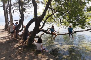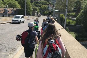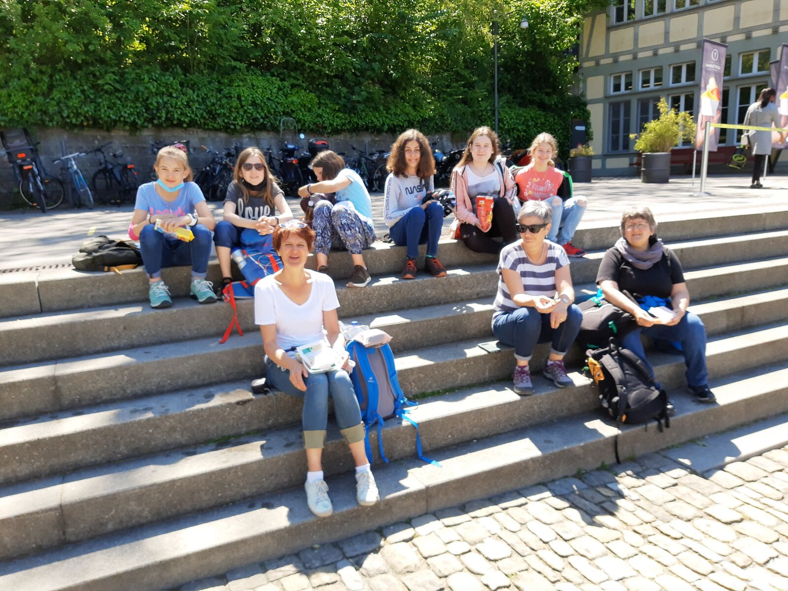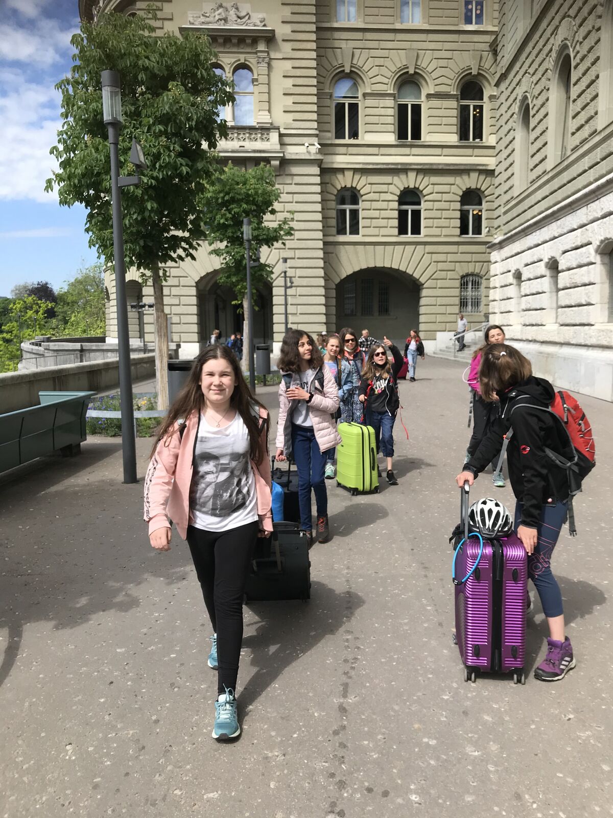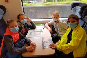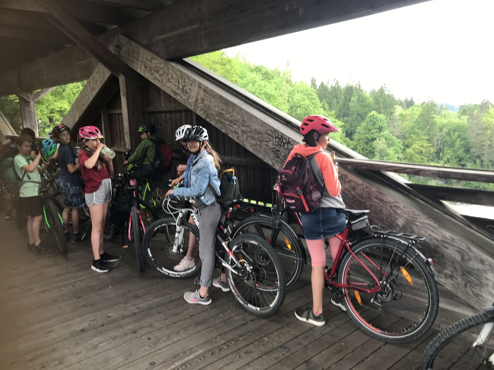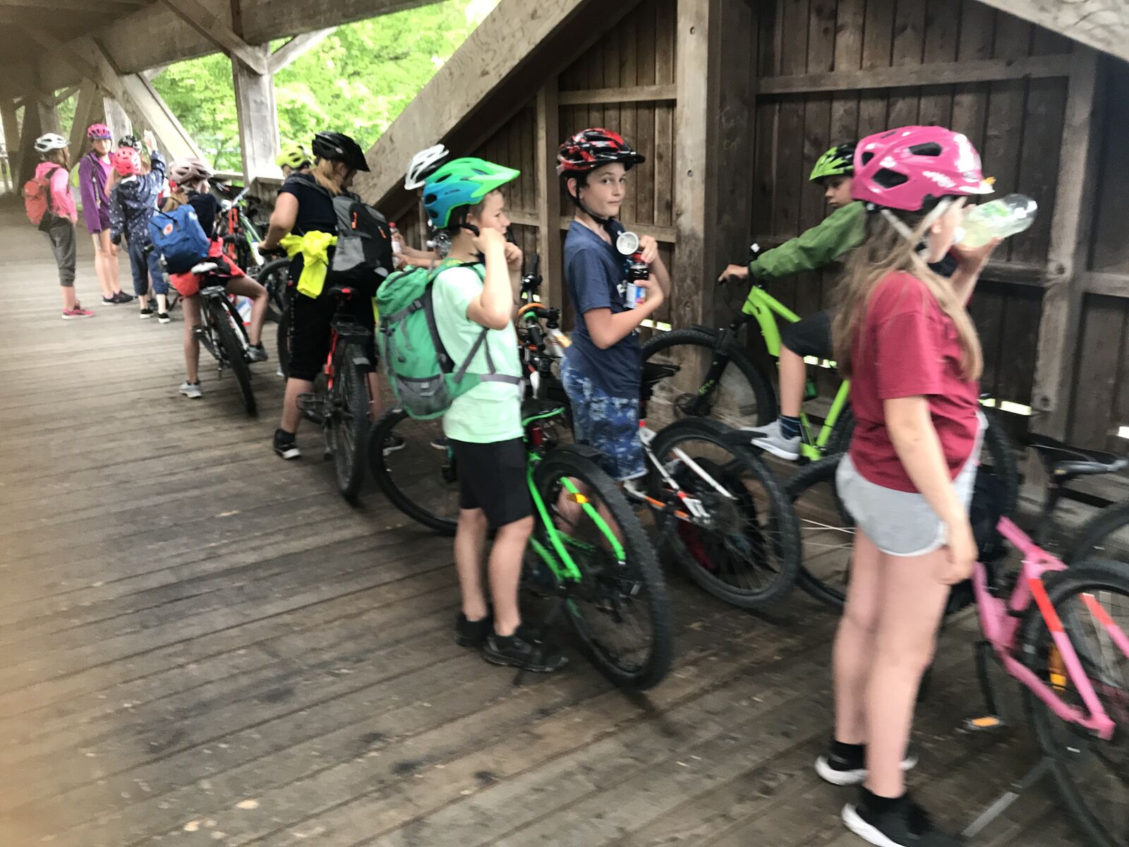 Unser Hauptverkehrsmittel ist das Velo. Im verkehrsreichen Thun eine grosse Herausforderung für uns. Carla fährt voraus, ich mache den Schluss. Zwischen uns, wie ein riesiger Bandwurm, 20 Kinder. Sie fahren im Grossen Ganzen sehr diszipliniert, aber es sind und bleiben eben Kinder, die auch mal einen Schlenker machen. Anfangs waren wir wie eine Herde Schafe. Alle hintereinander her, Hauptsache, den Anschluss nicht verlieren. Mittlerweile halten sie aber bei Rotlichtern an. Die meisten Autofahrer sind verständnisvoll, hin und wieder gibt's einen säuerlichen Blick, welchen ich mit einem freundlichen Winken quittiere. Meistens wirkt's.