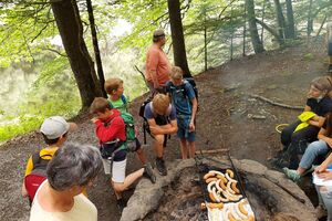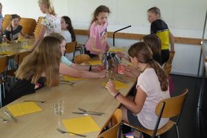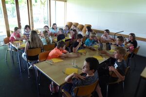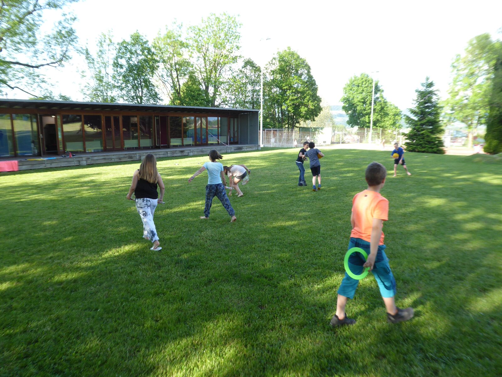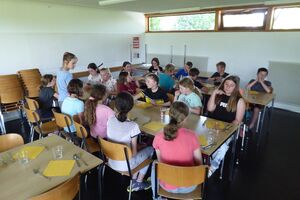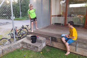 Im Ballenberg zogen die Kinder, mit vielen Aufträgen im Gepäck, in Gruppen los. Wir jagten sie kreuz und quer übers Gelände, mit dem Ziel, sie möglichst viele Eindrücke sammeln zu lassen. Wären die Kids dabei etwas müde geworden, hätte uns das auch nicht gestört. Geschah aber nicht. Nach dem Essen konnten die Schülerinnen und Schüler ihre (letzten?) Energiereserven bei der Lagerolympiade mobilisieren. Nach einem Dessert gönnten wir ihnen noch etwas Klassen-Privatsphäre im Keller. Diesen Freiraum nutzten sie lautstark und gerne.