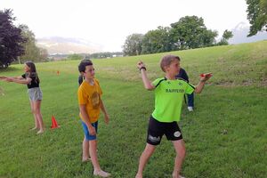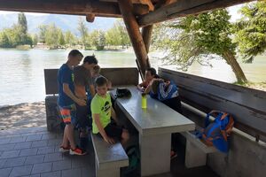 Ab 16.00 durften sich die Kids, wie schon gestern, im Freibad vergnügen. Es liegt in direkter Nachbarschaft zum Pfadiheim, also ideal zum Abkühlen nach einem anstrengenden Ausflug.