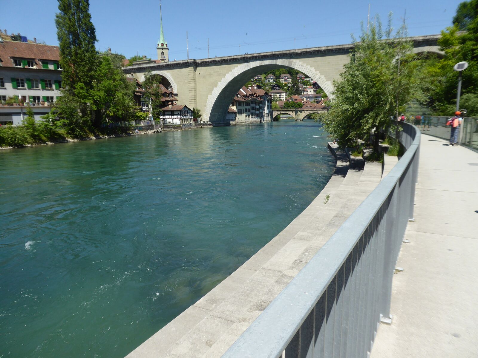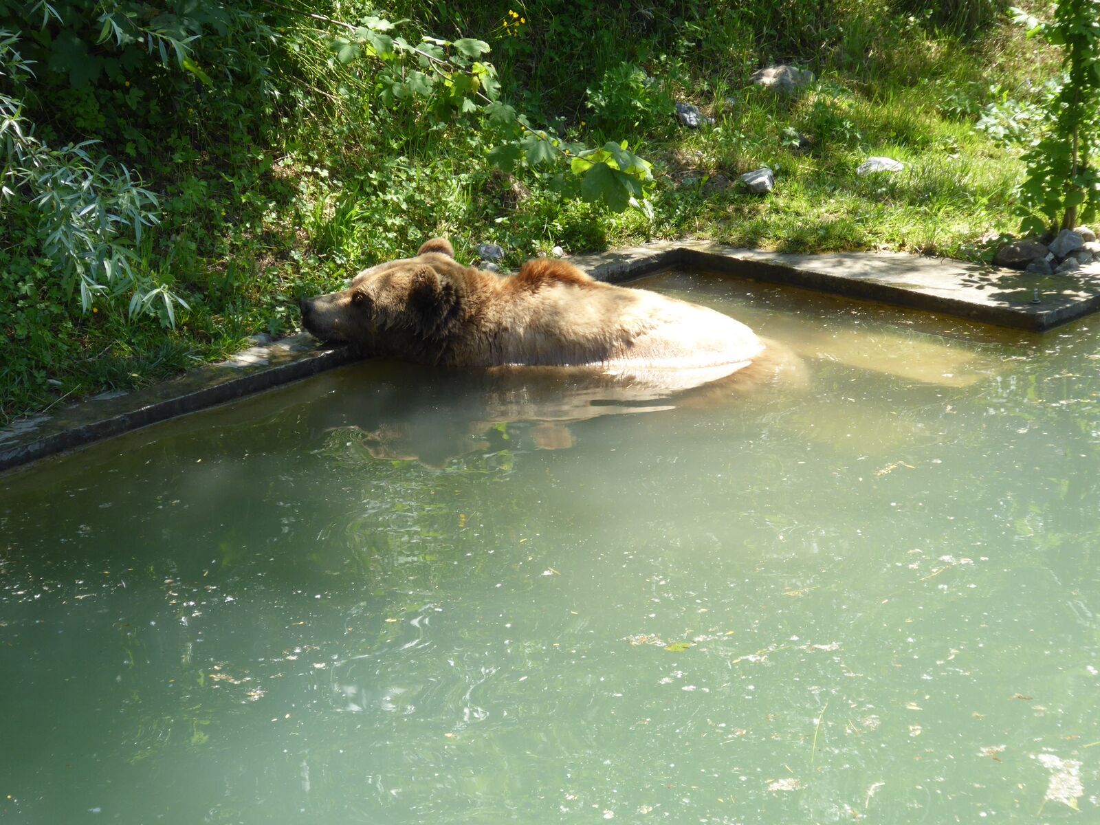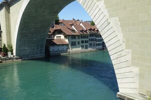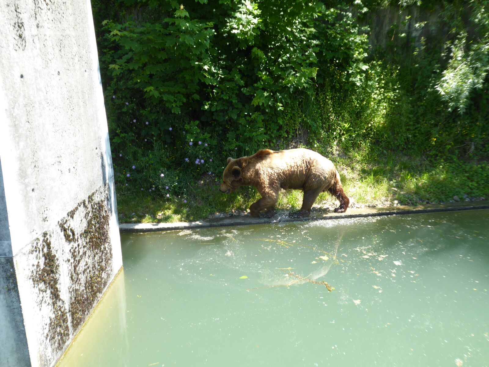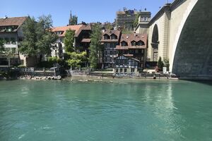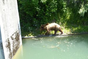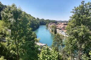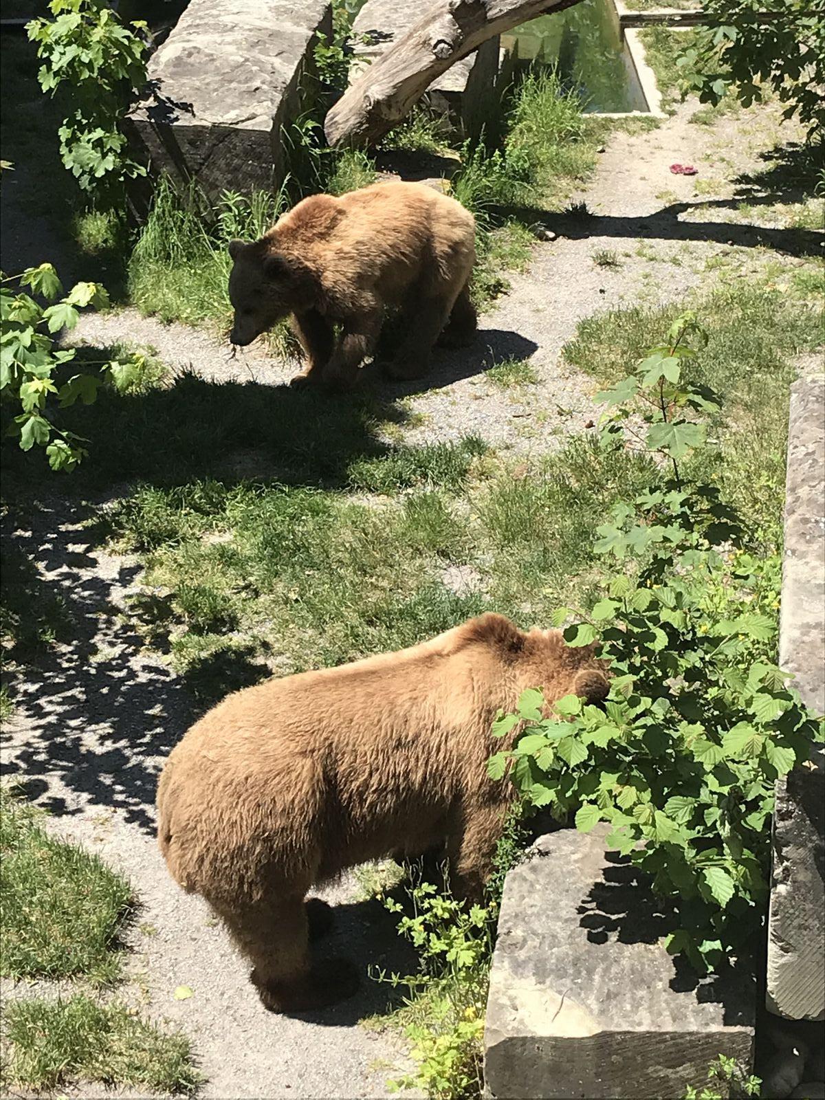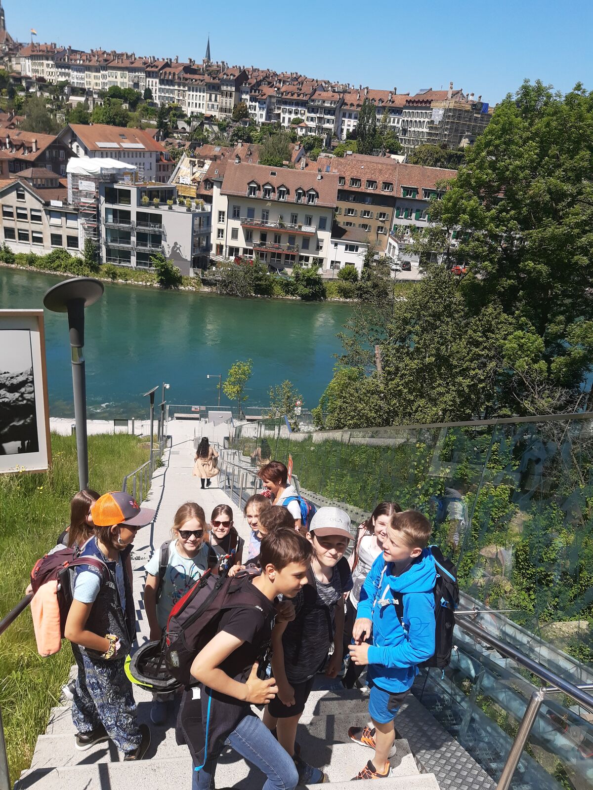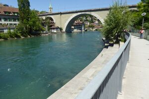 Das lebendige Wappentier von Bern lebt nicht mehr wie früher in einem engen Graben. Dorthin kommt es nur noch, um einen Happen zu fressen. Dann trollt es sich wieder in seine grosszügige Anlage, wo wir es gut beobachten konnten. Der neue Bärenpark liegt sehr idyllisch an der Aare, welche die Altstadt umfliesst.