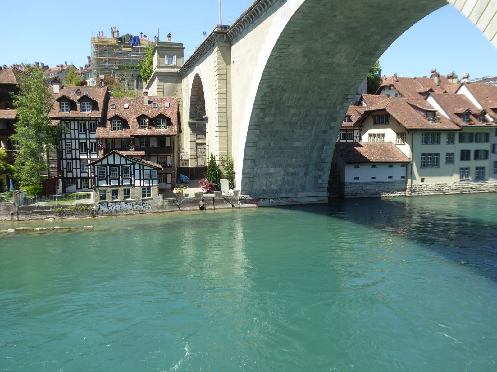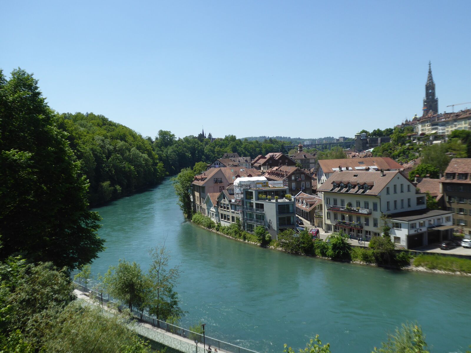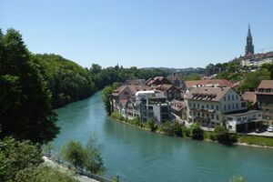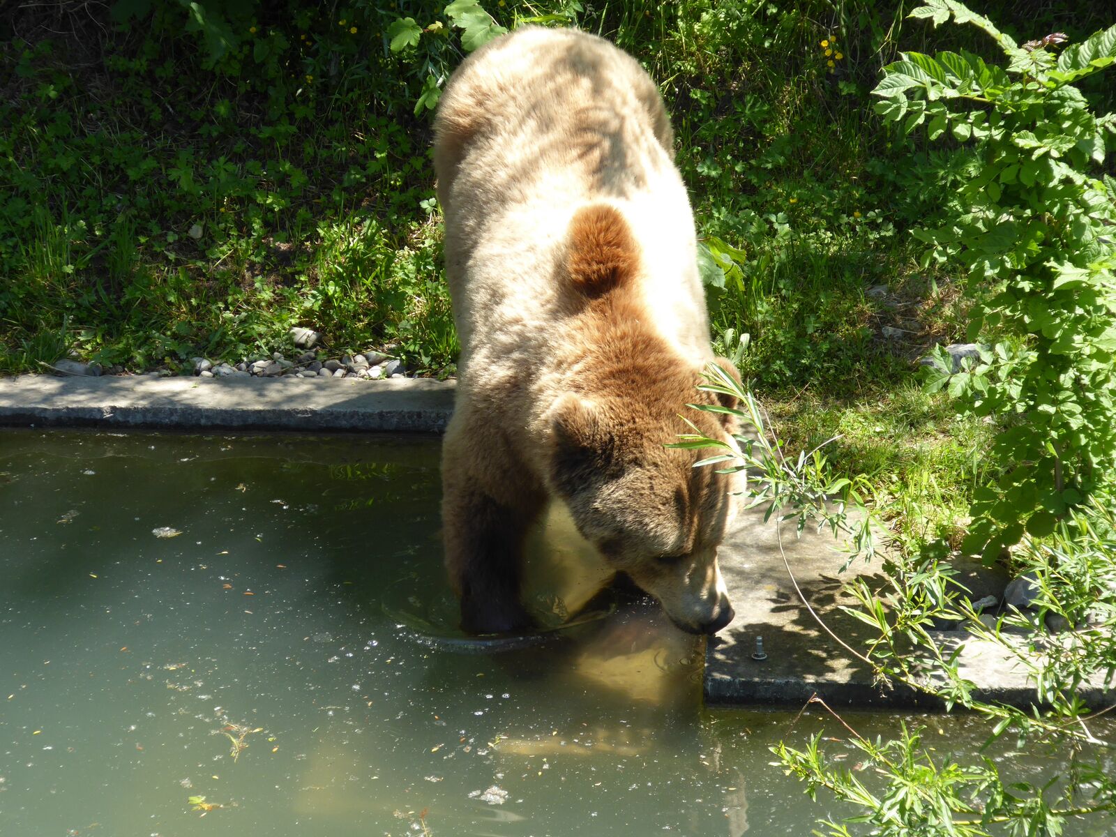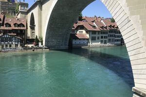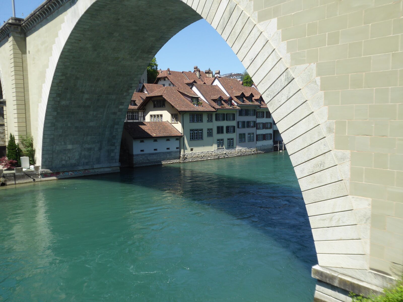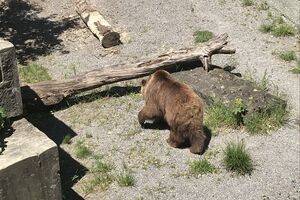 Das lebendige Wappentier von Bern lebt nicht mehr wie früher in einem engen Graben. Dorthin kommt es nur noch, um einen Happen zu fressen. Dann trollt es sich wieder in seine grosszügige Anlage, wo wir es gut beobachten konnten. Der neue Bärenpark liegt sehr idyllisch an der Aare, welche die Altstadt umfliesst.