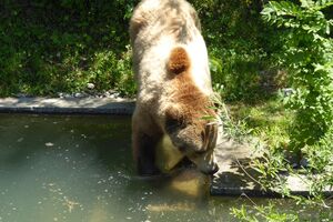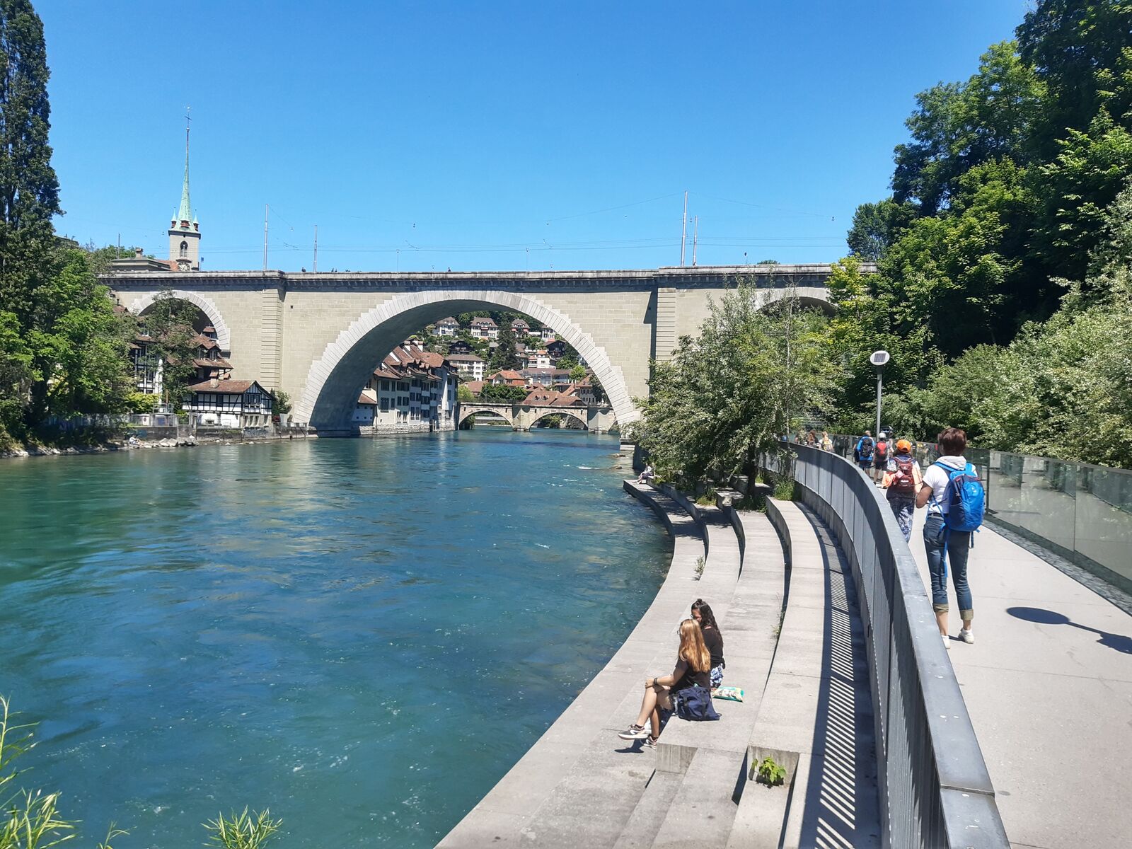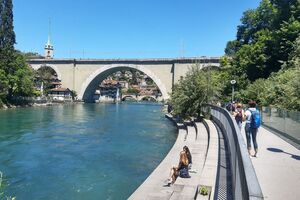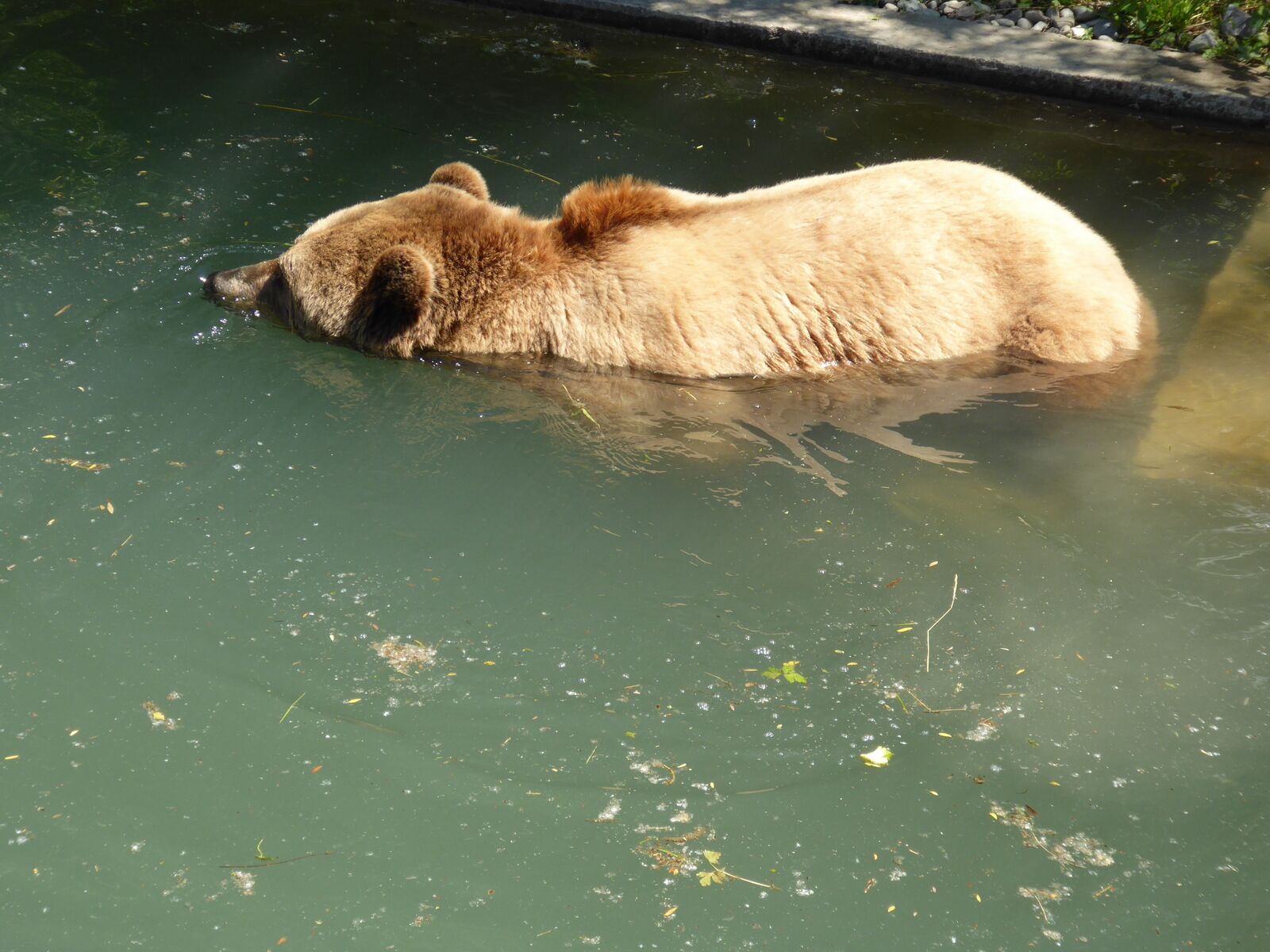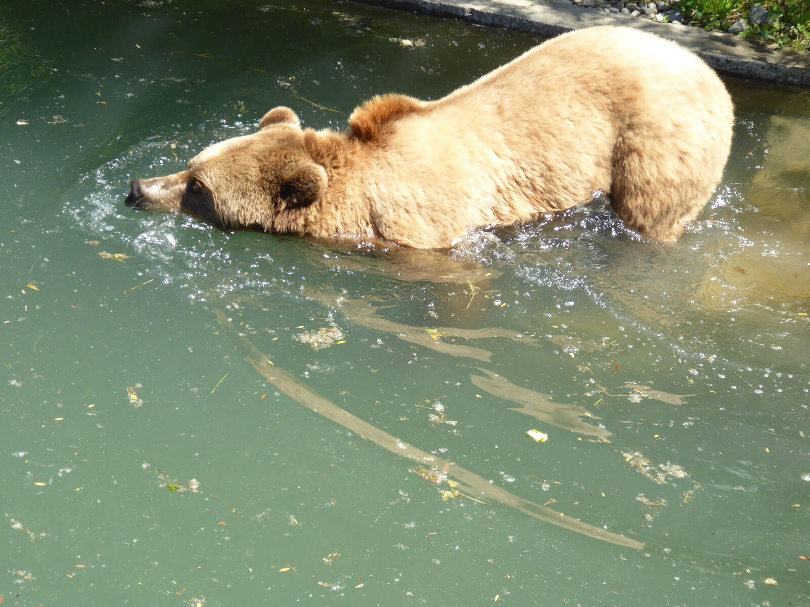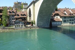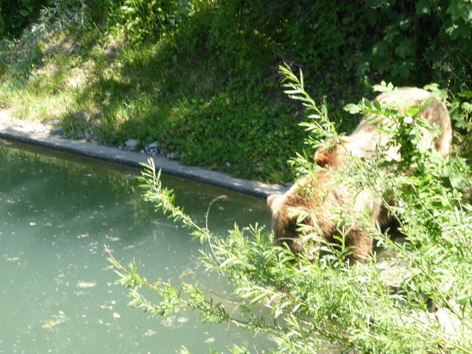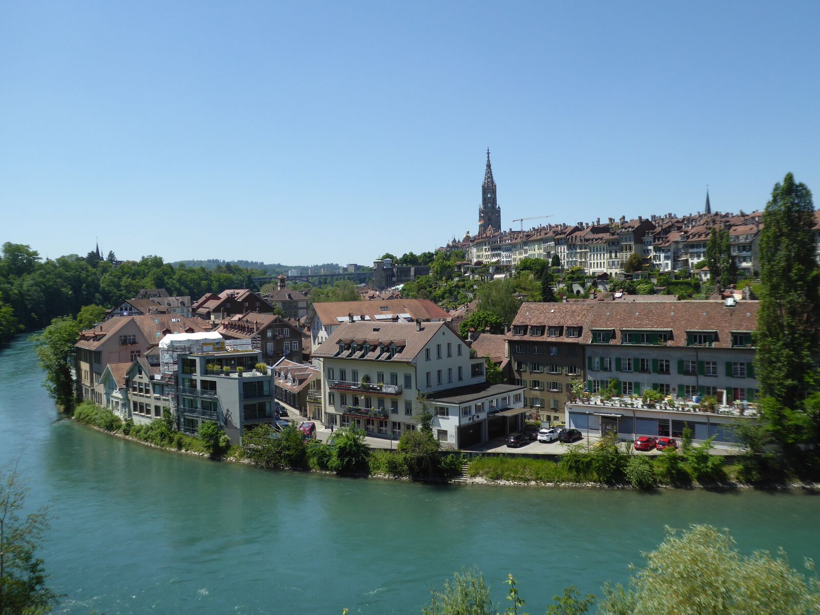 Das lebendige Wappentier von Bern lebt nicht mehr wie früher in einem engen Graben. Dorthin kommt es nur noch, um einen Happen zu fressen. Dann trollt es sich wieder in seine grosszügige Anlage, wo wir es gut beobachten konnten. Der neue Bärenpark liegt sehr idyllisch an der Aare, welche die Altstadt umfliesst.
