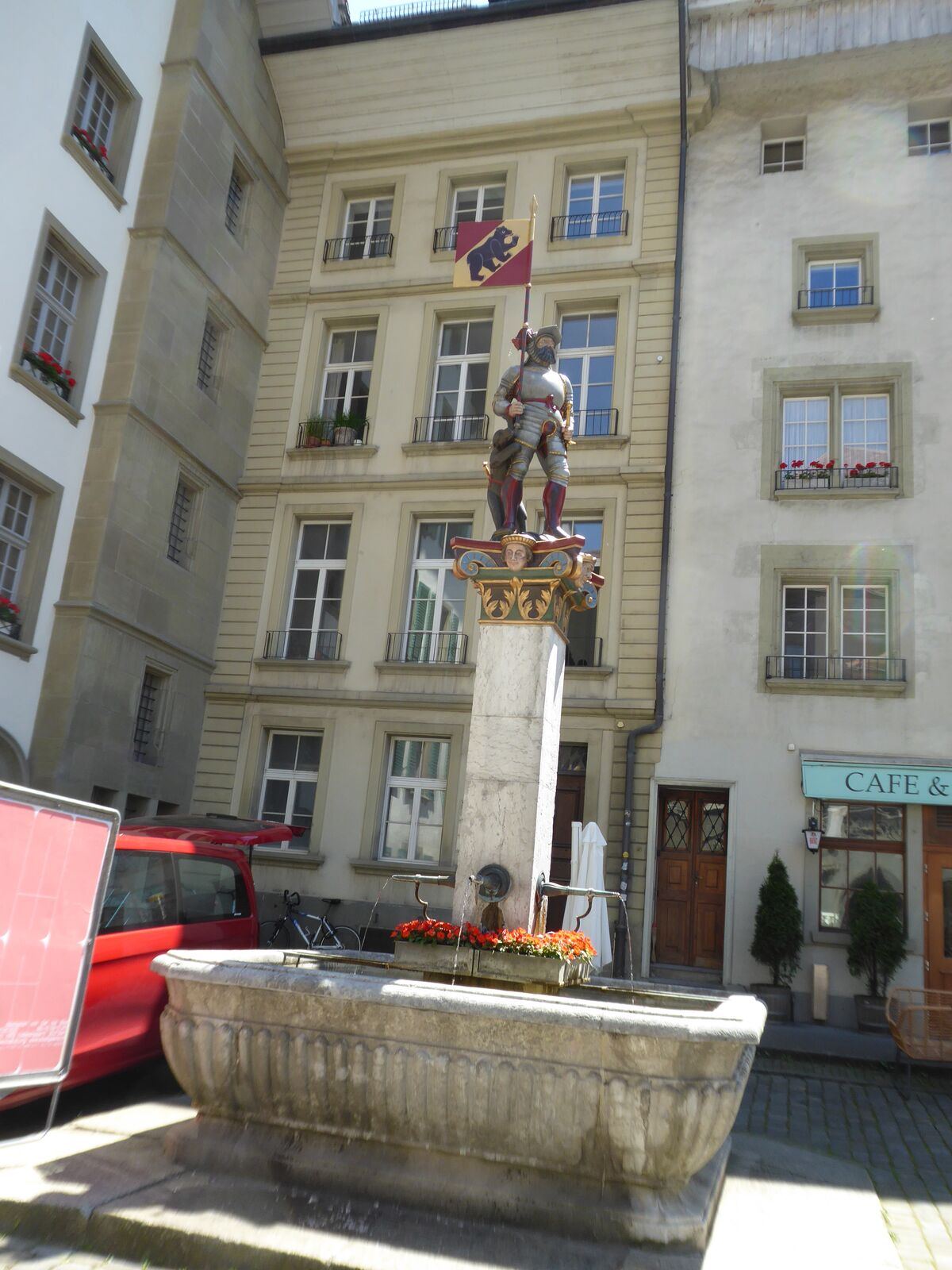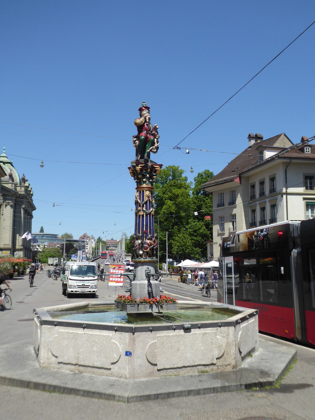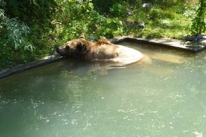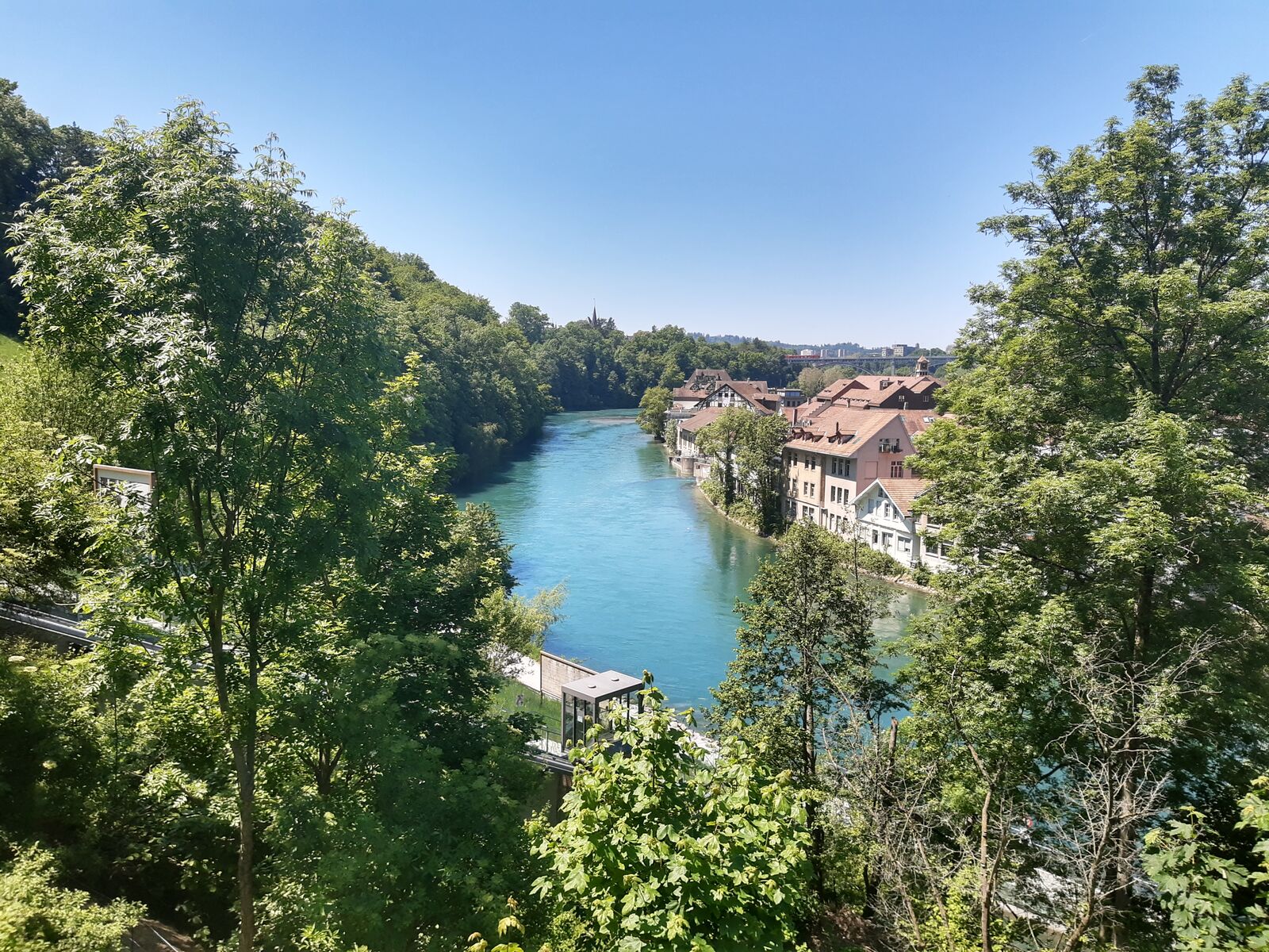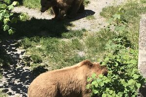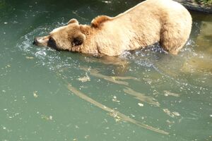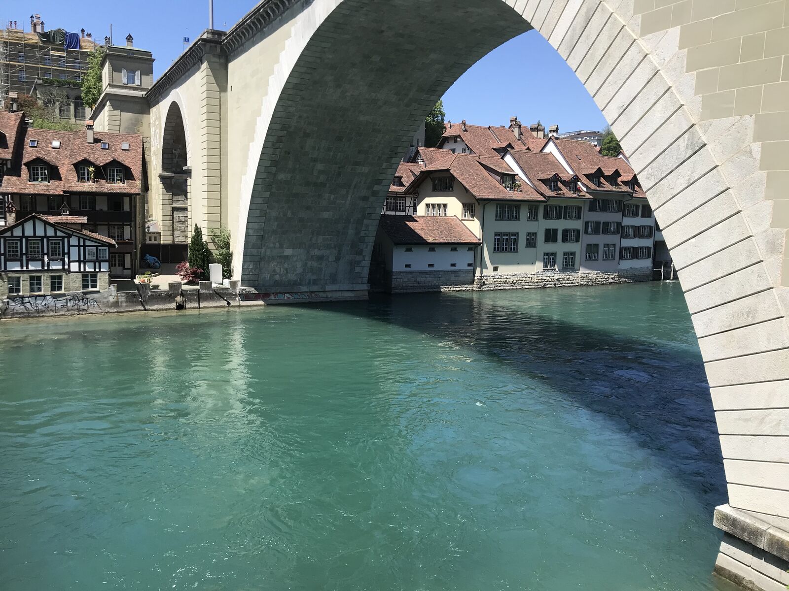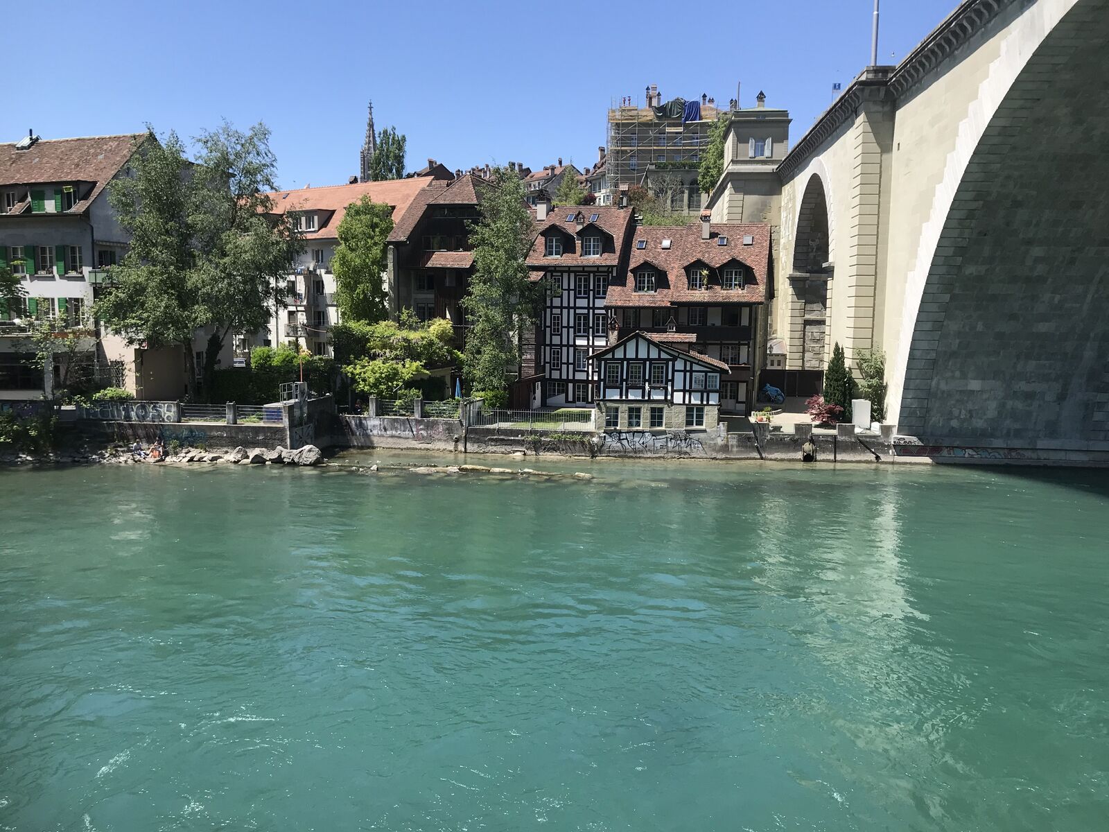 Das lebendige Wappentier von Bern lebt nicht mehr wie früher in einem engen Graben. Dorthin kommt es nur noch, um einen Happen zu fressen. Dann trollt es sich wieder in seine grosszügige Anlage, wo wir es gut beobachten konnten. Der neue Bärenpark liegt sehr idyllisch an der Aare, welche die Altstadt umfliesst.
