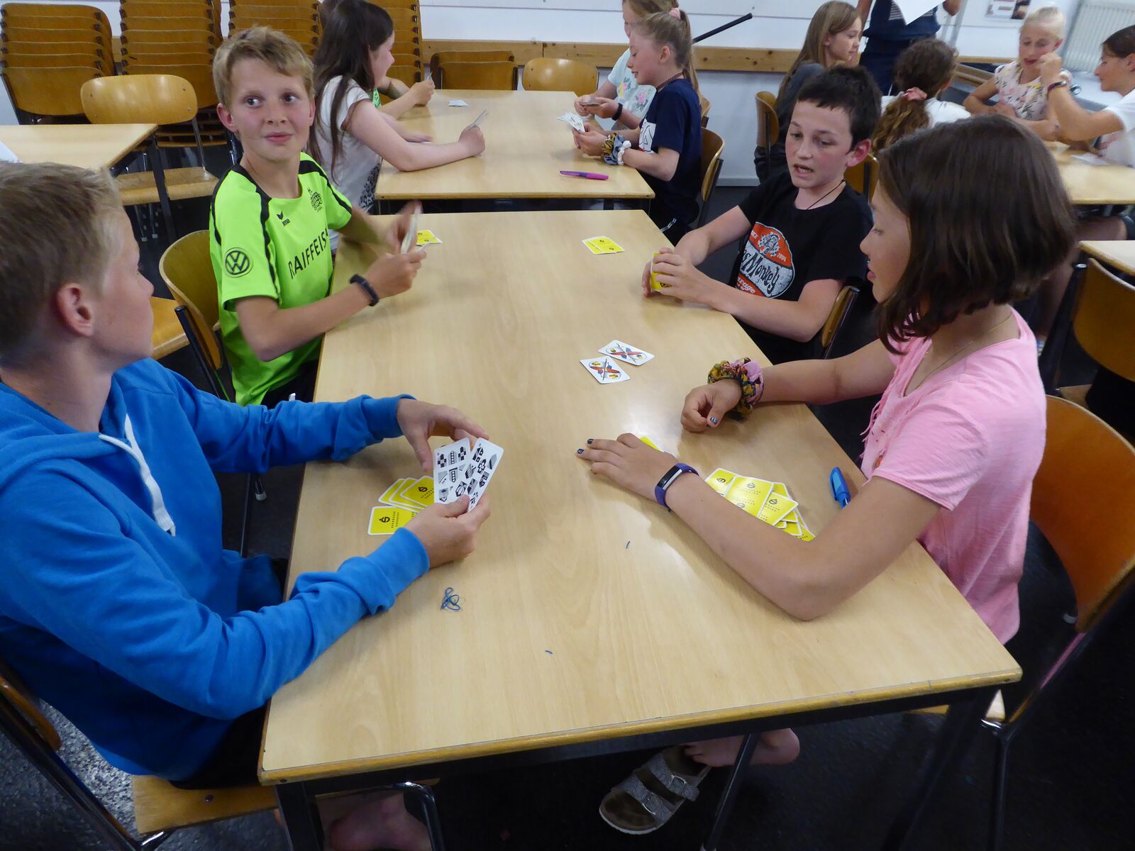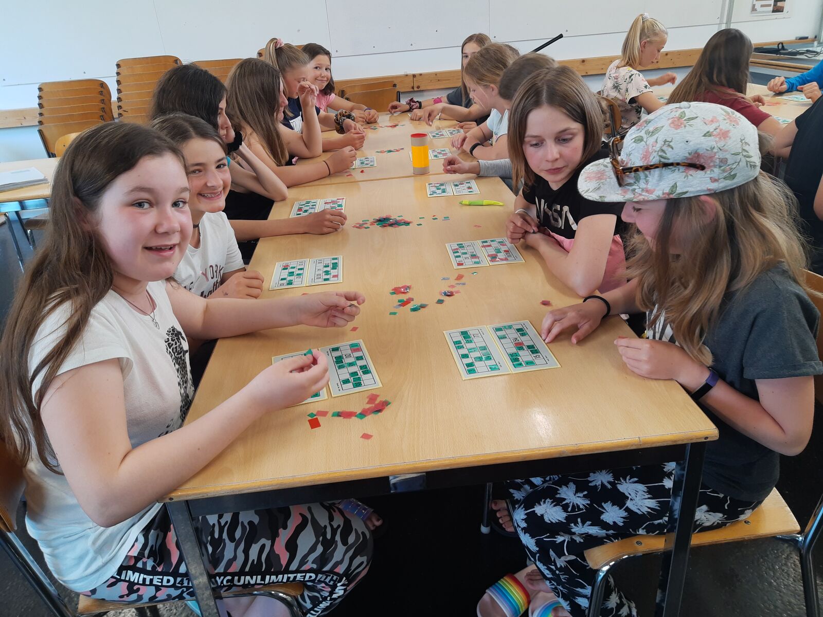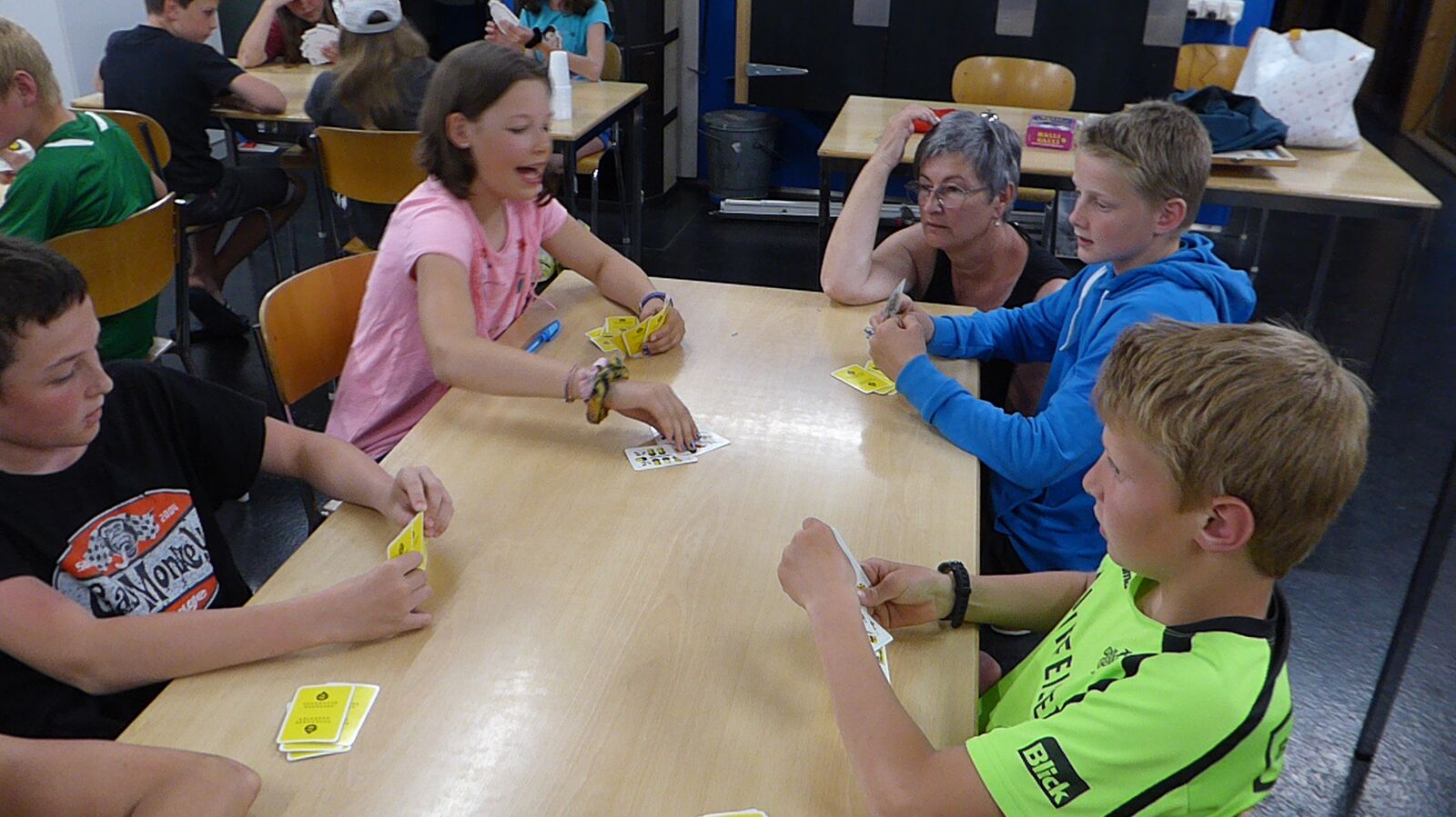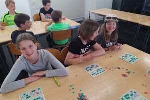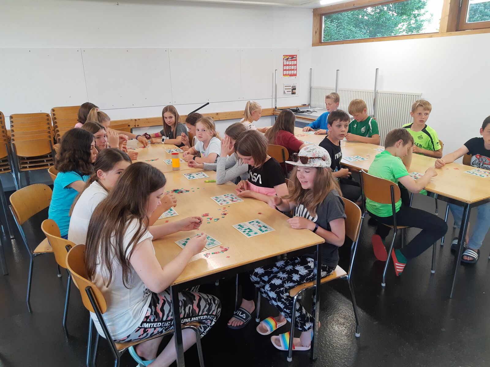 Am Nachmittag hatten die Kinder eine Stunde Freizeit in Thun verdient. Nach dem Abendessen spielten wir Lotto und brachten den Kindern den Schellenjass bei. Es geht allen Kindern gut.