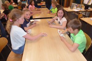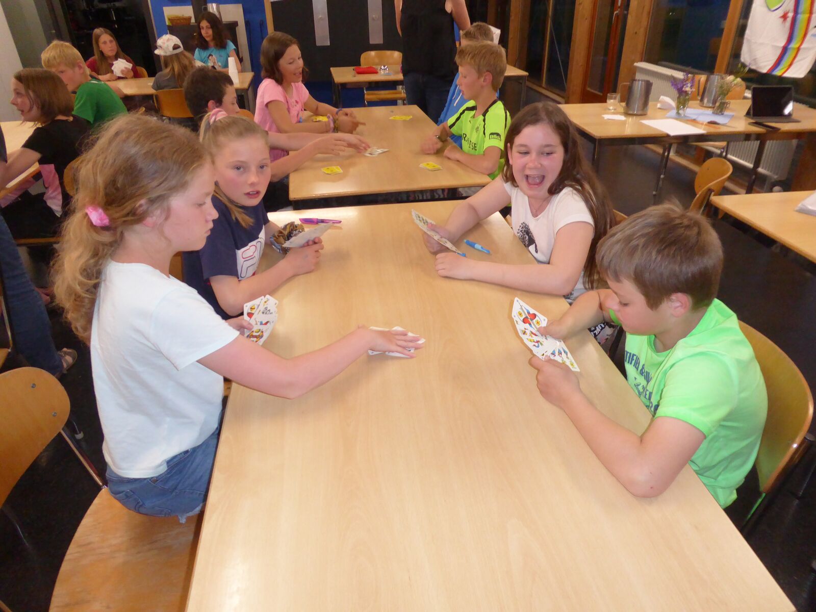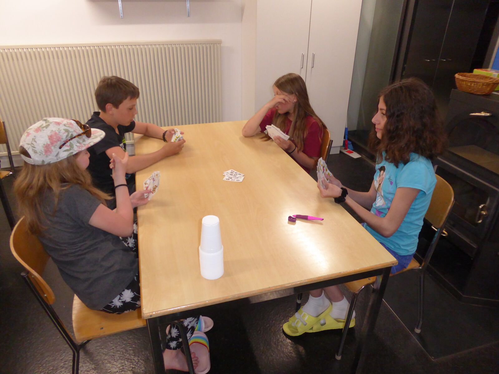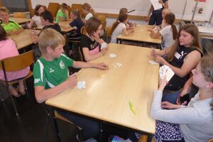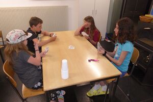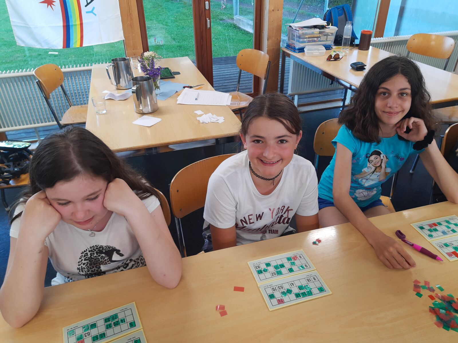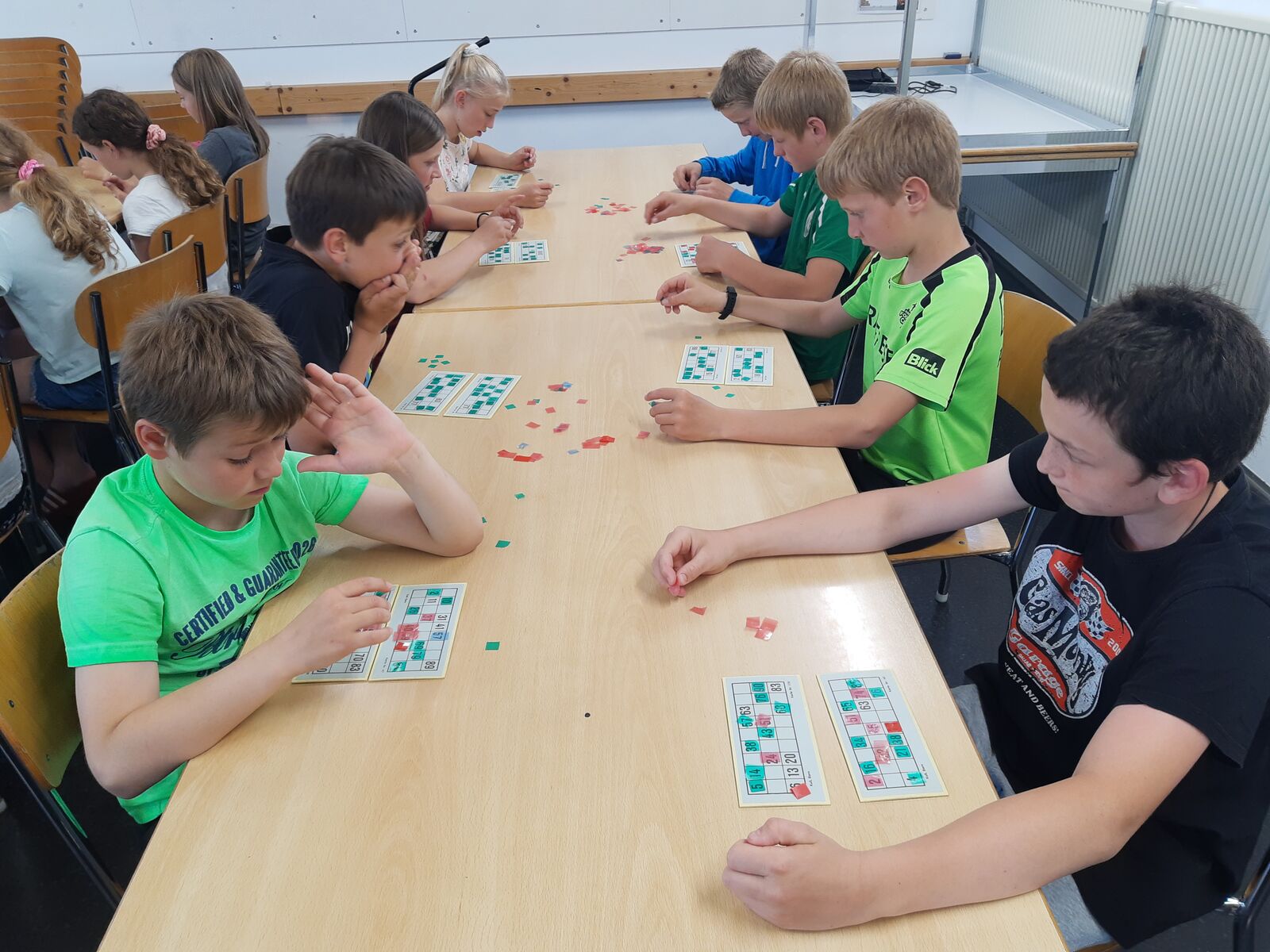 Am Nachmittag hatten die Kinder eine Stunde Freizeit in Thun verdient. Nach dem Abendessen spielten wir Lotto und brachten den Kindern den Schellenjass bei. Es geht allen Kindern gut.