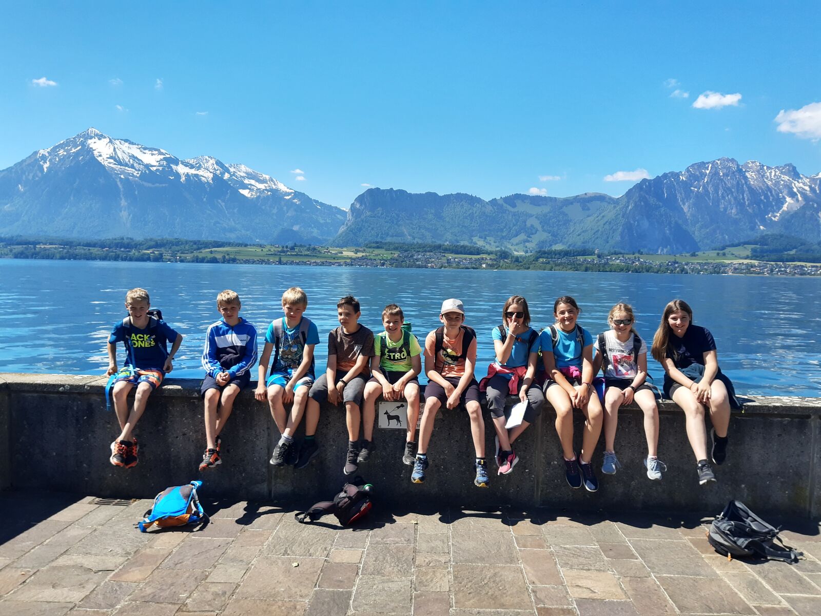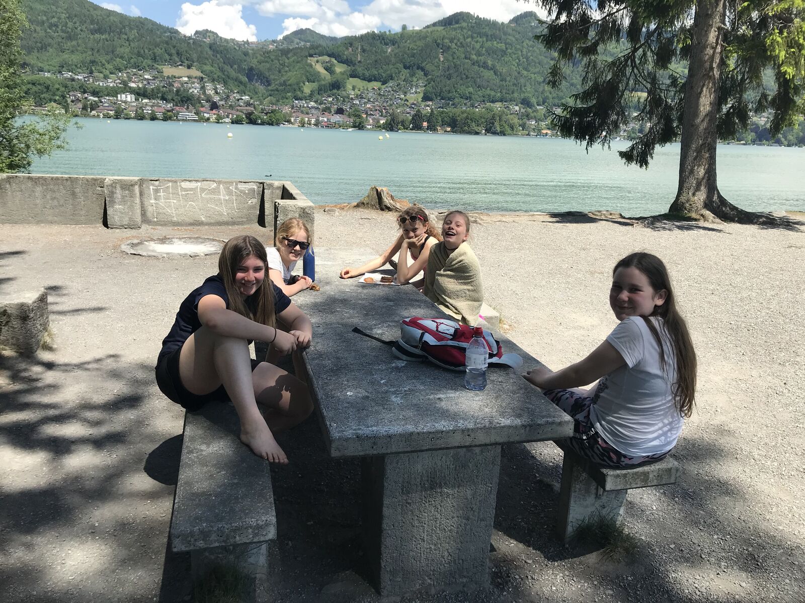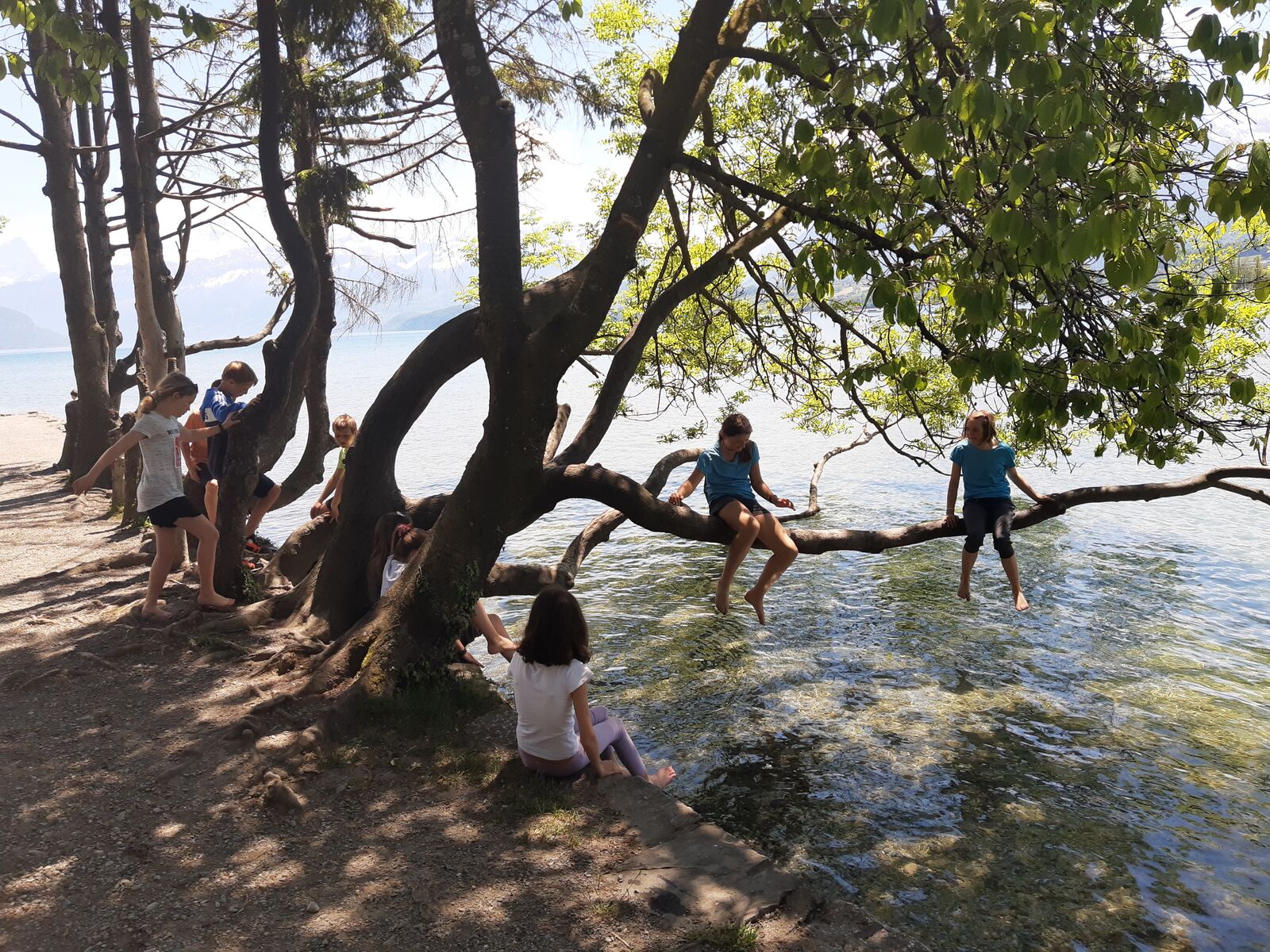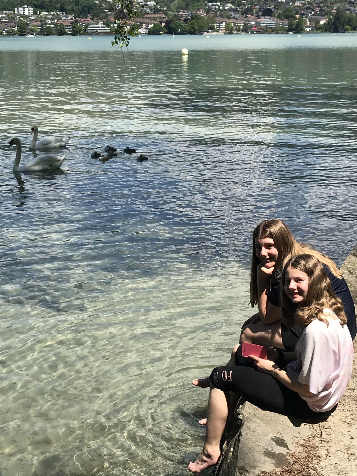 Wir jagten in Thun einen Fuchs. Das Spiel heisst Foxtrail und schickt einem kreuz und quer durch die ganze Stadt, vorbei an den schönsten und lauschigsten Plätzen und Orten. Das Mittagessen genossen wir auf dem Grunderinseli bei einer schönen Grillstelle. Die seichte Bucht lud zum Planschen und Baden ein, auch wenn das Wasser noch kalt war. Die nahen Berge sind noch tief verschneit. Eiger, Mönch und Jungfrau blicken majestätisch auf uns herab.