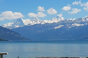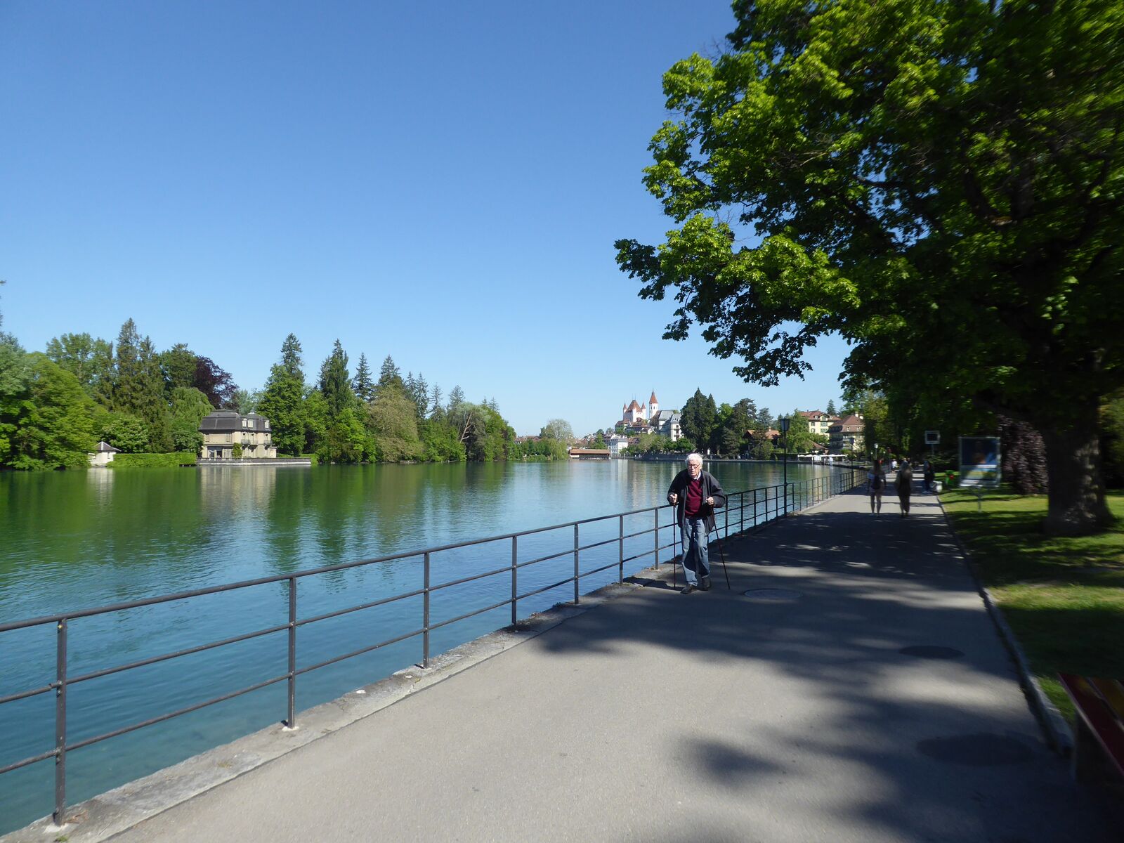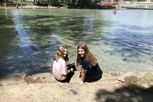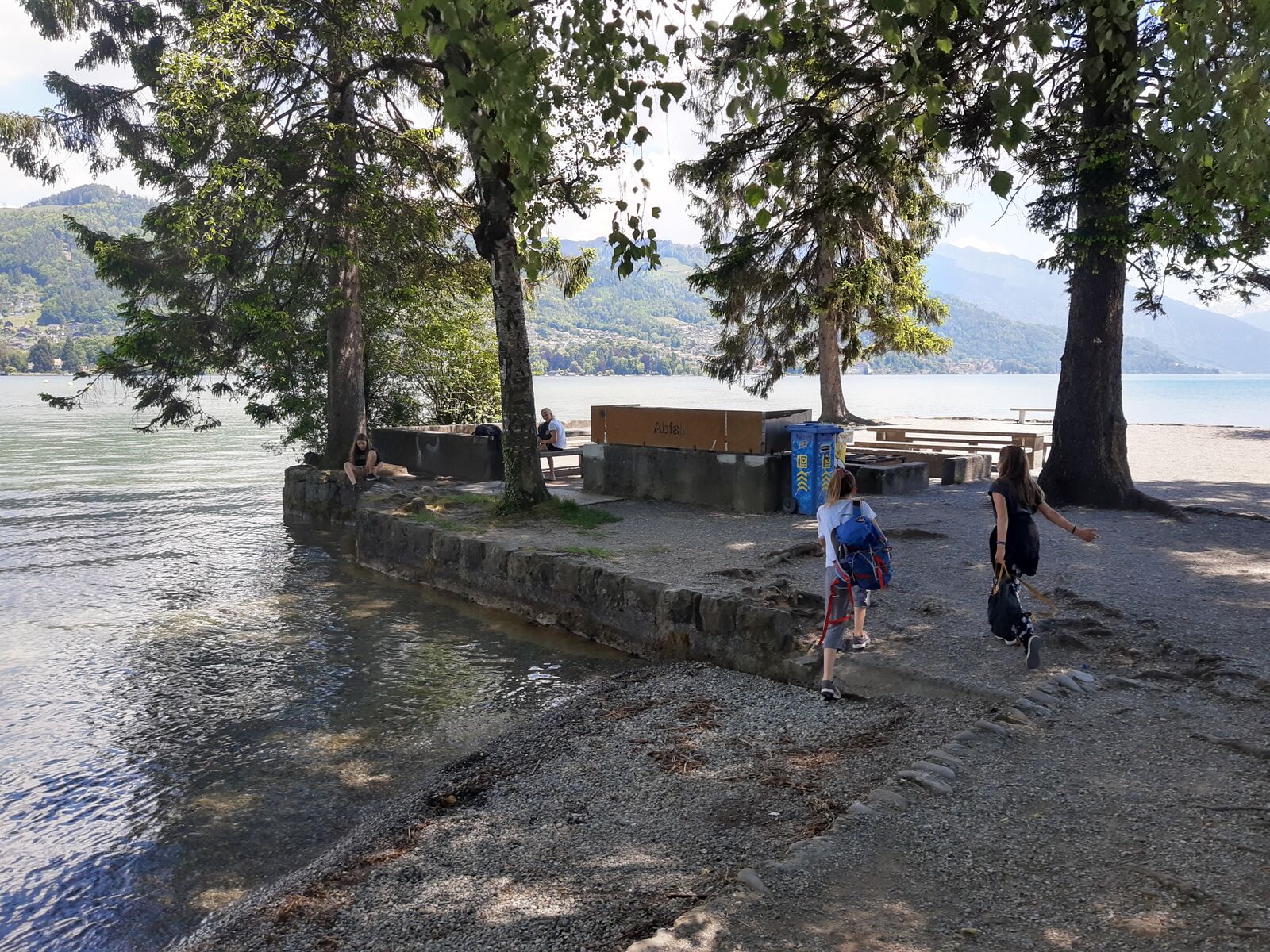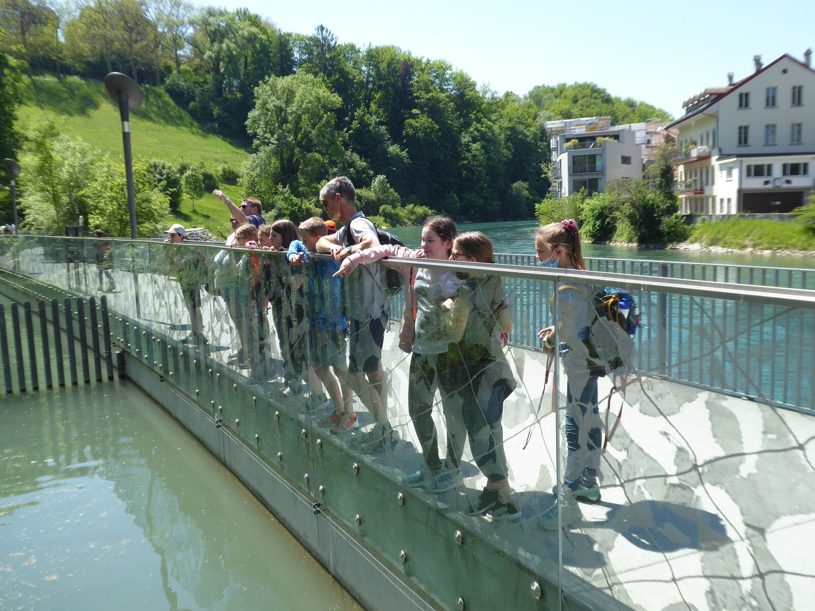 Wir jagten in Thun einen Fuchs. Das Spiel heisst Foxtrail und schickt einem kreuz und quer durch die ganze Stadt, vorbei an den schönsten und lauschigsten Plätzen und Orten. Das Mittagessen genossen wir auf dem Grunderinseli bei einer schönen Grillstelle. Die seichte Bucht lud zum Planschen und Baden ein, auch wenn das Wasser noch kalt war. Die nahen Berge sind noch tief verschneit. Eiger, Mönch und Jungfrau blicken majestätisch auf uns herab.