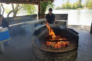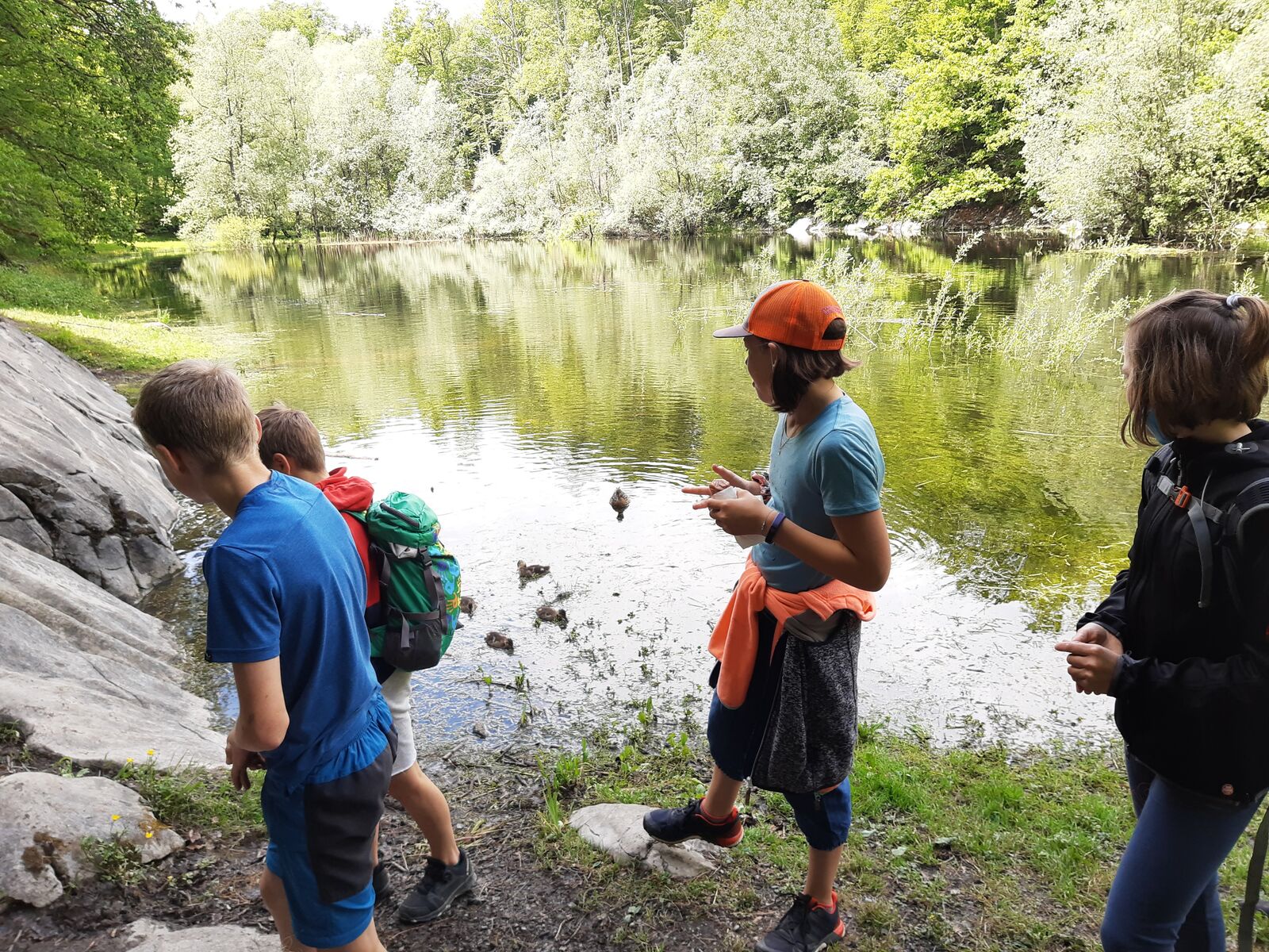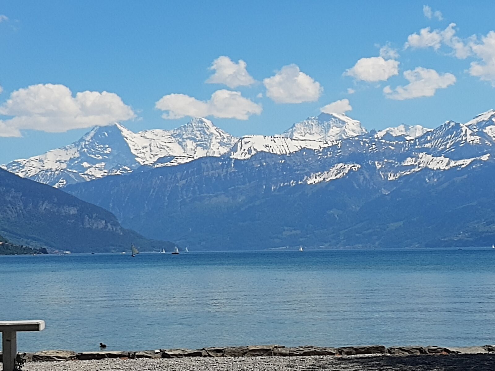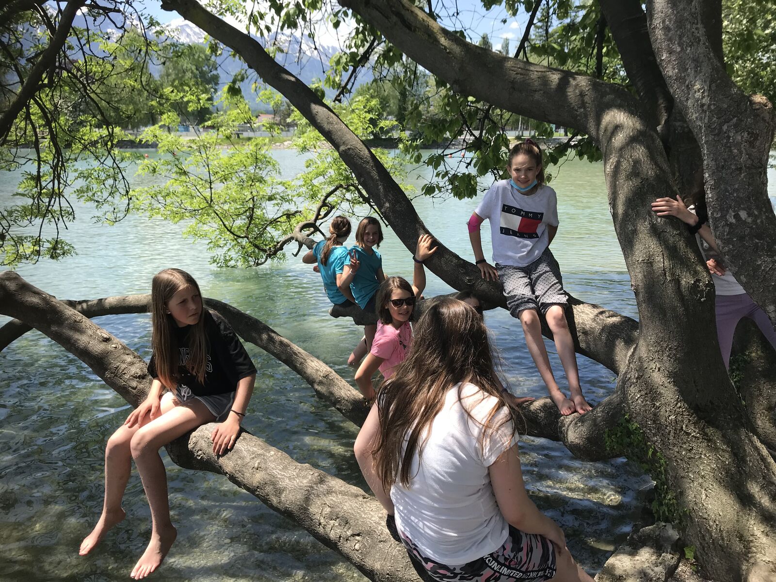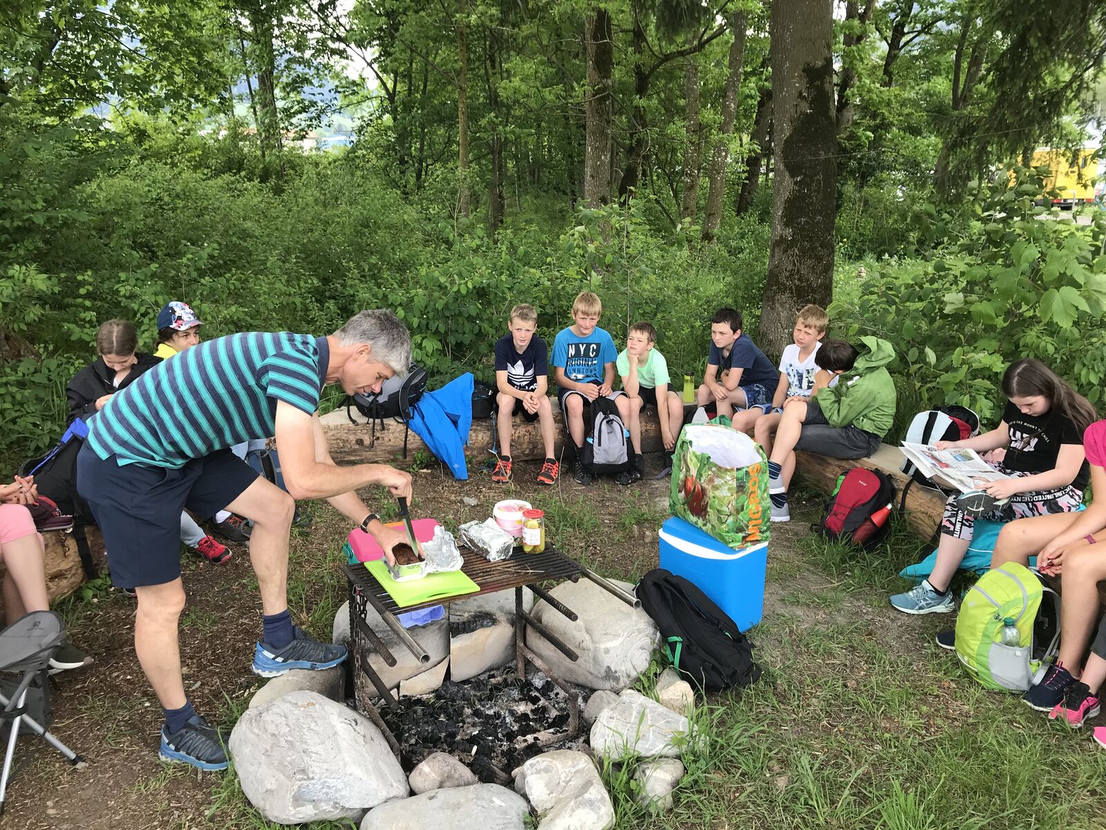 Wir jagten in Thun einen Fuchs. Das Spiel heisst Foxtrail und schickt einem kreuz und quer durch die ganze Stadt, vorbei an den schönsten und lauschigsten Plätzen und Orten. Das Mittagessen genossen wir auf dem Grunderinseli bei einer schönen Grillstelle. Die seichte Bucht lud zum Planschen und Baden ein, auch wenn das Wasser noch kalt war. Die nahen Berge sind noch tief verschneit. Eiger, Mönch und Jungfrau blicken majestätisch auf uns herab.