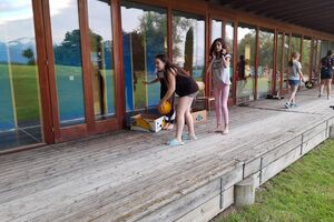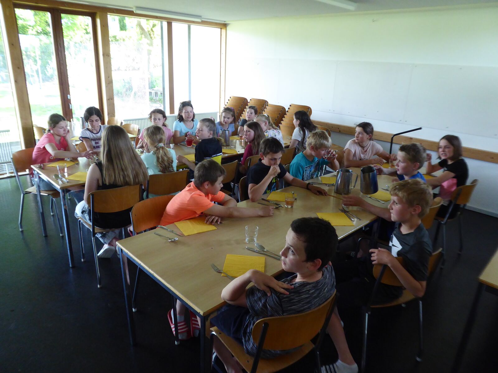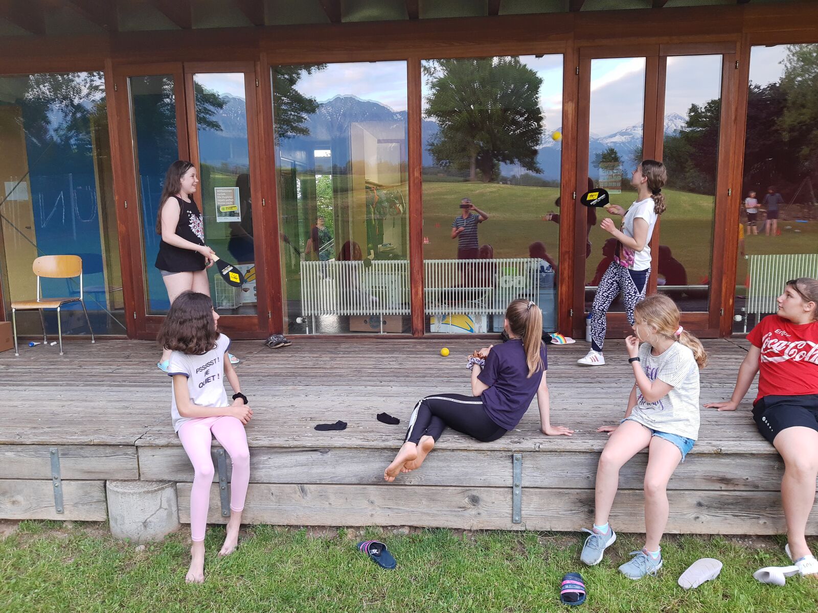 Am Abend schauten die Mädchen einen Film. Die Jungs hatten noch nicht genug Sport gehabt. Sie vergnügten sich im Keller mit Dart und Tischtennis. Alle Kinder sind wohlauf. Wir freuen uns aufs Freilichtmuseum Ballenberg, welches wir morgen besuchen.