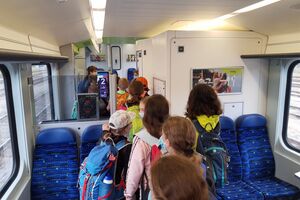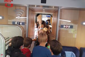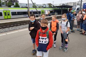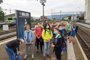 Bei der Anreise zum Ballenberg bekamen wir wieder einmal die Tücken des ÖV zu spüren. Der eine Zug fuhr mit etwas Verspätung, der Anschluss war weg. Gestrandet sind wir zwar nicht, die Reise dauerte aber doch etwas länger als geplant. Wenn es auf dem Bahnhof etwas eiliger wird, verwandelt sich unsere Klasse in eine Lawine, die erbarmungslos alles überströmt, was sich in den Weg stellt. Wie eine Herde Gnus fluten sie die Perrons, so dass mir selbst zuhinterst Angst und Bange wird.