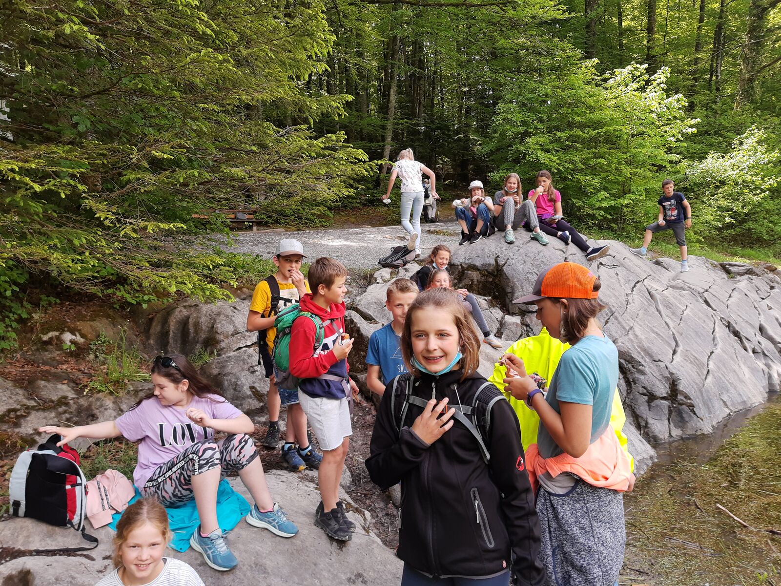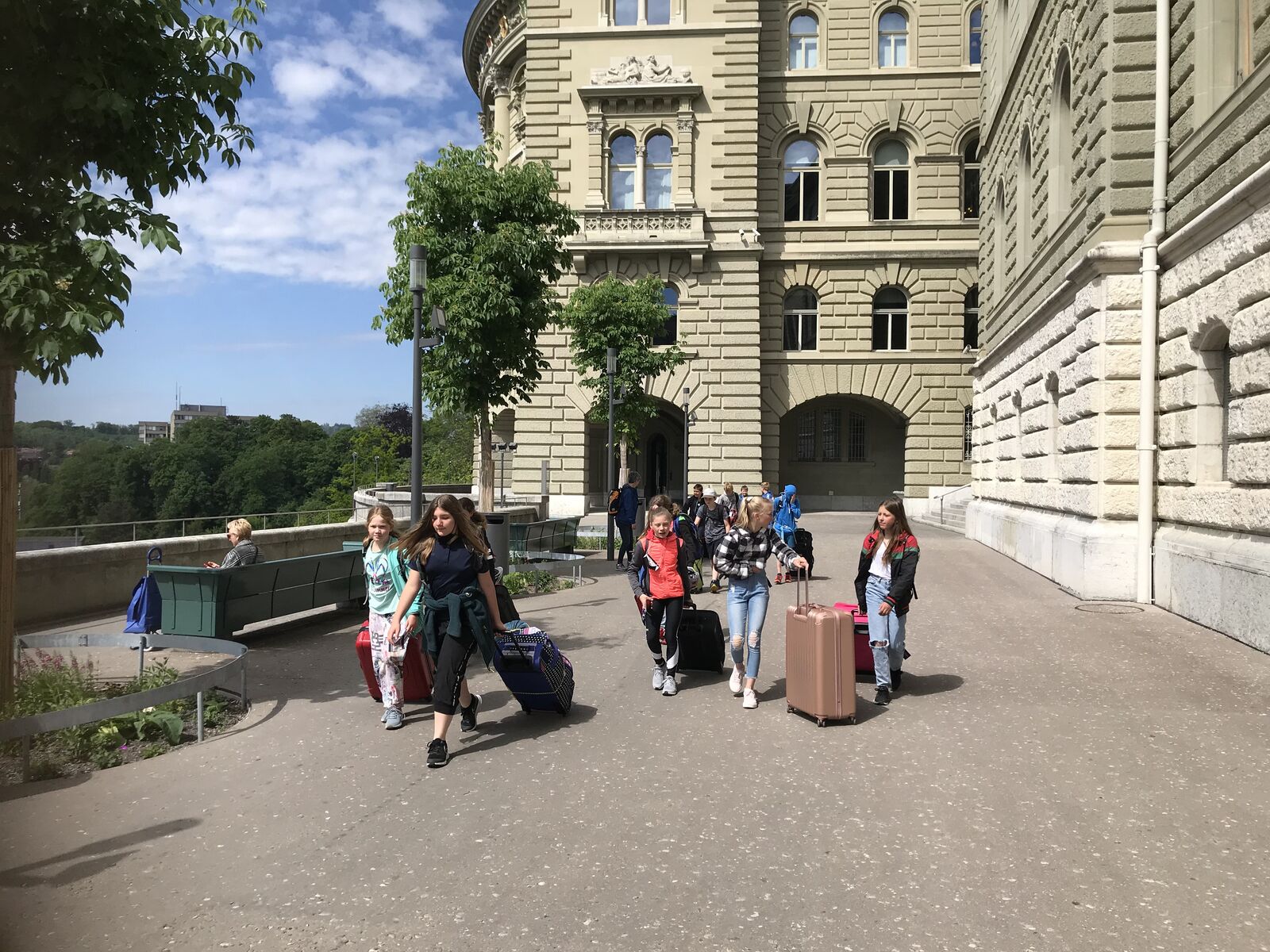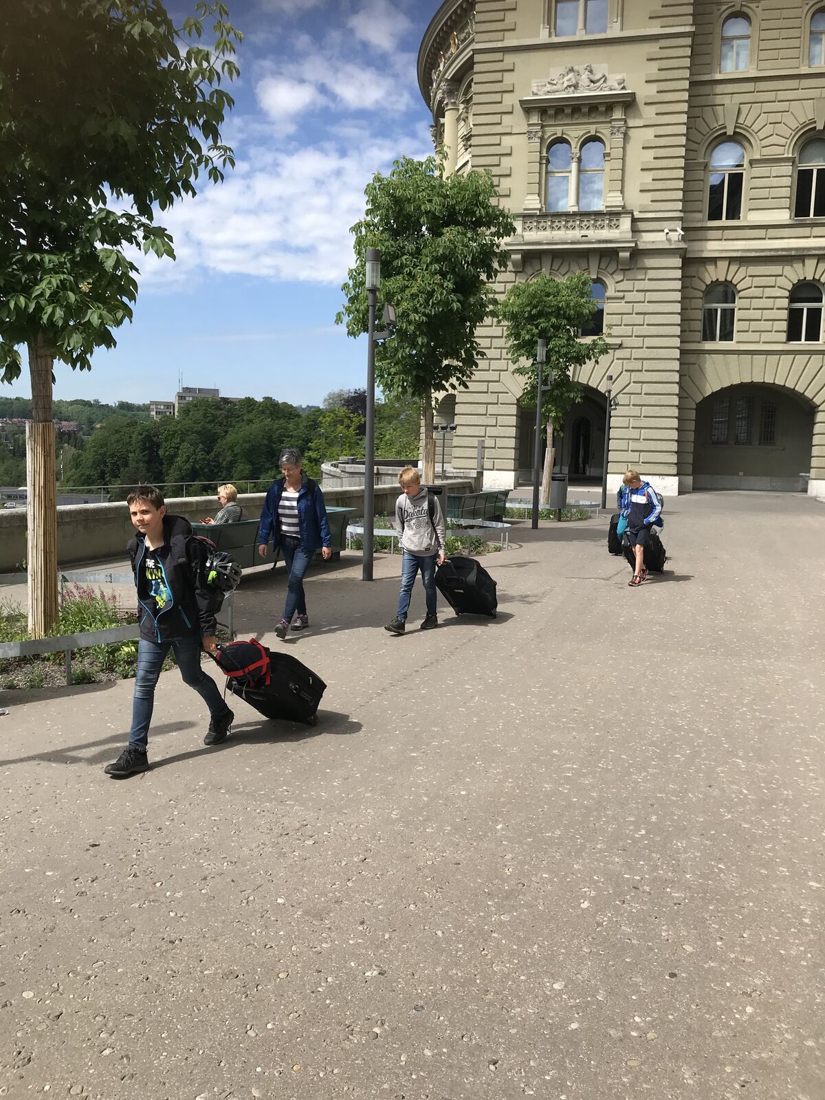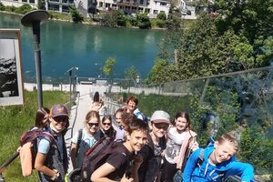 Nachdem wir unseren eigenen Bärenhunger gestillt hatten, schwangen wir uns selber in den Sattel und fuhren Richtung Uetendorf, welches wir nach ungefähr und zwei Stunden Fahrt erreichten. Hier wohnen laut google rund 5900 Menschen. Zwei davon sind schweizweit bekannt. Albert Rösti ist ehemaliger Präsident der SVP Schweiz und aktiver Nationalrat. Ausserdem amtet er als Gemeindepräsident von Uetendorf. Einige unserer Schülerinnen und Schüler dürften sich aber eher für Luca Hänni interessieren, der in Uetendorf aufgewachsen ist. Gesehen haben wir heute keinen dieser Promis. Der eine nimmt wahrscheinlich an der Session in Bundesbern teil, der andere singt, tanzt oder .... was weiss ich, in Deutschland. Wir halten aber weiterhin die Augen offen und werden es sofort melden, wenn einer der beiden bei uns vorbeikommt.