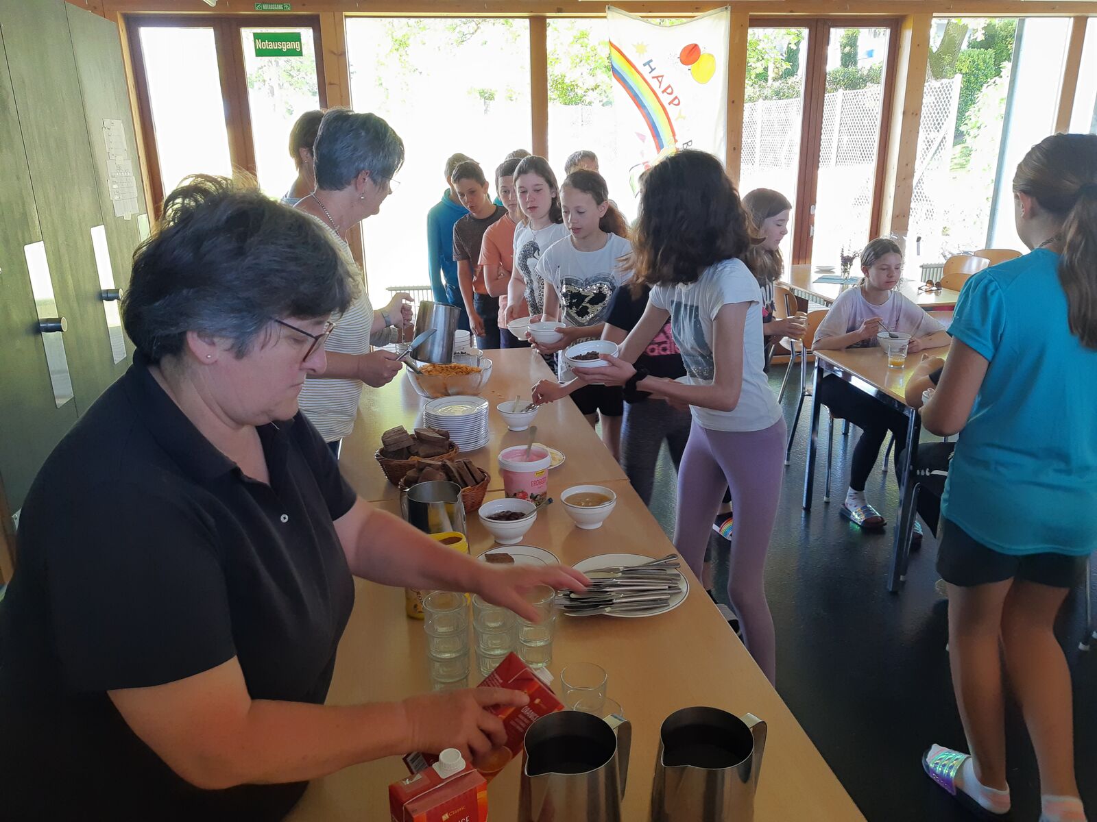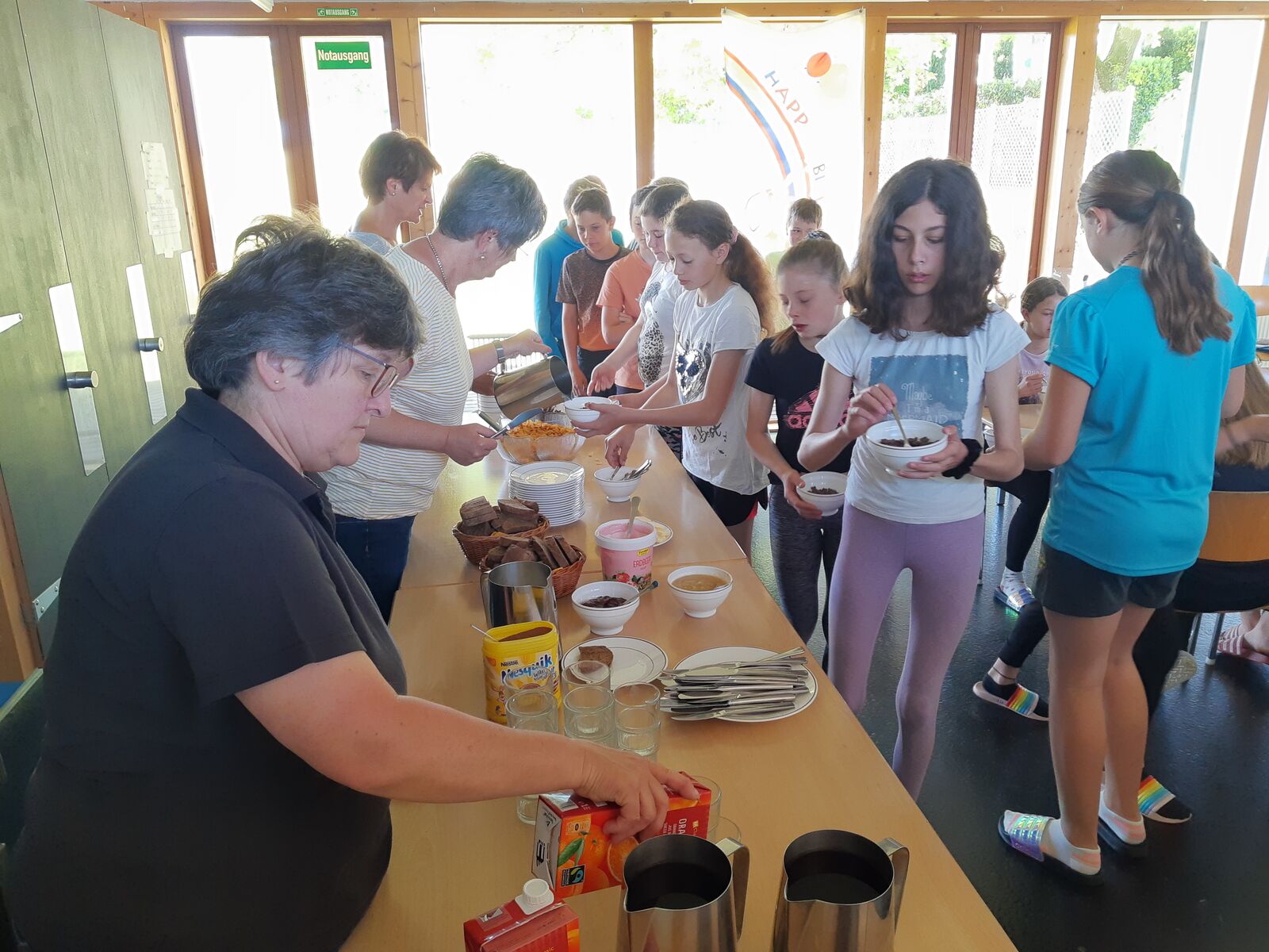 Ein Klassenlager wie unseres ist nur mit Freiwilligenarbeit zu realisieren. Dieses Jahr begleiten uns erstmals Katrin Baumgartner und Renate Dietsche. Ihr Verdienst ist es, dass während der ganzen Woche unsere Mägen immer gut gefüllt sind. Ausserdem leisten sie bei der Betreuung wertvolle Arbeit - vielen Dank!