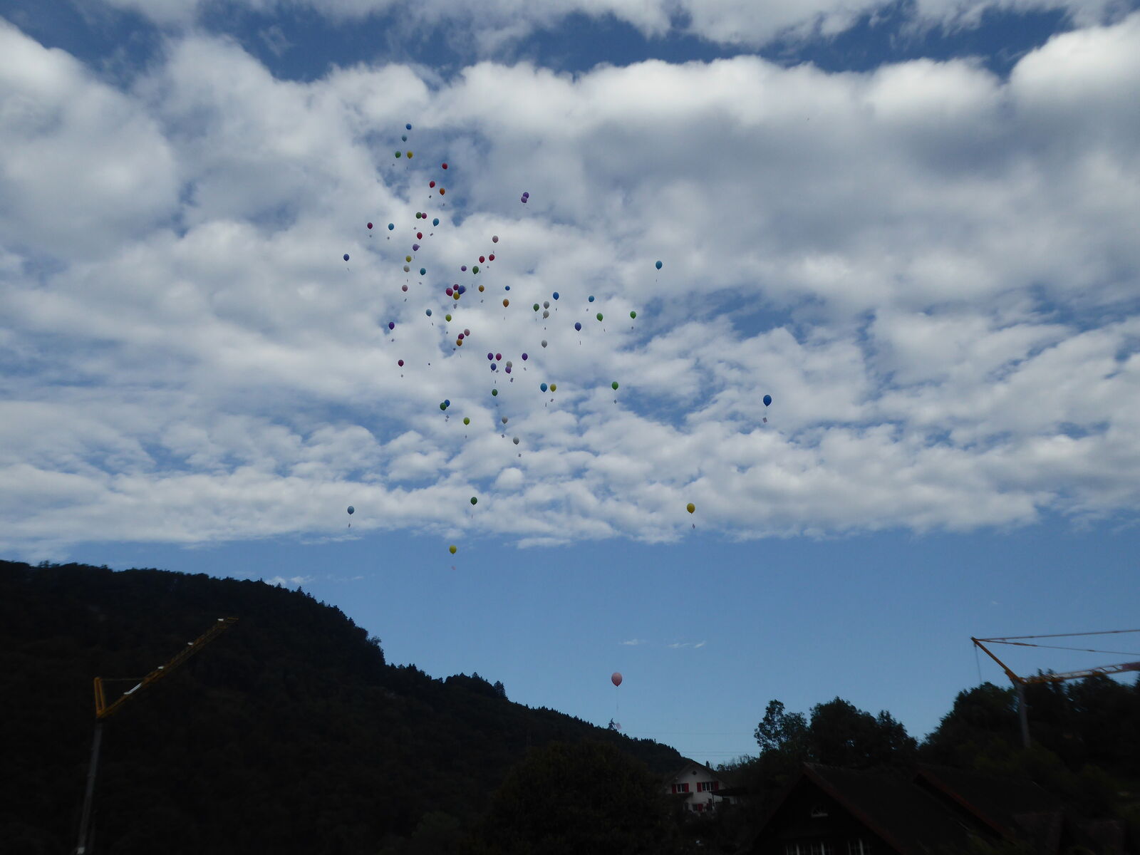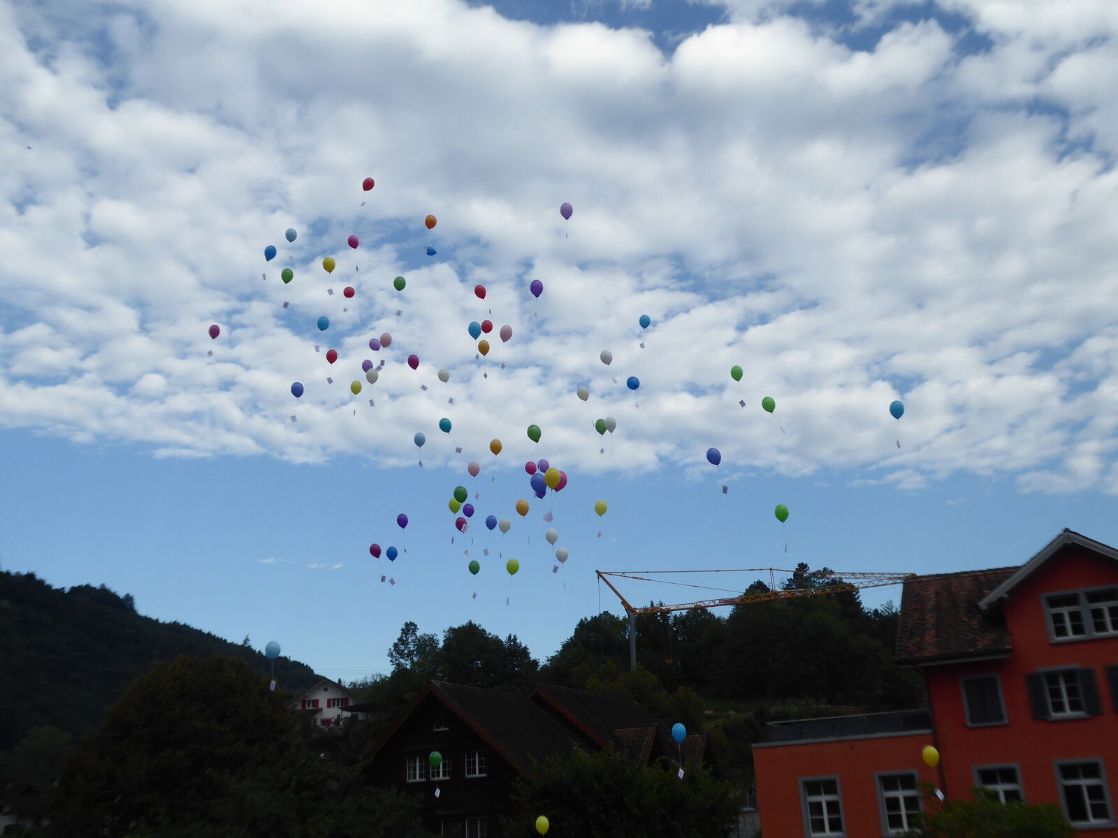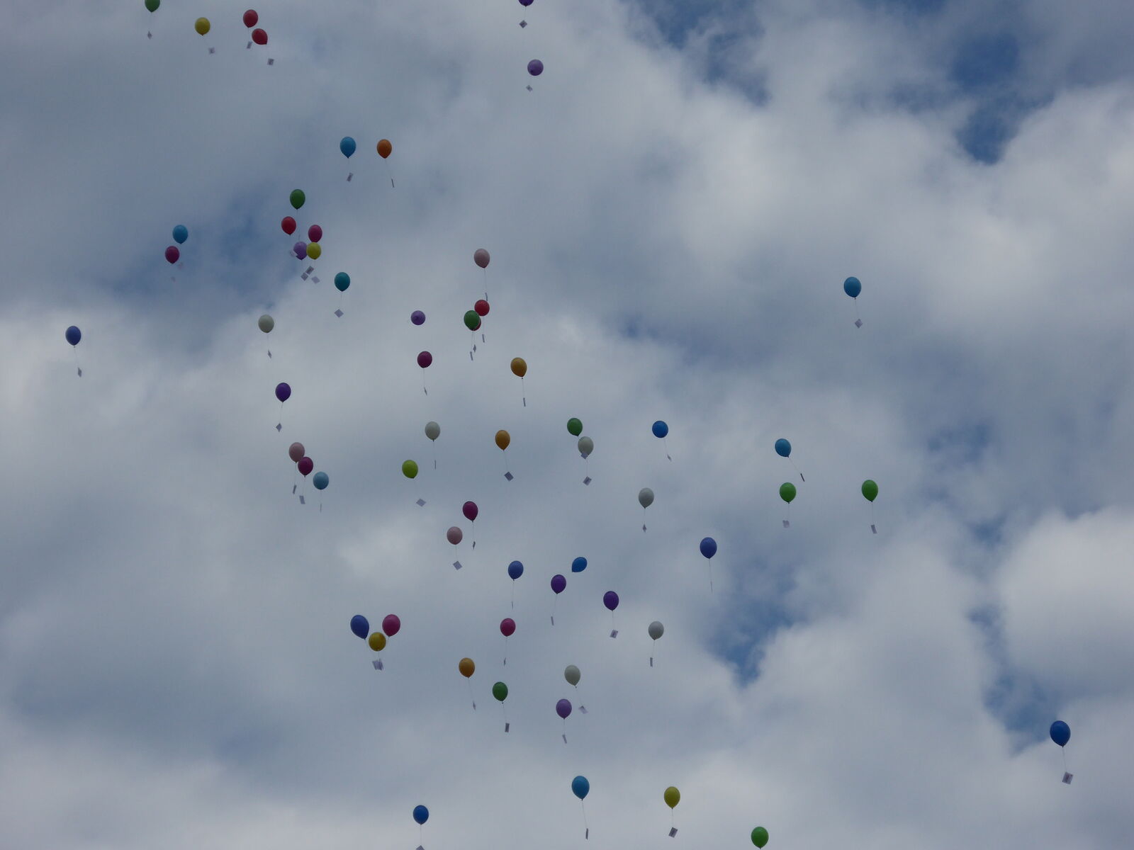 Getreu unserem Jahresthema "BUNT" durfte jedes Kind einen farbigen Ballon, versehen mit einem ganz persönlichen Wunsch, in den Himmel steigen lassen.
