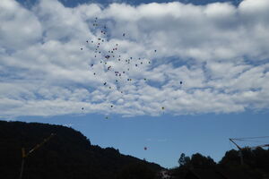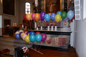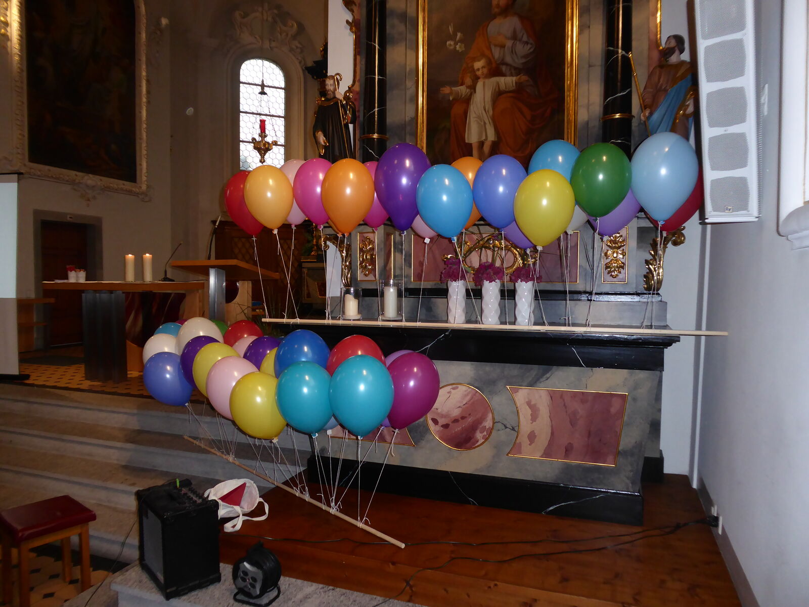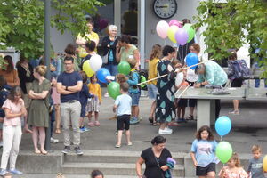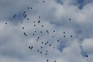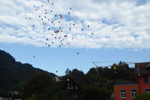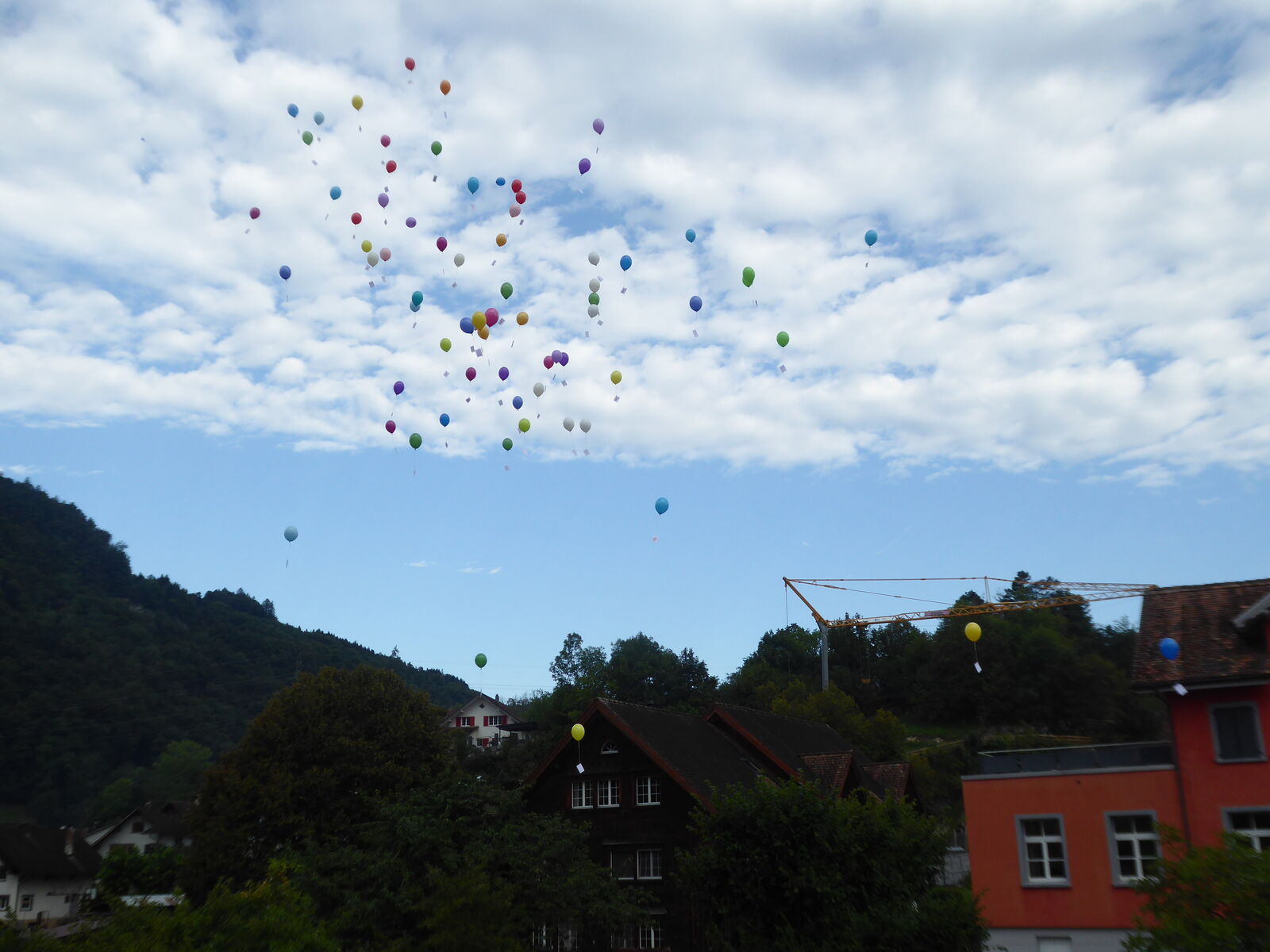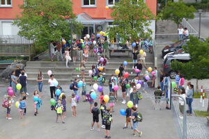 Getreu unserem Jahresthema "BUNT" durfte jedes Kind einen farbigen Ballon, versehen mit einem ganz persönlichen Wunsch, in den Himmel steigen lassen.