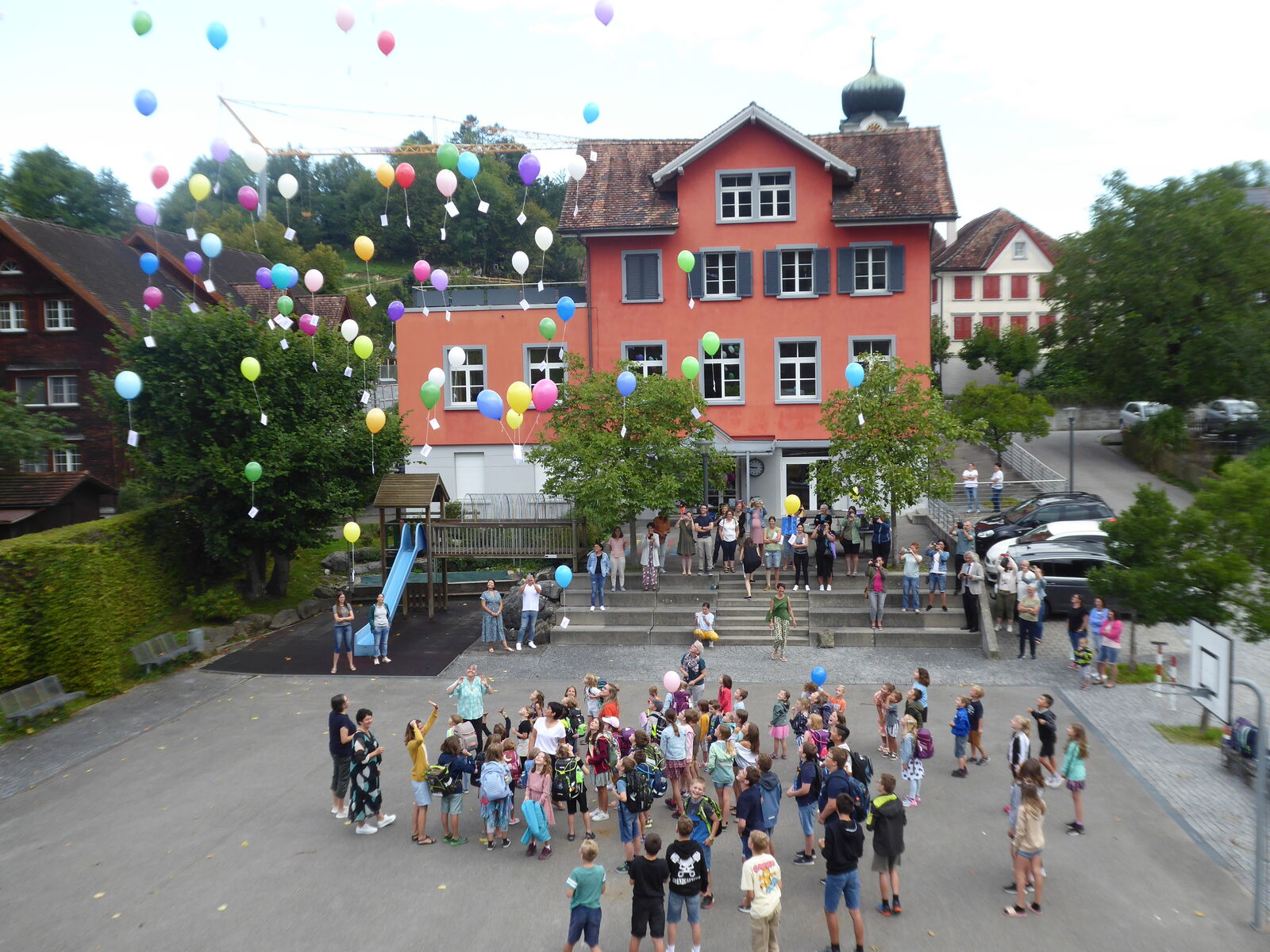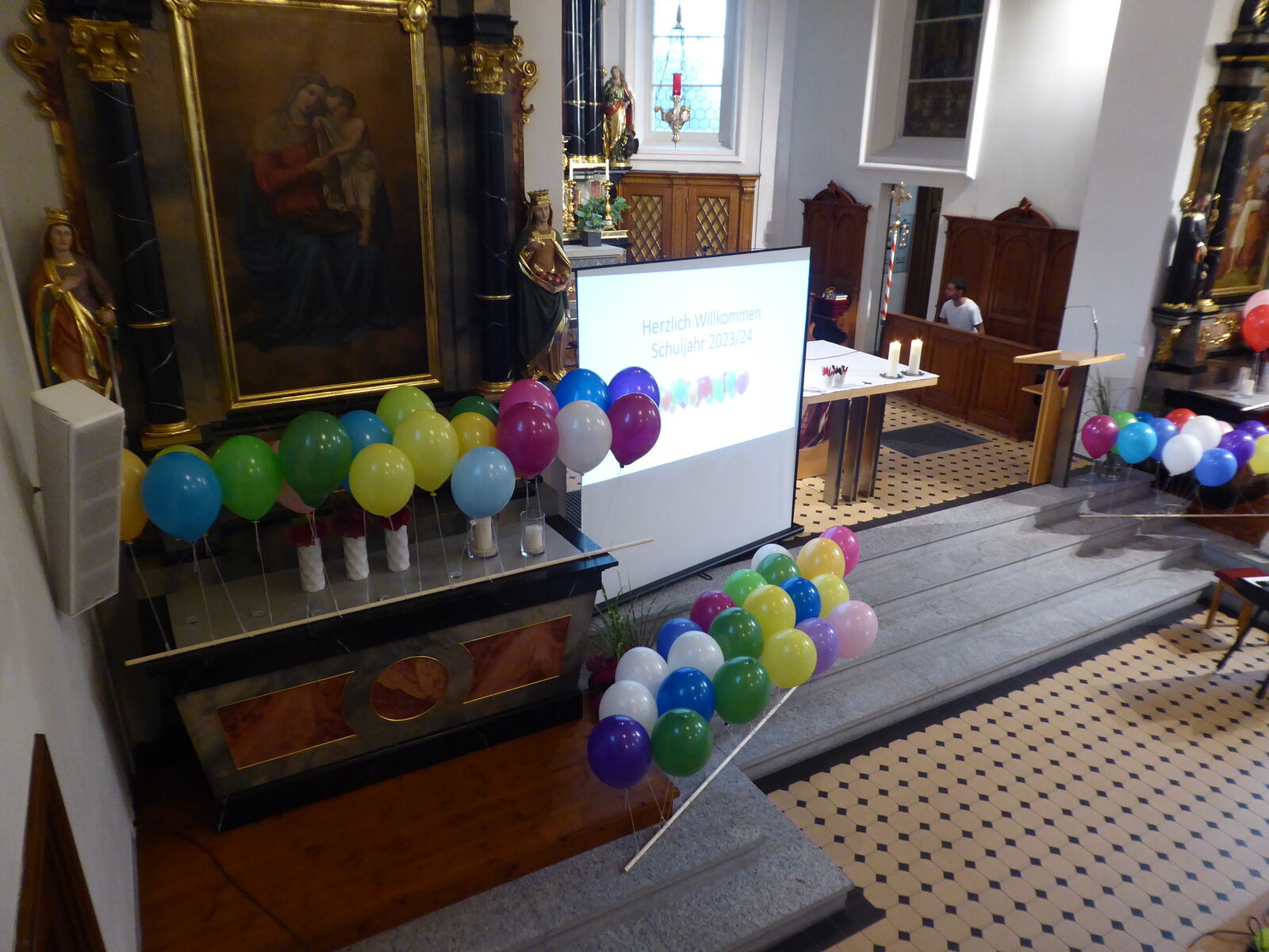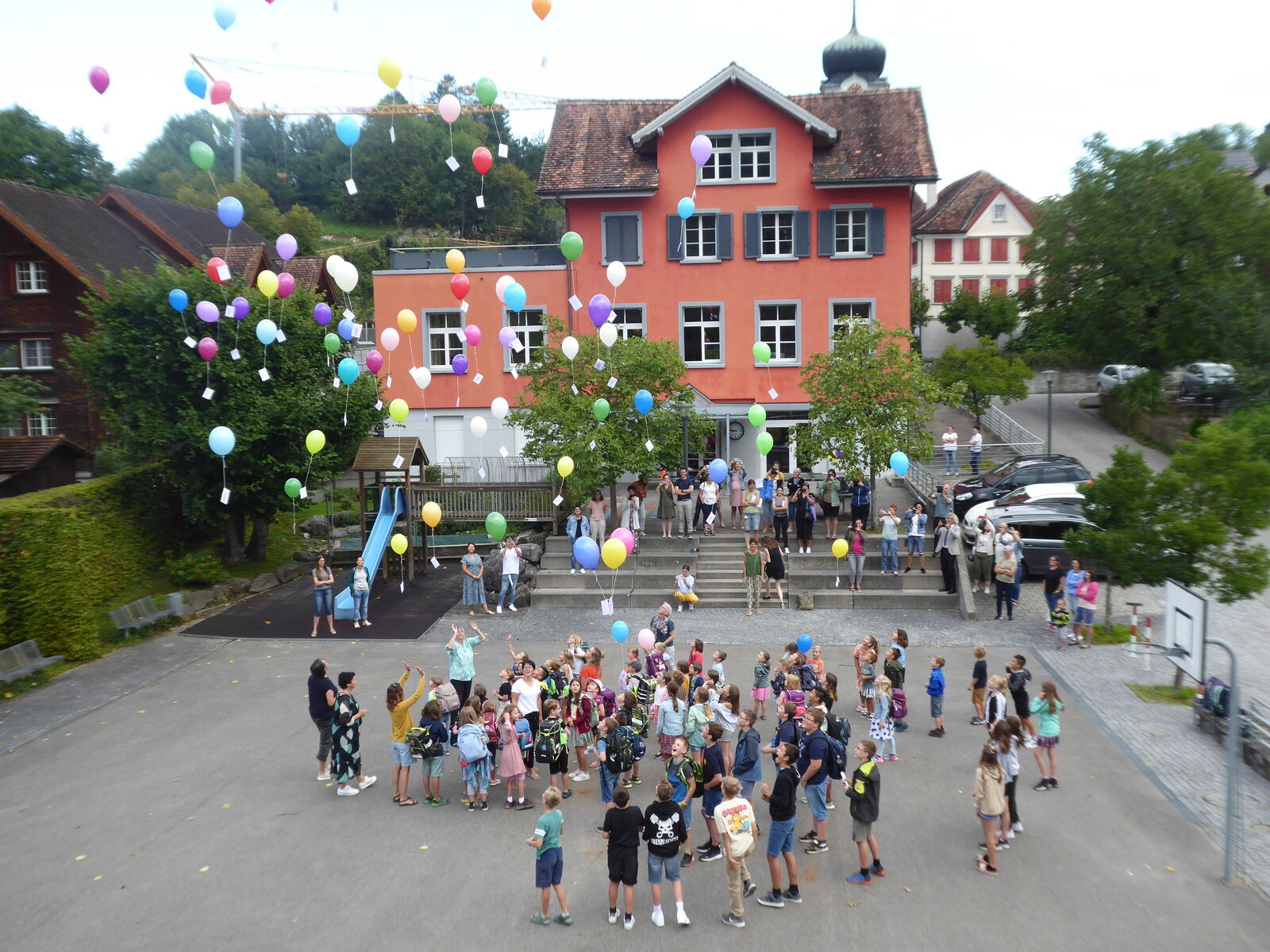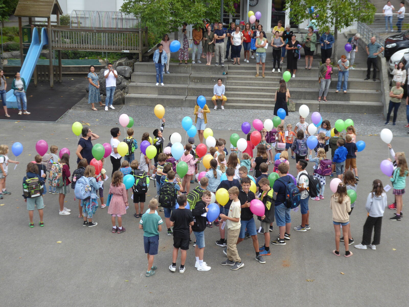 Die älteren Schülerinnen und Schüler haben sich längst an das jährliche Ritual gewöhnt. Trotzdem waren sie sicher etwas aufgeregt, denn für die Schuleröffnungsfeier, welche den Start des Schuljahres 23/24 markiert, hatten sich Lehrkräfte zusammen mit den ReligionslehrerInnen wie immer etwas Spezielles überlegt. Für die jüngsten und neu eintretenden Kinder unserer Schule dürfte die gemeinsame Feier in der Kirche und auf dem Pausenplatz bleibende Eindrücke hinterlassen haben.