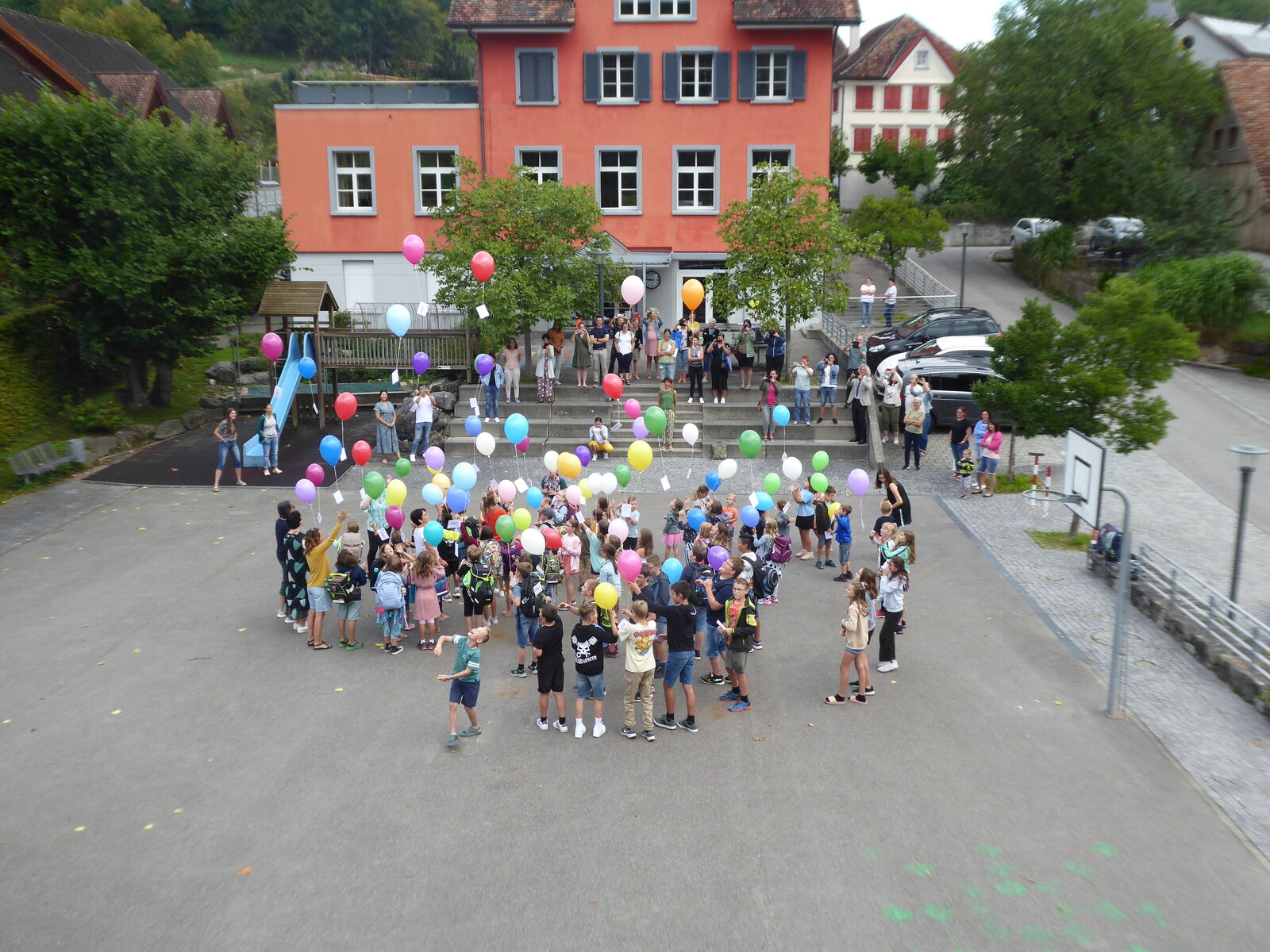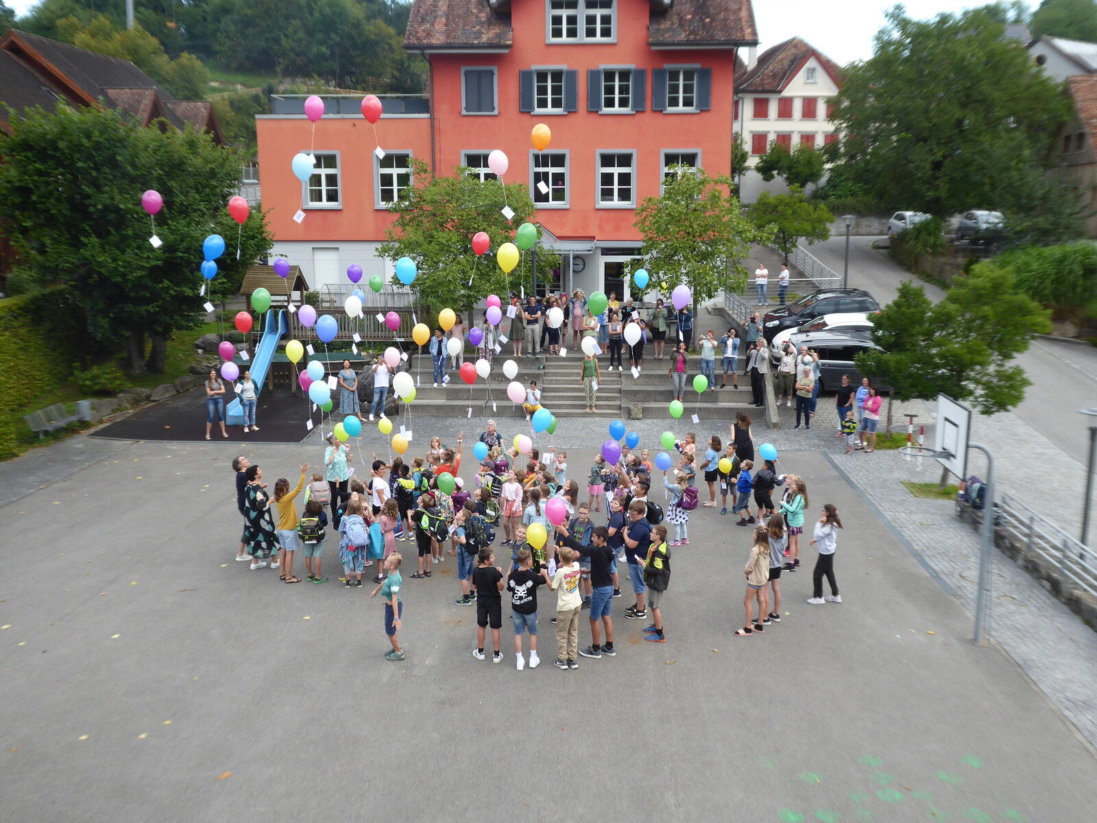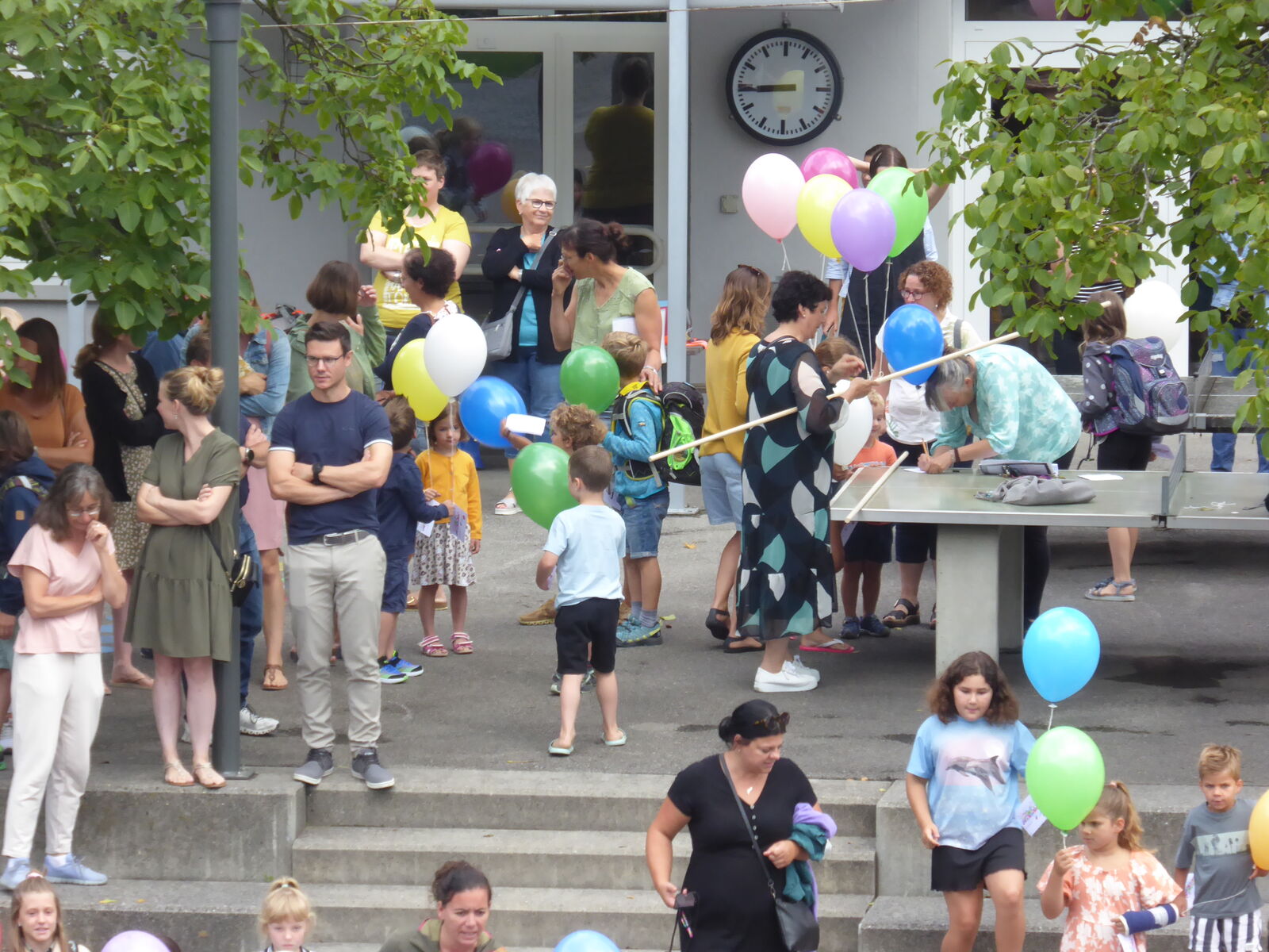 Die älteren Schülerinnen und Schüler haben sich längst an das jährliche Ritual gewöhnt. Trotzdem waren sie sicher etwas aufgeregt, denn für die Schuleröffnungsfeier, welche den Start des Schuljahres 23/24 markiert, hatten sich Lehrkräfte zusammen mit den ReligionslehrerInnen wie immer etwas Spezielles überlegt. Für die jüngsten und neu eintretenden Kinder unserer Schule dürfte die gemeinsame Feier in der Kirche und auf dem Pausenplatz bleibende Eindrücke hinterlassen haben.