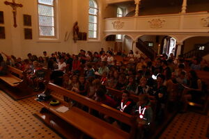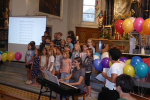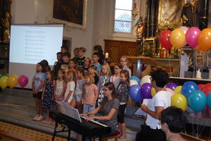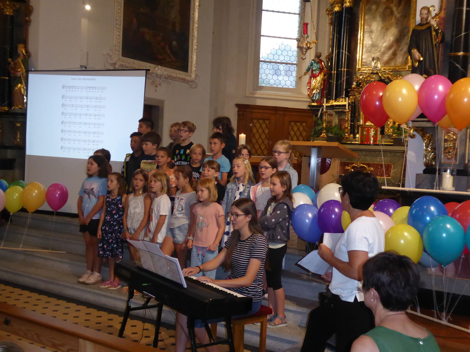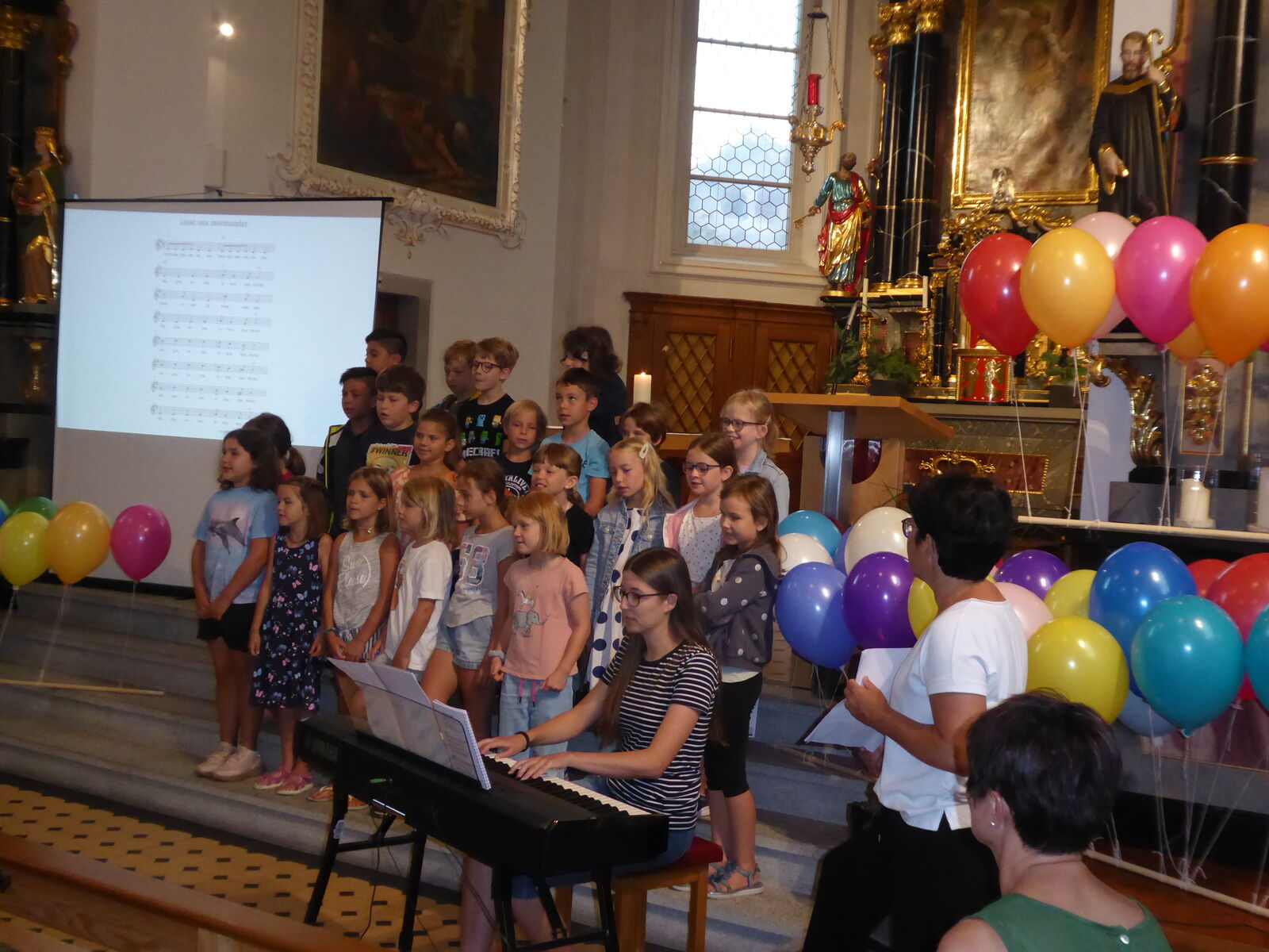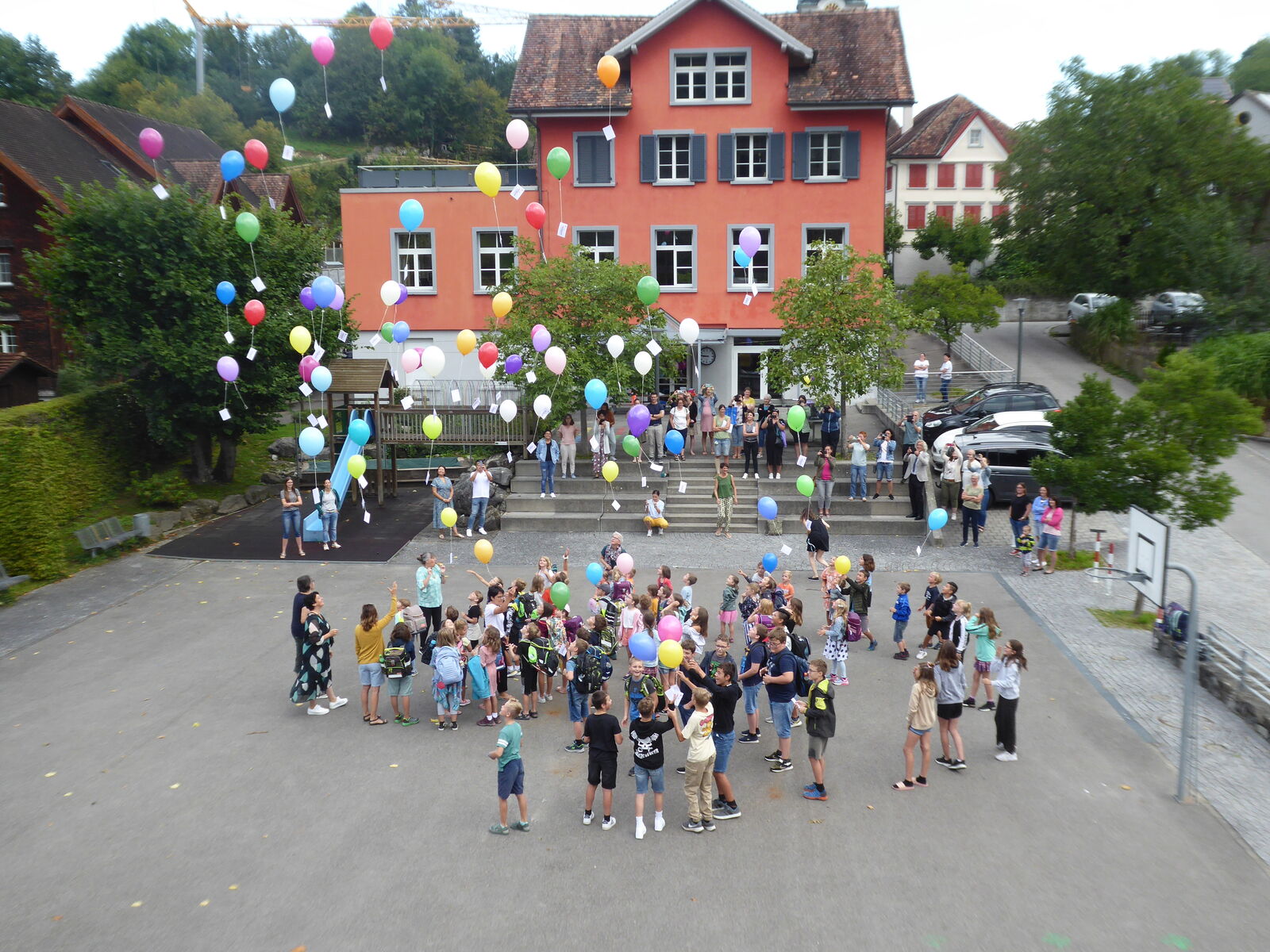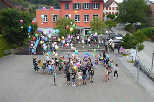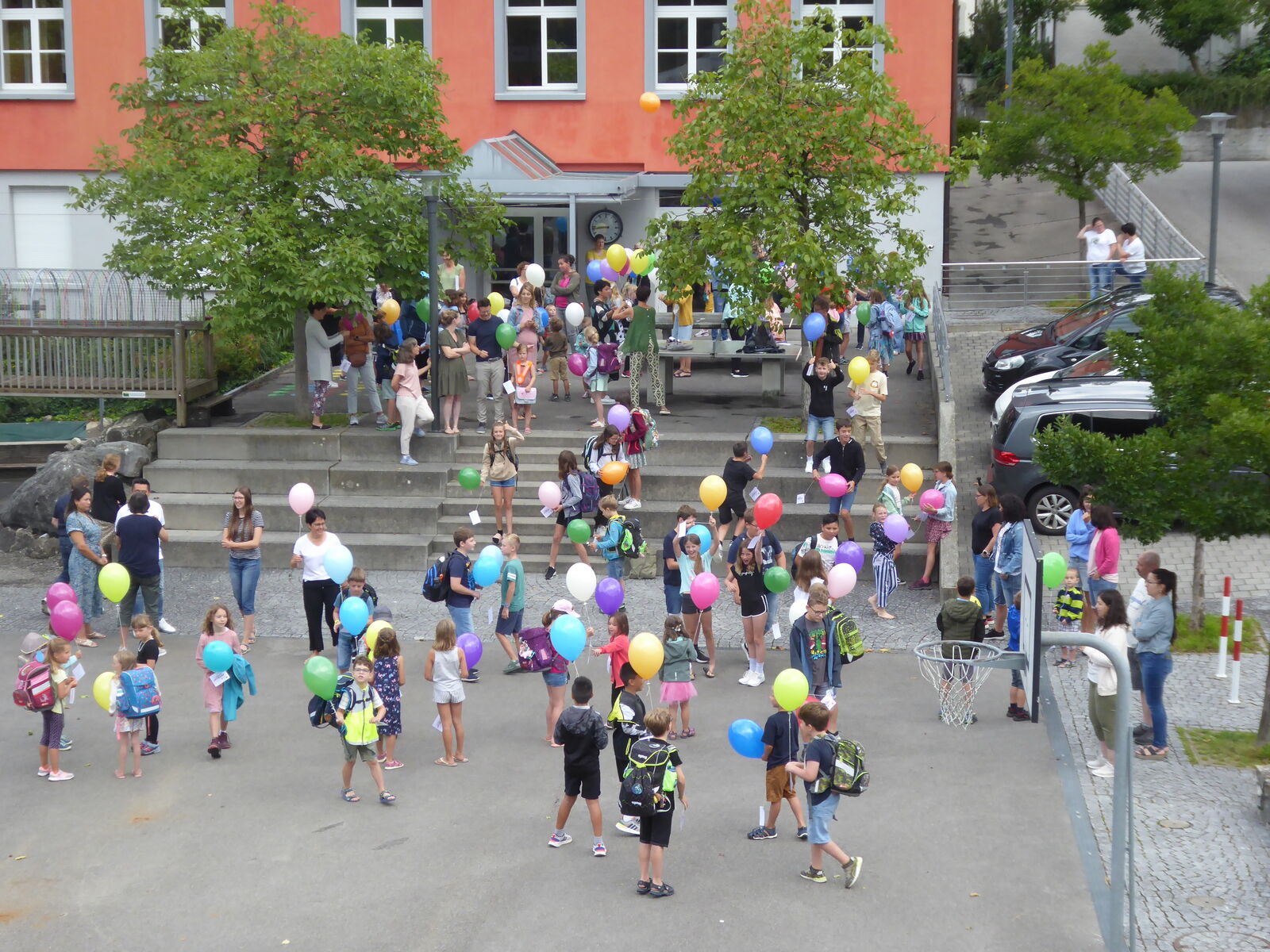 Die älteren Schülerinnen und Schüler haben sich längst an das jährliche Ritual gewöhnt. Trotzdem waren sie sicher etwas aufgeregt, denn für die Schuleröffnungsfeier, welche den Start des Schuljahres 23/24 markiert, hatten sich Lehrkräfte zusammen mit den ReligionslehrerInnen wie immer etwas Spezielles überlegt. Für die jüngsten und neu eintretenden Kinder unserer Schule dürfte die gemeinsame Feier in der Kirche und auf dem Pausenplatz bleibende Eindrücke hinterlassen haben.