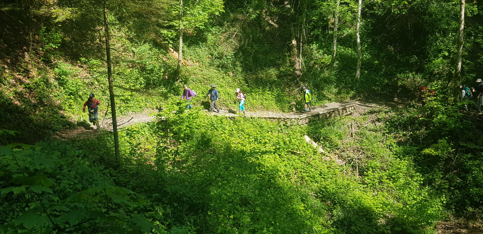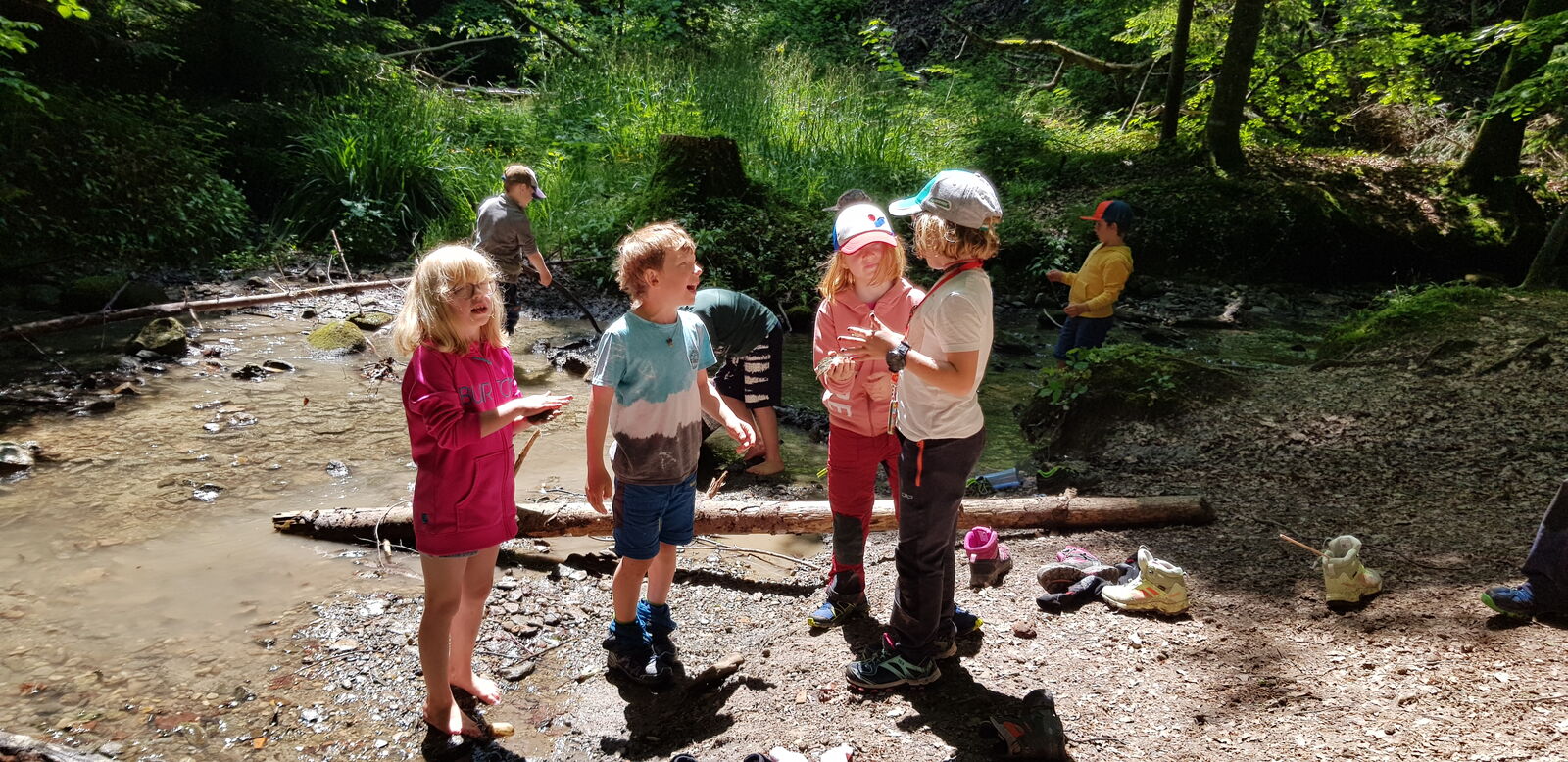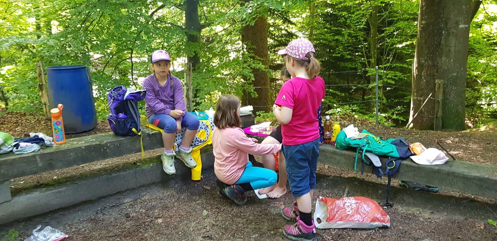 Mit dem Bus und Zug ging unsere Reise nach Rheineck, von dort mit dem Walzenhauser Bähnli nach Walzenhausen. Dann marschierten wir los, über Wiesen und durch Wälder bis wir unsere Feuerstelle im Wald erreichten. Wir hatten ganz viel Zeit zum Spielen, Grillen, Toben, Lachen, Wässerlen,.... Nach einer langen Pause liefen wir weiter Richtung St.Margrethen, wo uns der ÖV wieder nach Kobelwald brachte.