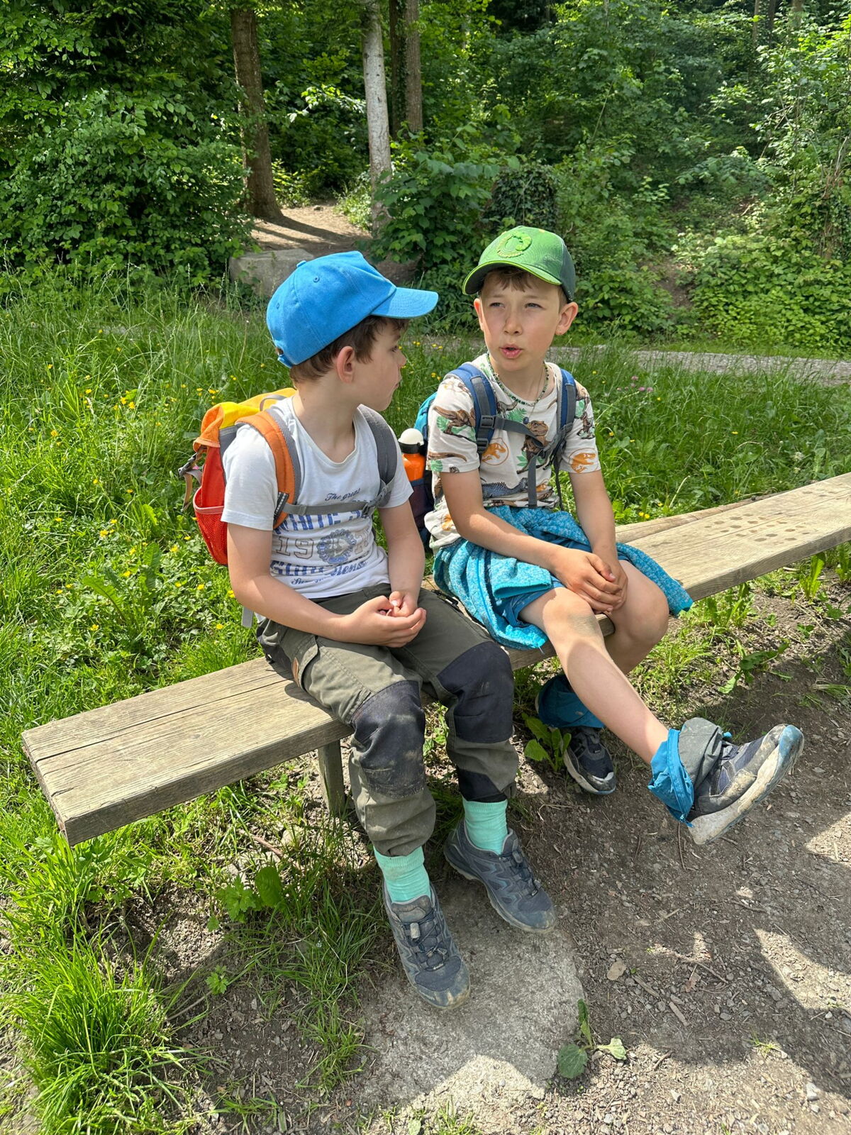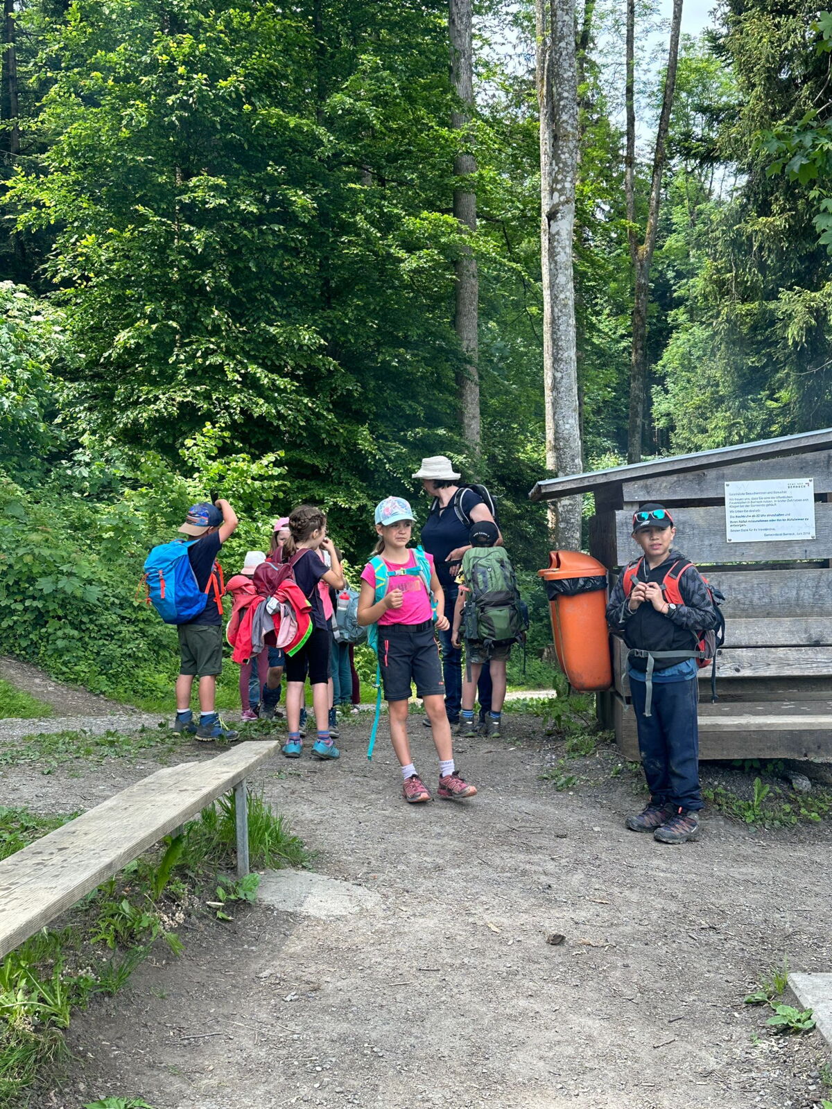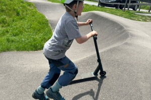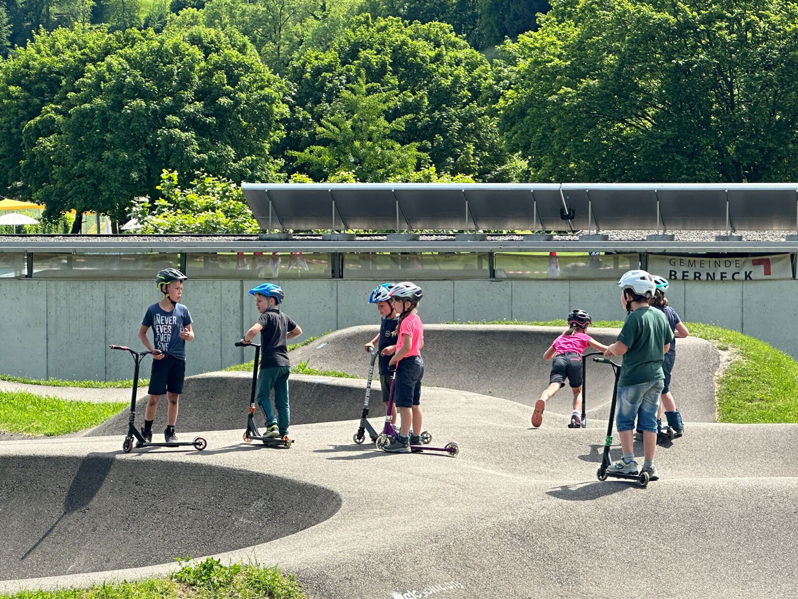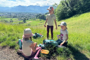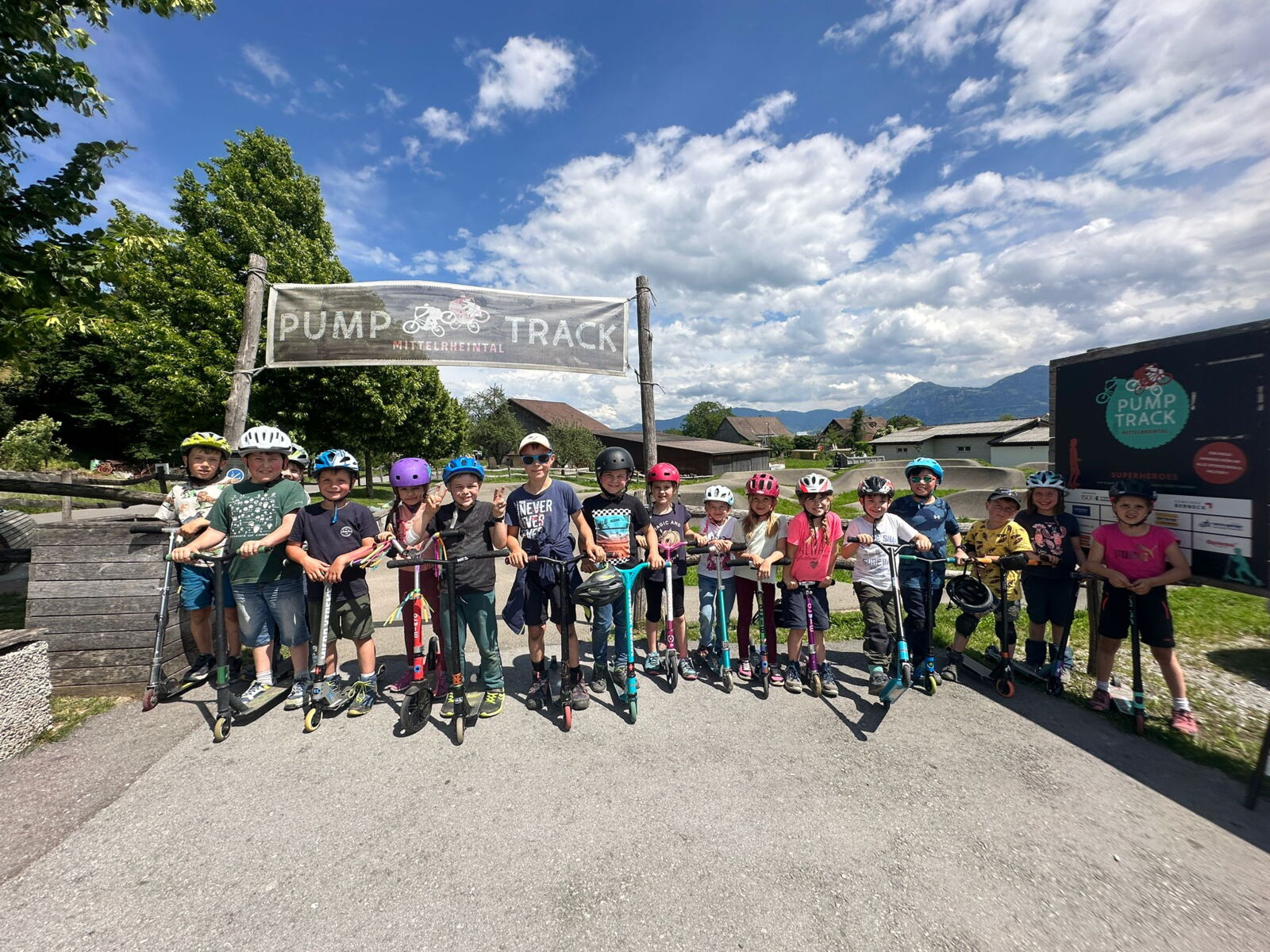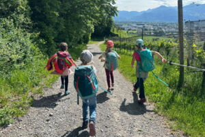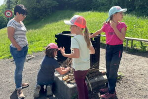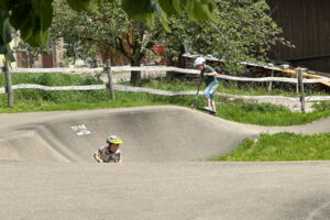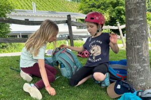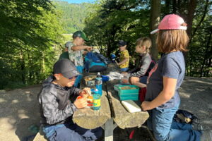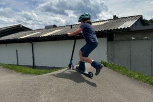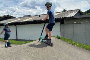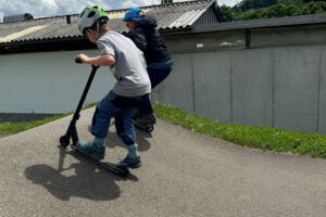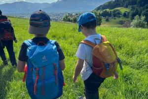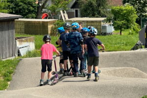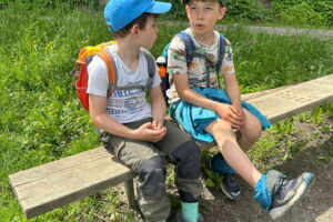 Unsere diesjährige Schulreise hat an der Bushaltestelle im Kobelwald begonnen. Der Bus hat uns nach Altstätten gebracht, wo wir mit einem doppelstöckigen Zug nach Heerbrugg gefahren sind. Mit dem Bus ging es dann nochmals ein kleines Stück bis nach Berneck. Angekommen hieß es erst einmal: Laufen. Dank dem schönen Wetter war das aber gar nicht schlimm und der erste Halt ließ nicht lange auf sich warten. Wie für eine Schulreise gewöhnlich waren die Rucksäcke voll mit leckeren Sachen für den Znüni. Danach hatten wir noch Zeit im Wald und in der Wiese zu spielen. Bis zum Mittagessen mussten wir nochmals etwas laufen. An der Grillstelle angekommen haben wir mit unserem mitgebrachten Holz ein Feuer für unsere Grillade gemacht. Was gibt es Besseres als eine Wurst bei wunderschönem Wetter mit der ganzen Klasse ! Nachdem wir uns im Wald noch etwas verweilt haben, ging es weiter zum Pumptrack. Am Vortag haben wir unsere Kikis und Helme in die Schule gebracht, diese haben dann beim Pumptrack schon auf uns gewartet. Trotz ein paar Schürfwunden war das Rumdüsen auf den Wellen und Schanzen des Pumptracks sehr cool. Leider ging es dann mit Bus und Zug über Heerbrugg und Altstätten wieder zurück in den Kobelwald. Wir blicken auf einen tollen Tag zurück.