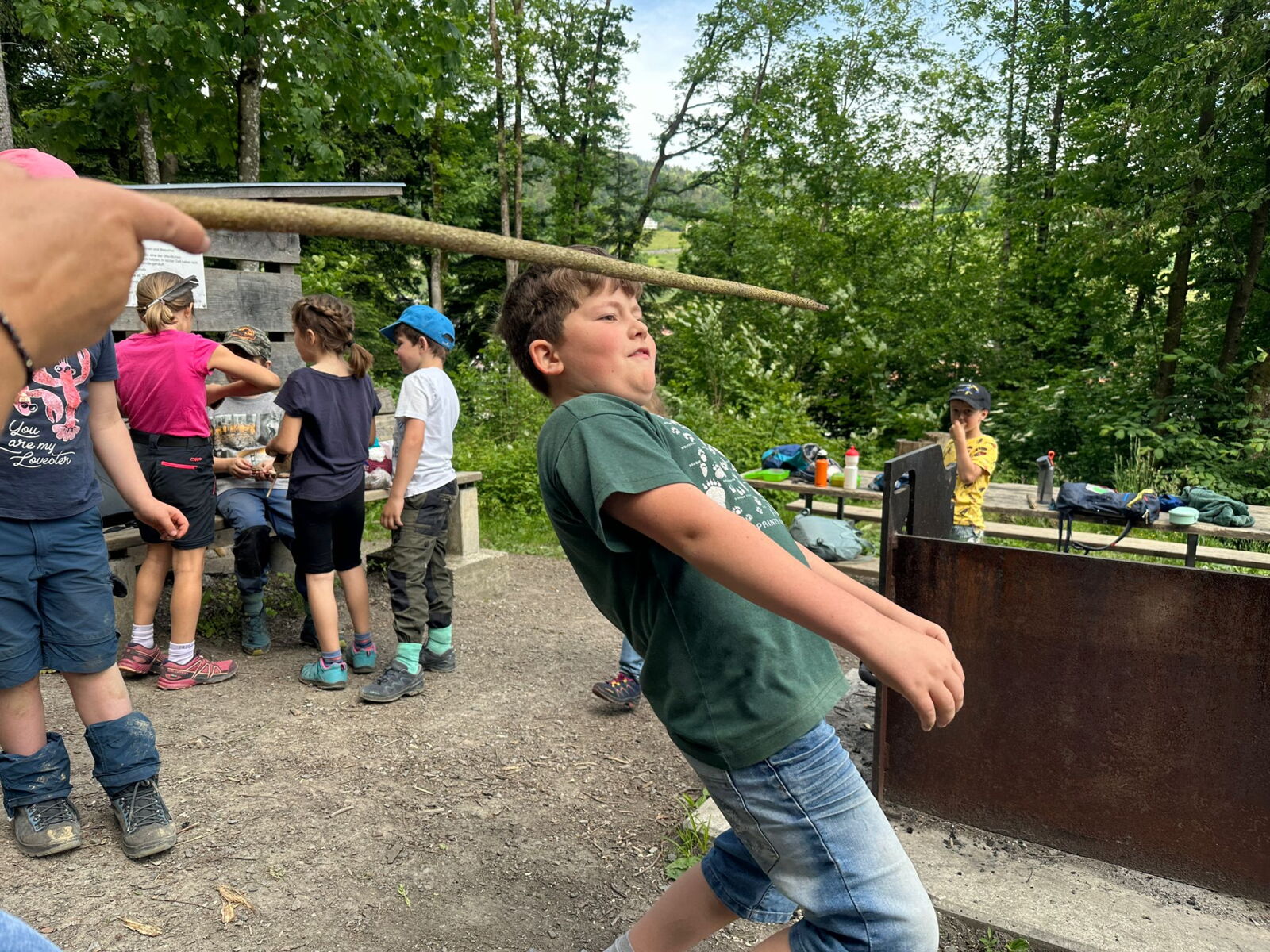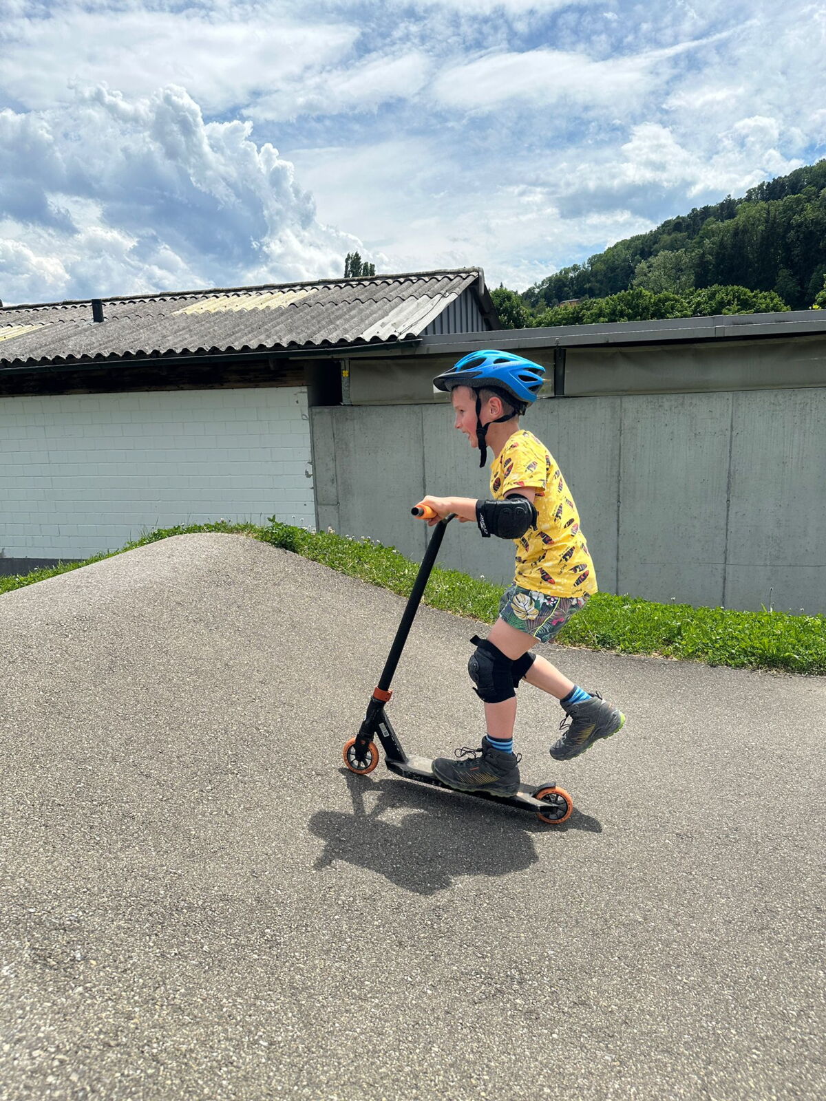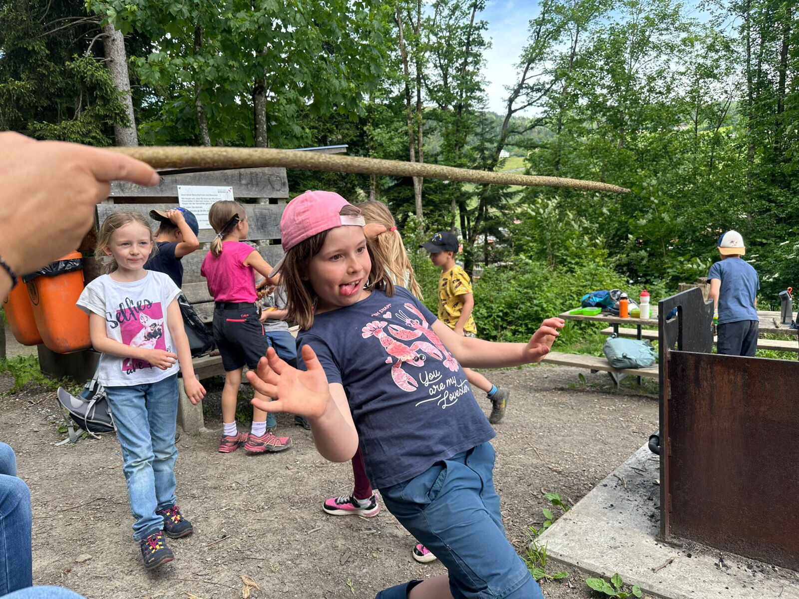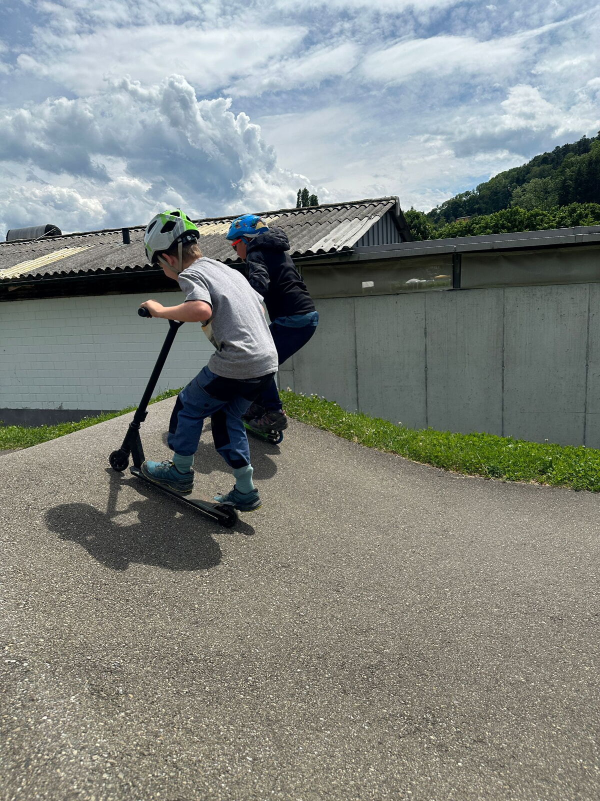 Unsere diesjährige Schulreise hat an der Bushaltestelle im Kobelwald begonnen. Der Bus hat uns nach Altstätten gebracht, wo wir mit einem doppelstöckigen Zug nach Heerbrugg gefahren sind. Mit dem Bus ging es dann nochmals ein kleines Stück bis nach Berneck. Angekommen hieß es erst einmal: Laufen. Dank dem schönen Wetter war das aber gar nicht schlimm und der erste Halt ließ nicht lange auf sich warten. Wie für eine Schulreise gewöhnlich waren die Rucksäcke voll mit leckeren Sachen für den Znüni. Danach hatten wir noch Zeit im Wald und in der Wiese zu spielen. Bis zum Mittagessen mussten wir nochmals etwas laufen. An der Grillstelle angekommen haben wir mit unserem mitgebrachten Holz ein Feuer für unsere Grillade gemacht. Was gibt es Besseres als eine Wurst bei wunderschönem Wetter mit der ganzen Klasse ! Nachdem wir uns im Wald noch etwas verweilt haben, ging es weiter zum Pumptrack. Am Vortag haben wir unsere Kikis und Helme in die Schule gebracht, diese haben dann beim Pumptrack schon auf uns gewartet. Trotz ein paar Schürfwunden war das Rumdüsen auf den Wellen und Schanzen des Pumptracks sehr cool. Leider ging es dann mit Bus und Zug über Heerbrugg und Altstätten wieder zurück in den Kobelwald. Wir blicken auf einen tollen Tag zurück.