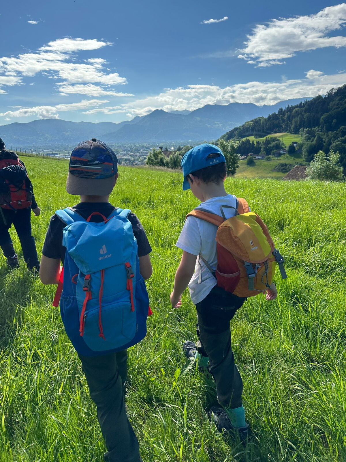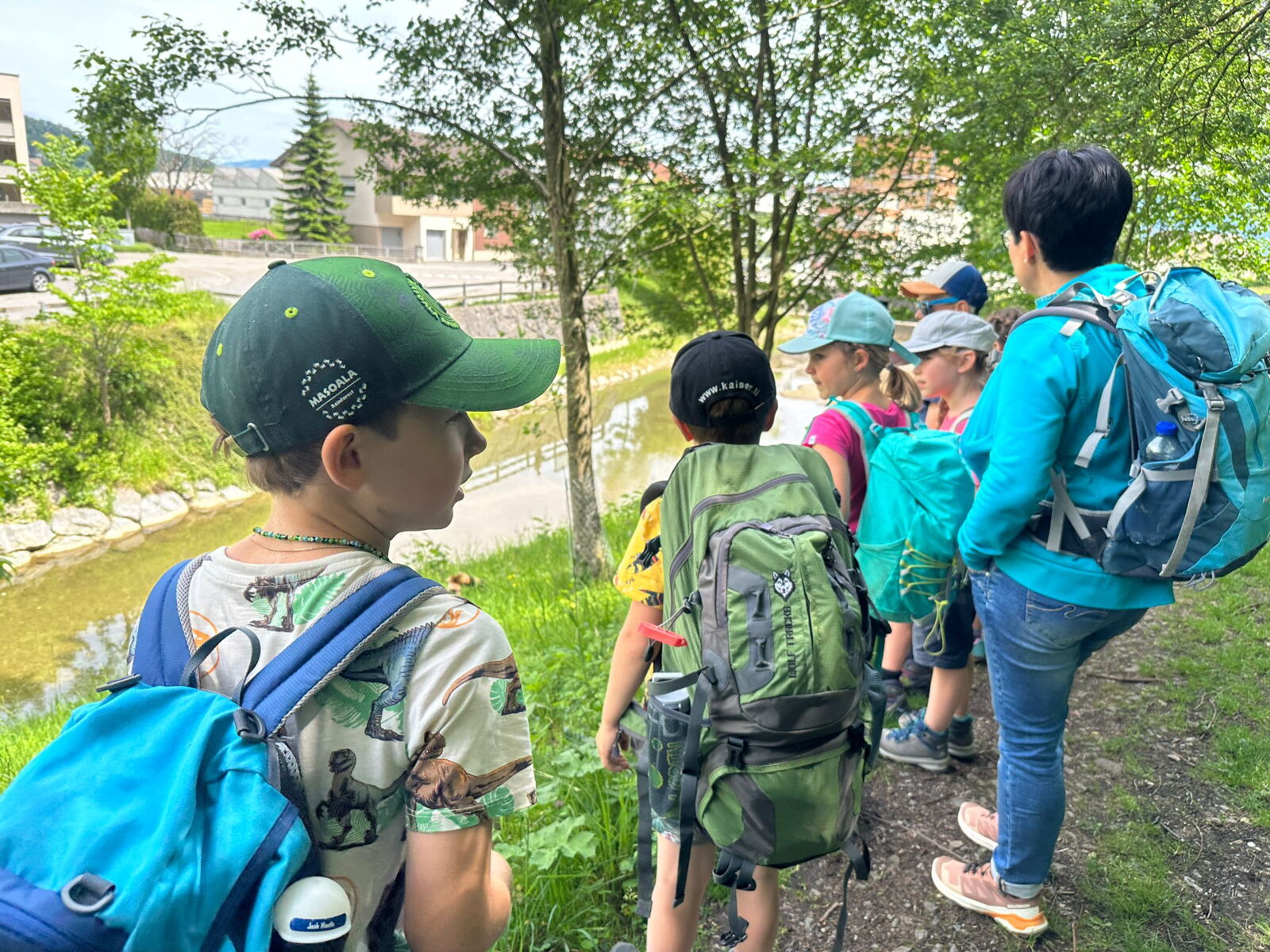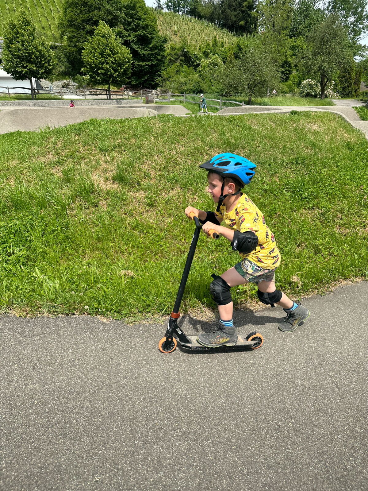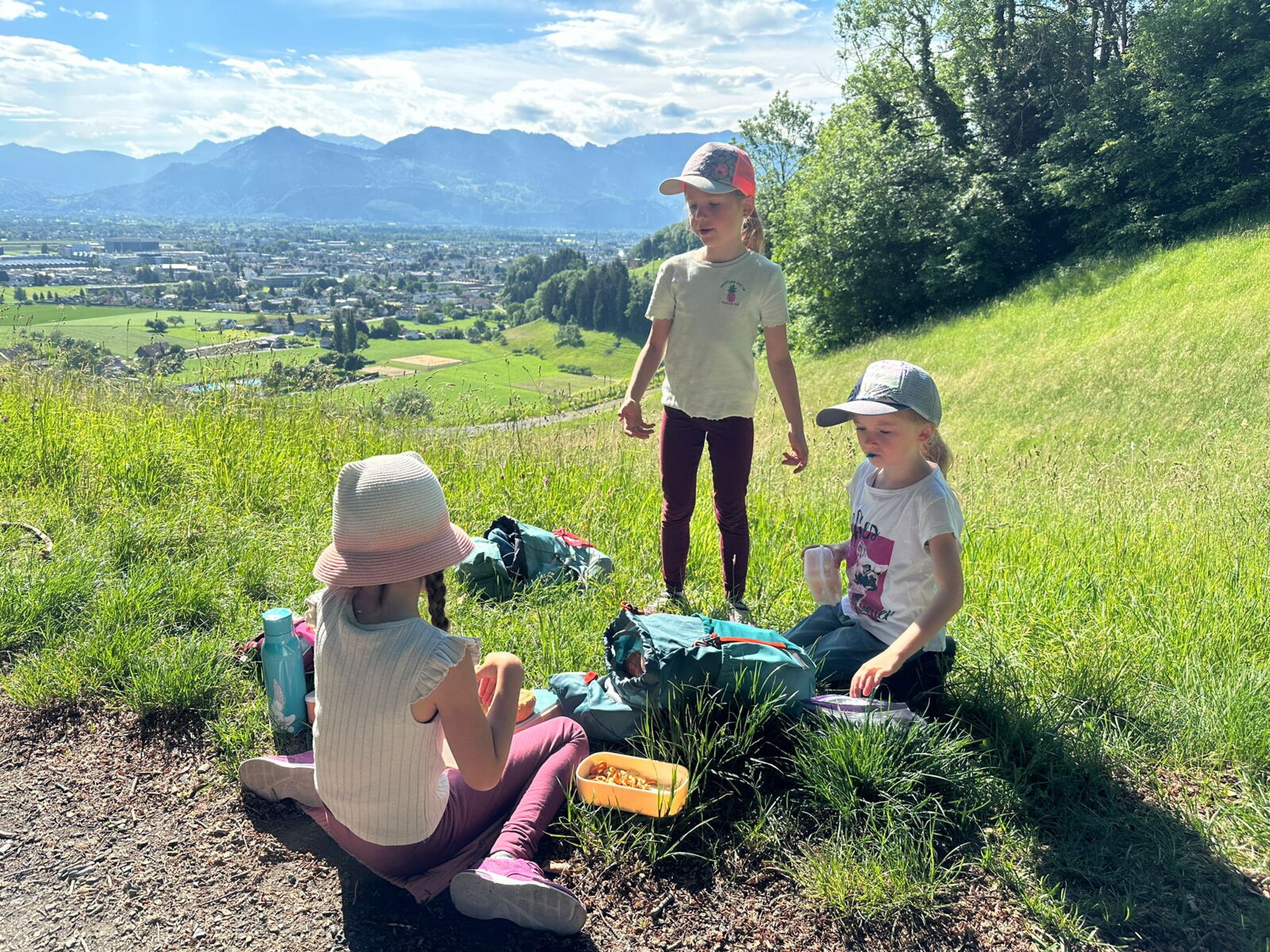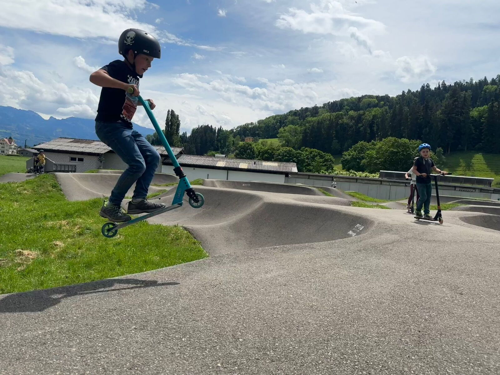 Unsere diesjährige Schulreise hat an der Bushaltestelle im Kobelwald begonnen. Der Bus hat uns nach Altstätten gebracht, wo wir mit einem doppelstöckigen Zug nach Heerbrugg gefahren sind. Mit dem Bus ging es dann nochmals ein kleines Stück bis nach Berneck. Angekommen hieß es erst einmal: Laufen. Dank dem schönen Wetter war das aber gar nicht schlimm und der erste Halt ließ nicht lange auf sich warten. Wie für eine Schulreise gewöhnlich waren die Rucksäcke voll mit leckeren Sachen für den Znüni. Danach hatten wir noch Zeit im Wald und in der Wiese zu spielen. Bis zum Mittagessen mussten wir nochmals etwas laufen. An der Grillstelle angekommen haben wir mit unserem mitgebrachten Holz ein Feuer für unsere Grillade gemacht. Was gibt es Besseres als eine Wurst bei wunderschönem Wetter mit der ganzen Klasse ! Nachdem wir uns im Wald noch etwas verweilt haben, ging es weiter zum Pumptrack. Am Vortag haben wir unsere Kikis und Helme in die Schule gebracht, diese haben dann beim Pumptrack schon auf uns gewartet. Trotz ein paar Schürfwunden war das Rumdüsen auf den Wellen und Schanzen des Pumptracks sehr cool. Leider ging es dann mit Bus und Zug über Heerbrugg und Altstätten wieder zurück in den Kobelwald. Wir blicken auf einen tollen Tag zurück.