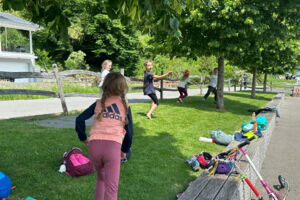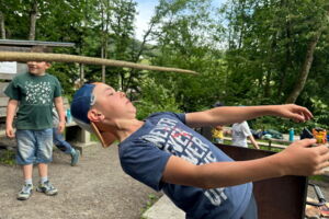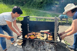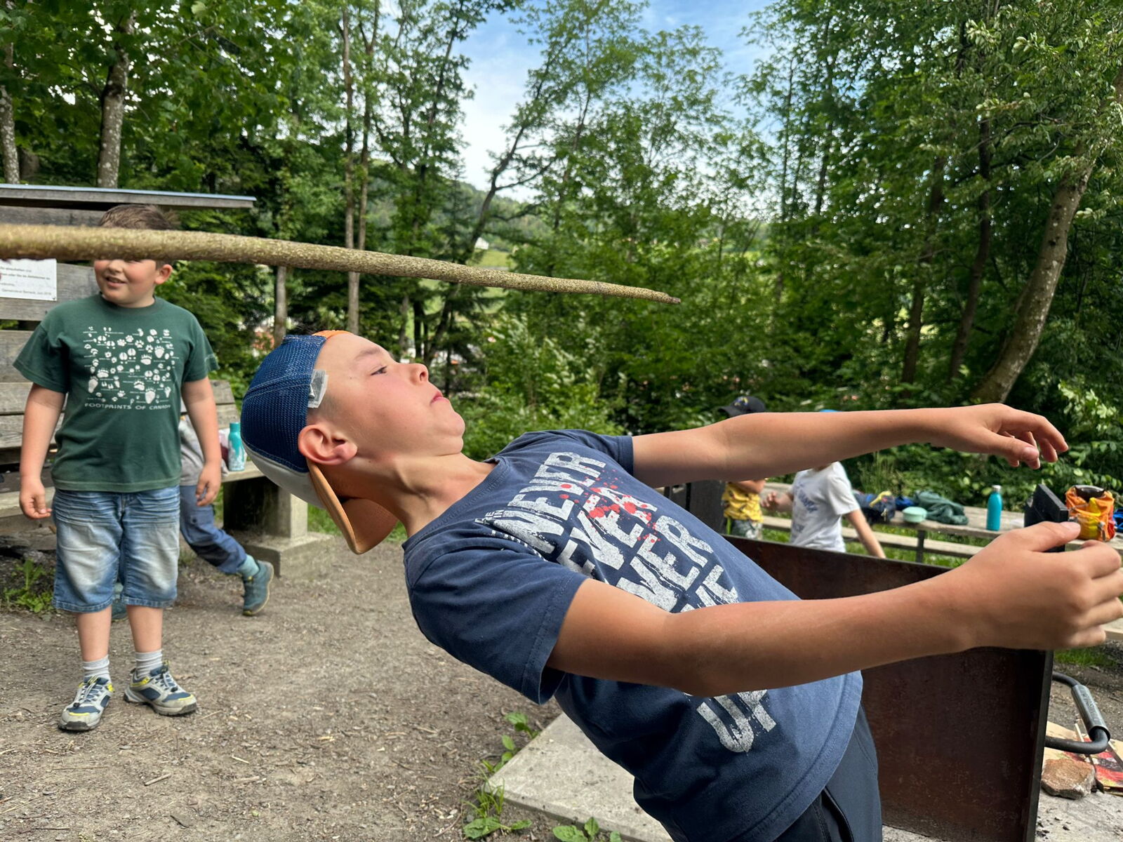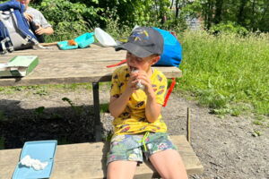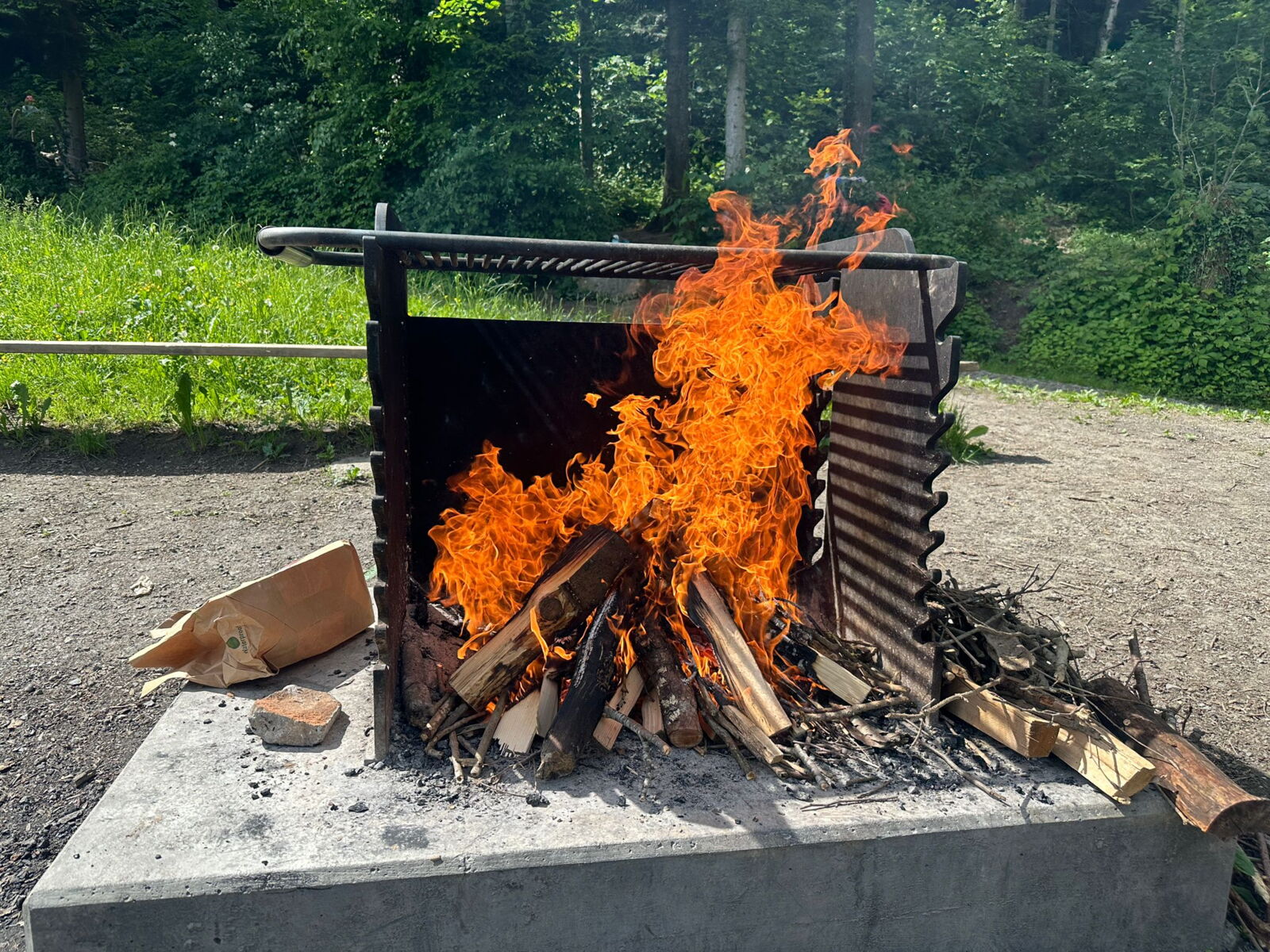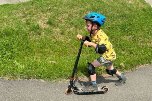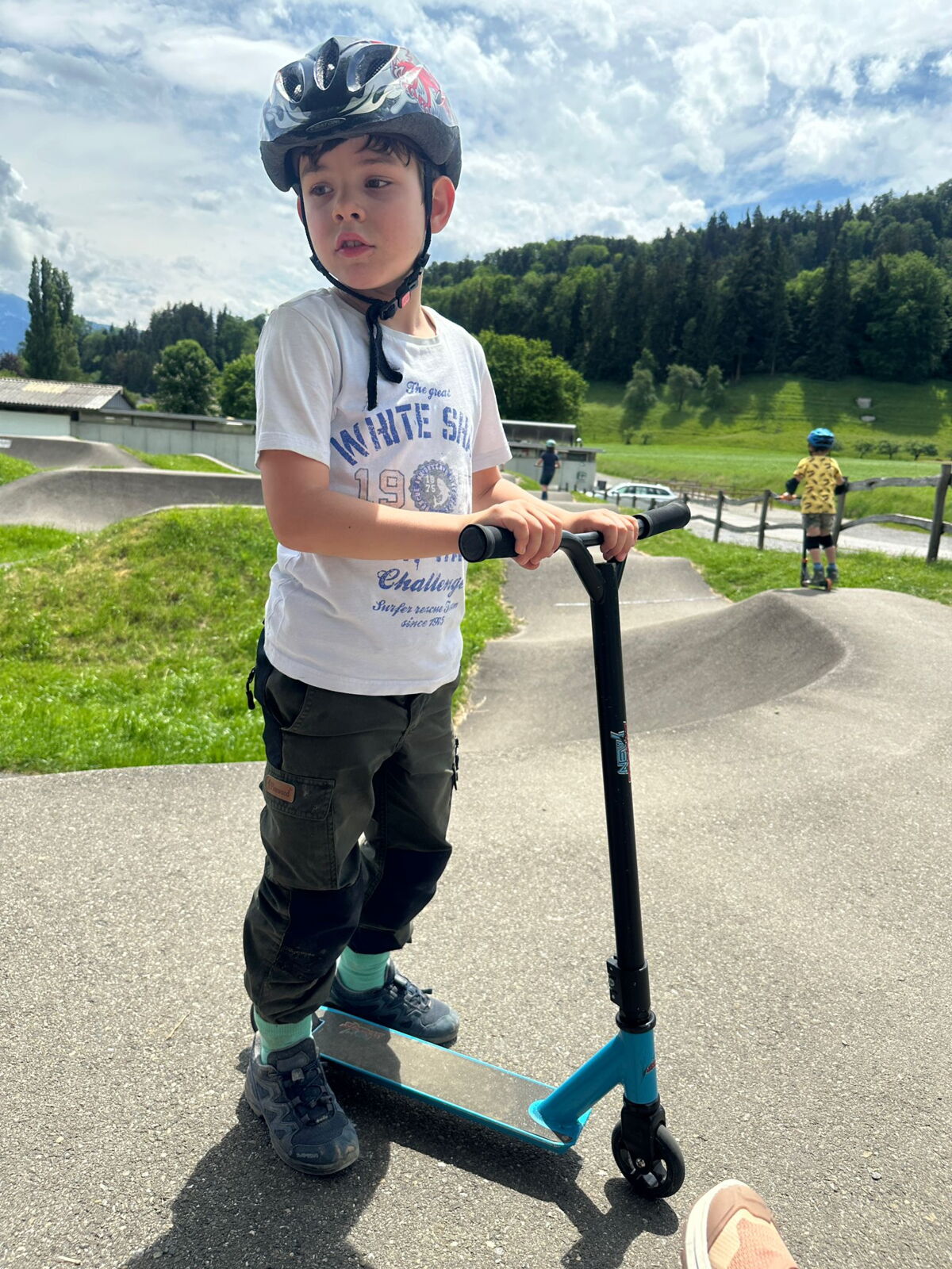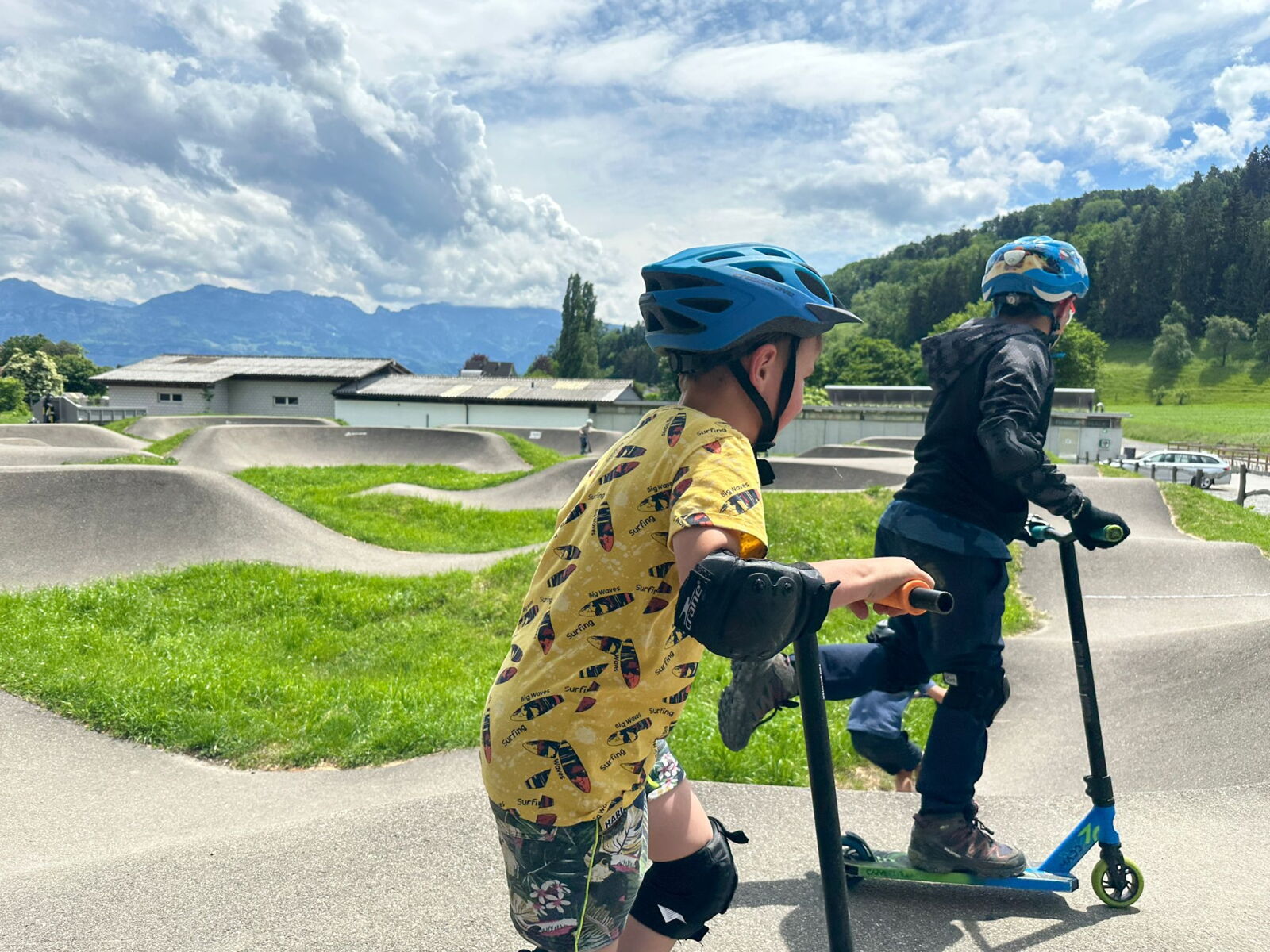 Unsere diesjährige Schulreise hat an der Bushaltestelle im Kobelwald begonnen. Der Bus hat uns nach Altstätten gebracht, wo wir mit einem doppelstöckigen Zug nach Heerbrugg gefahren sind. Mit dem Bus ging es dann nochmals ein kleines Stück bis nach Berneck. Angekommen hieß es erst einmal: Laufen. Dank dem schönen Wetter war das aber gar nicht schlimm und der erste Halt ließ nicht lange auf sich warten. Wie für eine Schulreise gewöhnlich waren die Rucksäcke voll mit leckeren Sachen für den Znüni. Danach hatten wir noch Zeit im Wald und in der Wiese zu spielen. Bis zum Mittagessen mussten wir nochmals etwas laufen. An der Grillstelle angekommen haben wir mit unserem mitgebrachten Holz ein Feuer für unsere Grillade gemacht. Was gibt es Besseres als eine Wurst bei wunderschönem Wetter mit der ganzen Klasse ! Nachdem wir uns im Wald noch etwas verweilt haben, ging es weiter zum Pumptrack. Am Vortag haben wir unsere Kikis und Helme in die Schule gebracht, diese haben dann beim Pumptrack schon auf uns gewartet. Trotz ein paar Schürfwunden war das Rumdüsen auf den Wellen und Schanzen des Pumptracks sehr cool. Leider ging es dann mit Bus und Zug über Heerbrugg und Altstätten wieder zurück in den Kobelwald. Wir blicken auf einen tollen Tag zurück.