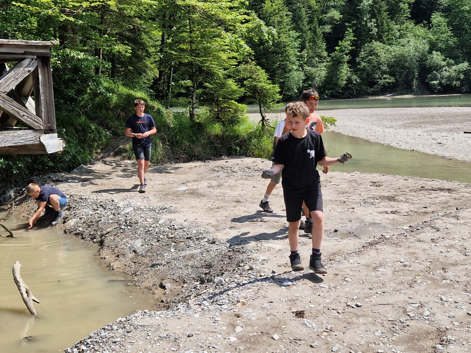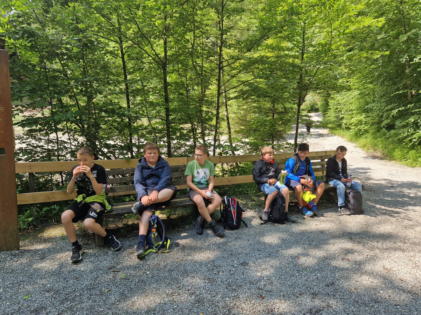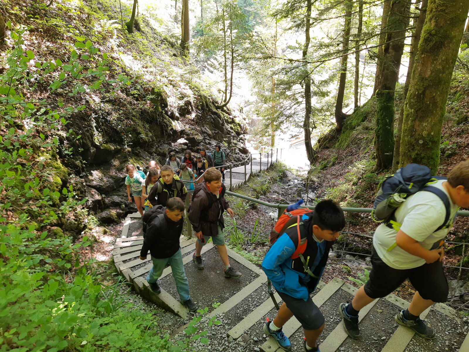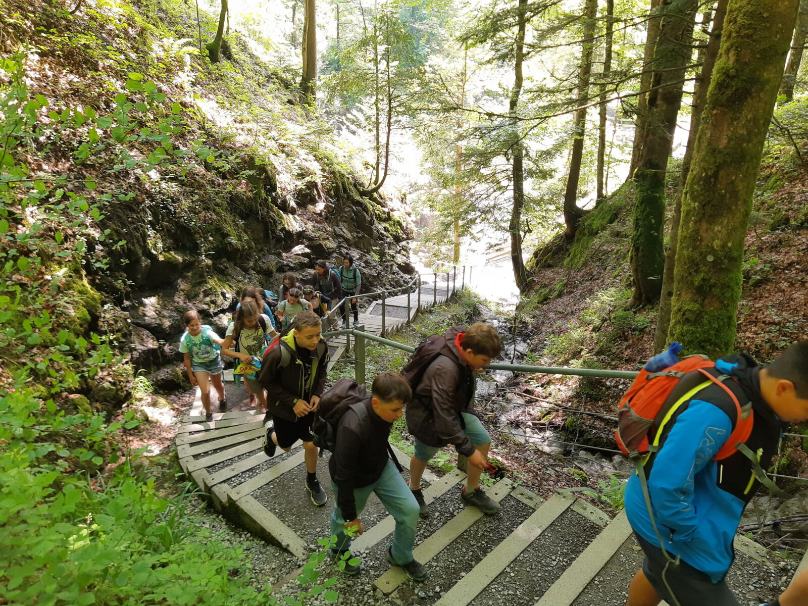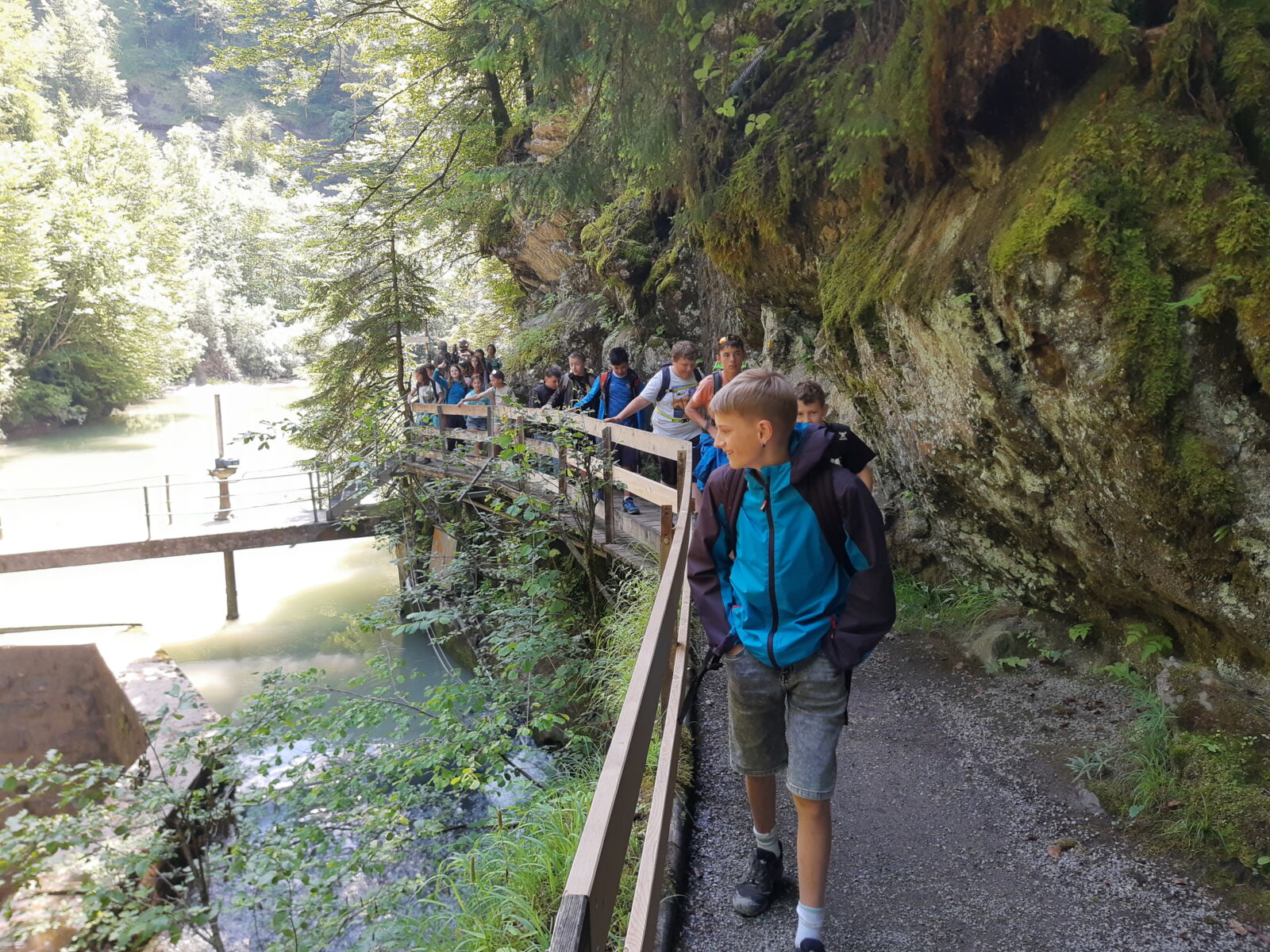 Frau Tiefenauer hatte sich keinen guten Zeitpunkt ausgewählt, ihr Knie so sehr zu strapazieren, dass es zu streiken begann. Deshalb musste die 5./6. Klasse an diesem Tag leider ohne sie auskommen, was dank qualifiziertem Ersatz (Frau Tiefenauer next generation) kein Problem darstellte. Jedenfalls brauchte man für diesen sportlichen Ausflug zwei gesunde Beine. Die Kinder bewältigten aber die insgesamt etwa 50 Kilometer auf dem Velo nach Dornbirn und zurück und das bisschen Wandern den Karren hinunter und durch die Rappenlochschlucht spielend. Kälteresistente wagten sich auf der Heimfahrt sogar in den Alten Rhein, um sich etwas abzukühlen.