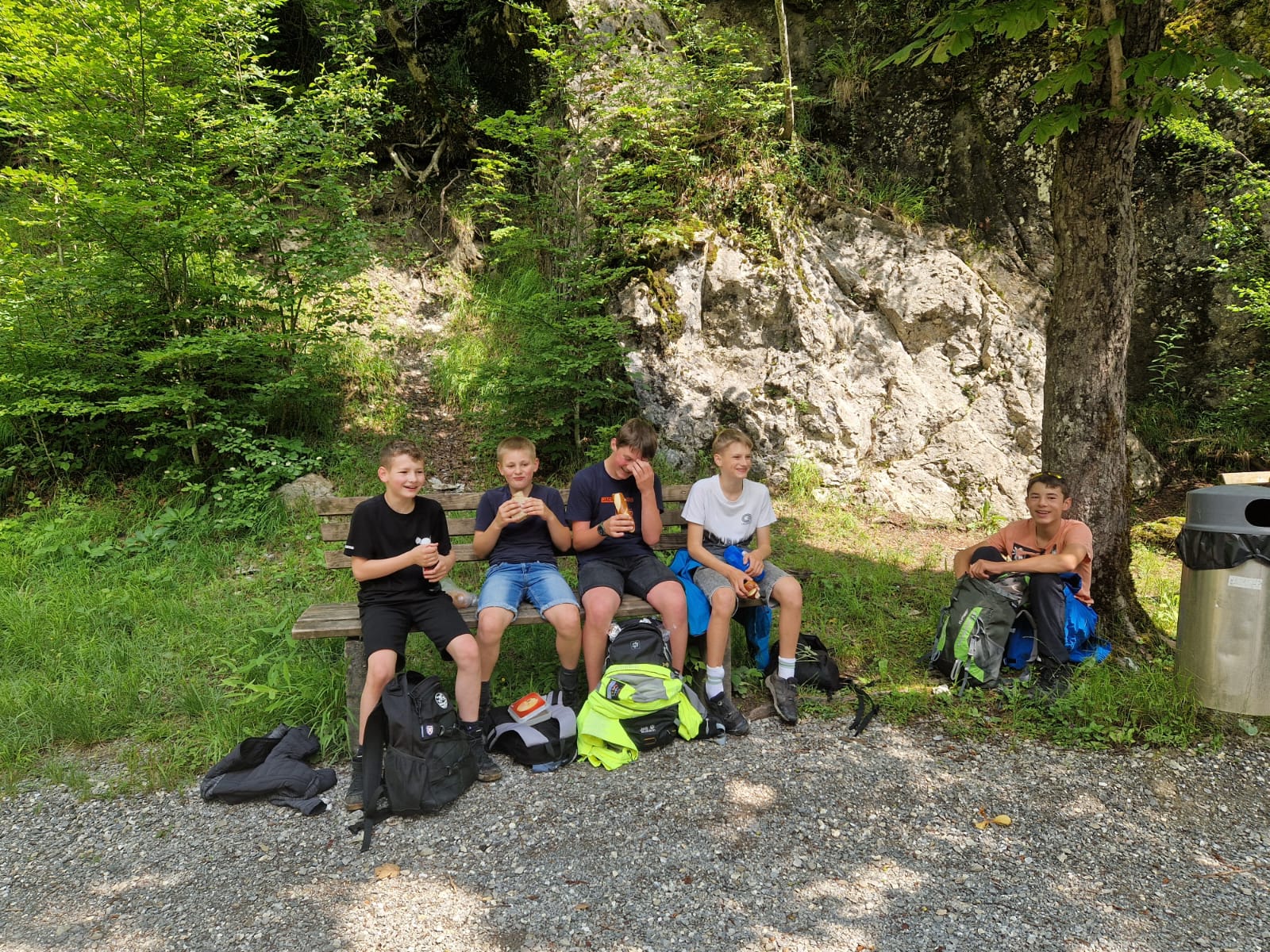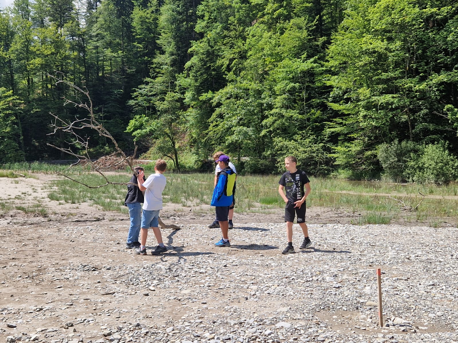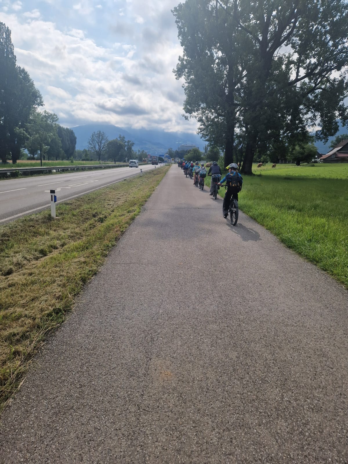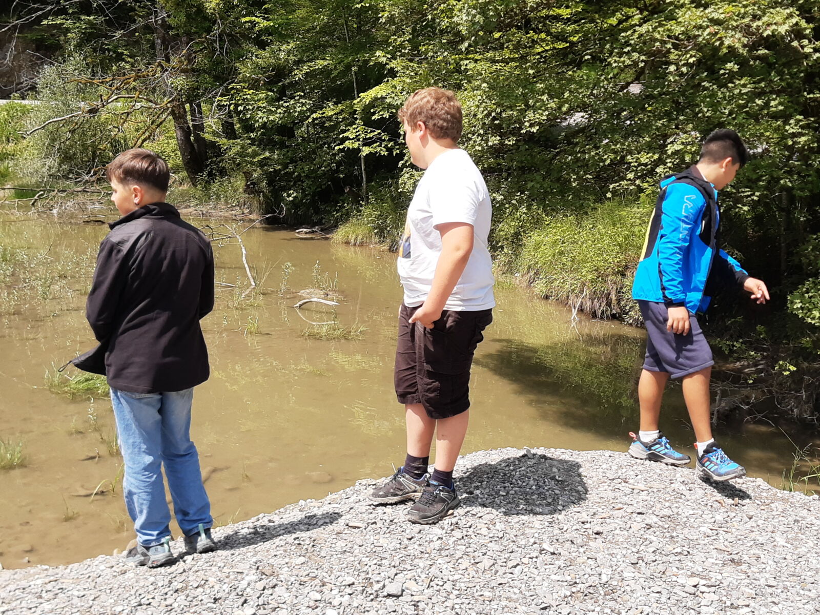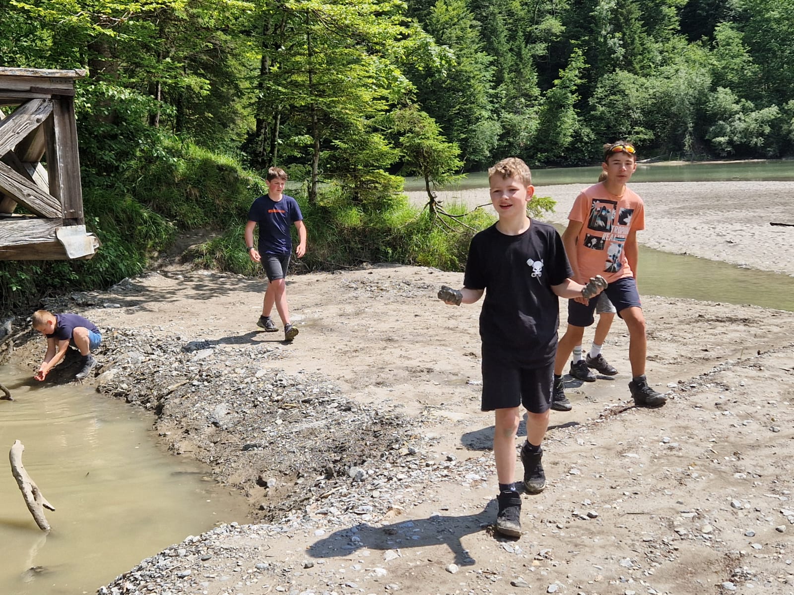 Frau Tiefenauer hatte sich keinen guten Zeitpunkt ausgewählt, ihr Knie so sehr zu strapazieren, dass es zu streiken begann. Deshalb musste die 5./6. Klasse an diesem Tag leider ohne sie auskommen, was dank qualifiziertem Ersatz (Frau Tiefenauer next generation) kein Problem darstellte. Jedenfalls brauchte man für diesen sportlichen Ausflug zwei gesunde Beine. Die Kinder bewältigten aber die insgesamt etwa 50 Kilometer auf dem Velo nach Dornbirn und zurück und das bisschen Wandern den Karren hinunter und durch die Rappenlochschlucht spielend. Kälteresistente wagten sich auf der Heimfahrt sogar in den Alten Rhein, um sich etwas abzukühlen.