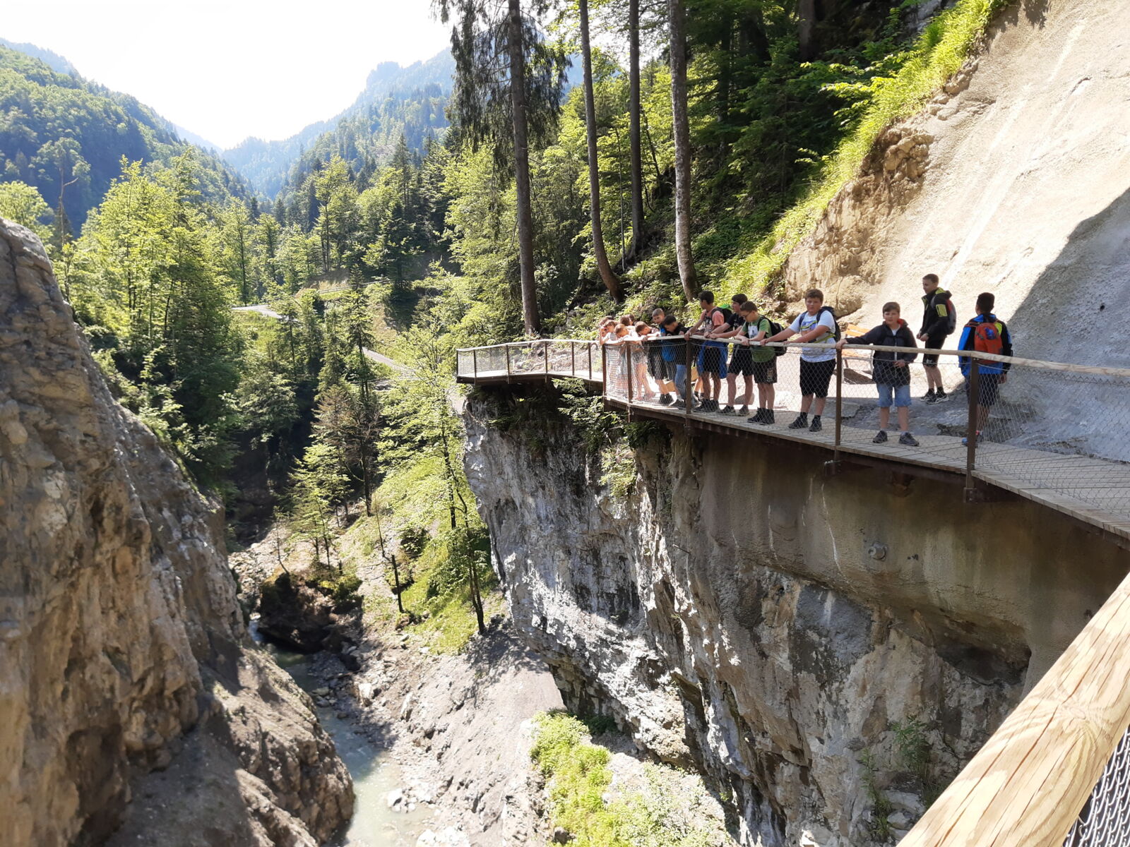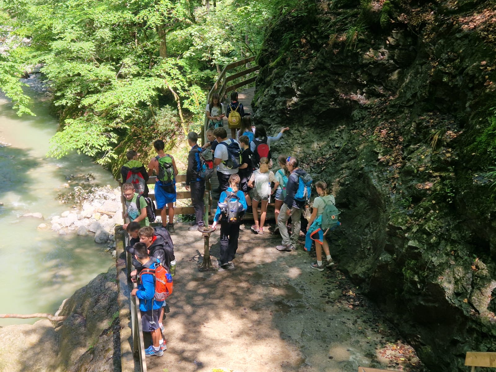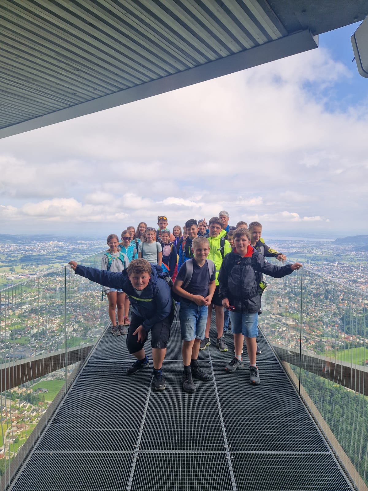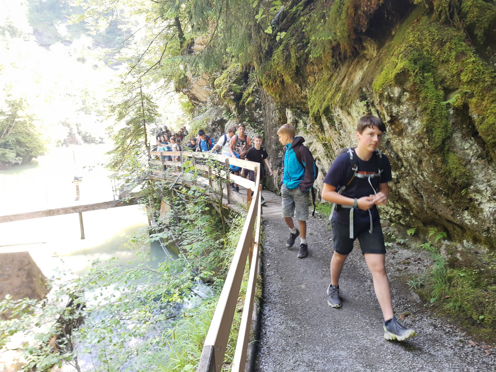 Frau Tiefenauer hatte sich keinen guten Zeitpunkt ausgewählt, ihr Knie so sehr zu strapazieren, dass es zu streiken begann. Deshalb musste die 5./6. Klasse an diesem Tag leider ohne sie auskommen, was dank qualifiziertem Ersatz (Frau Tiefenauer next generation) kein Problem darstellte. Jedenfalls brauchte man für diesen sportlichen Ausflug zwei gesunde Beine. Die Kinder bewältigten aber die insgesamt etwa 50 Kilometer auf dem Velo nach Dornbirn und zurück und das bisschen Wandern den Karren hinunter und durch die Rappenlochschlucht spielend. Kälteresistente wagten sich auf der Heimfahrt sogar in den Alten Rhein, um sich etwas abzukühlen.