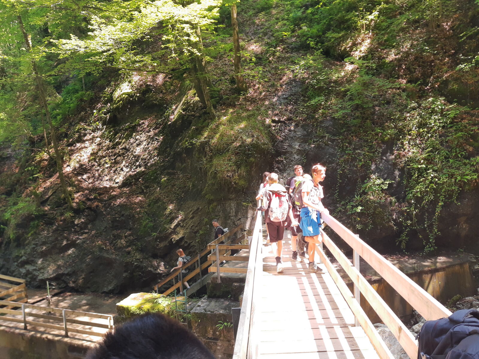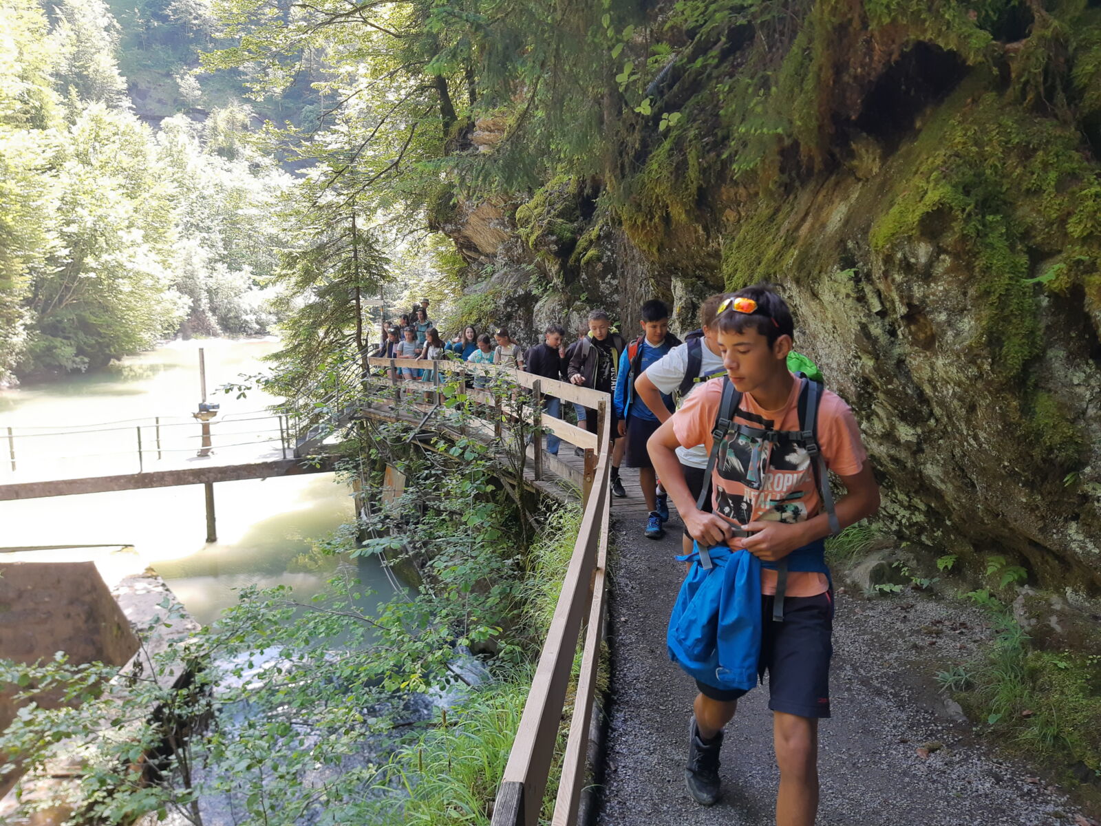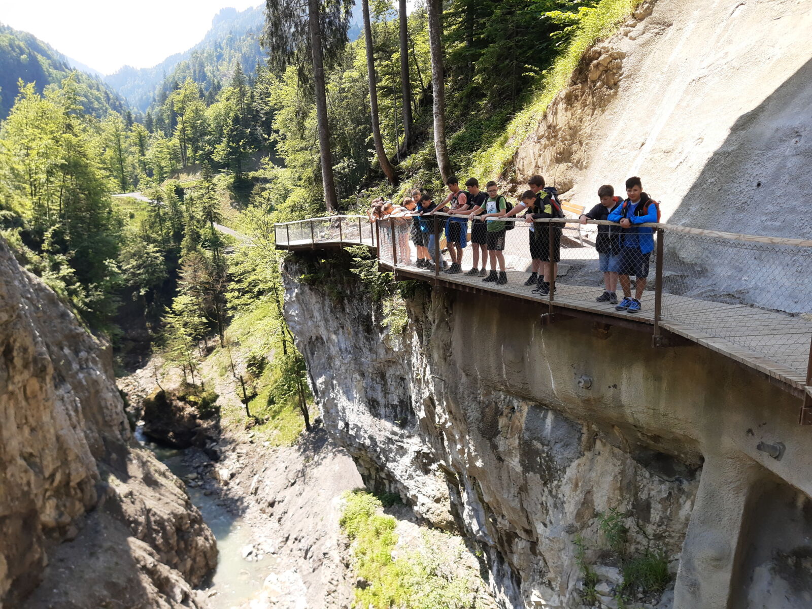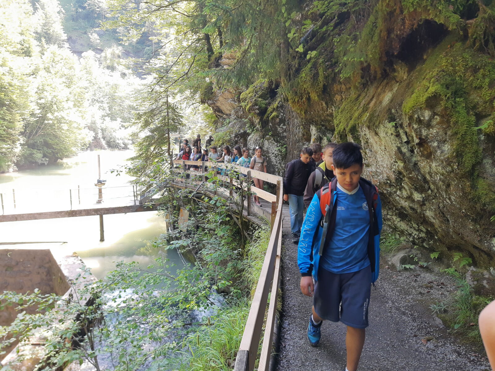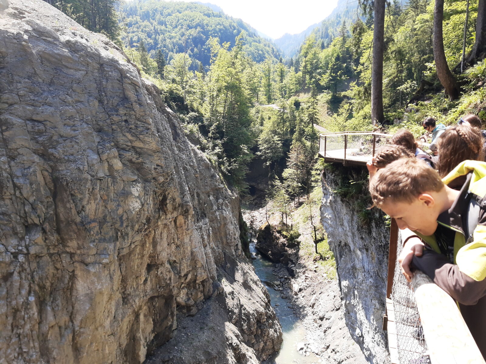 Frau Tiefenauer hatte sich keinen guten Zeitpunkt ausgewählt, ihr Knie so sehr zu strapazieren, dass es zu streiken begann. Deshalb musste die 5./6. Klasse an diesem Tag leider ohne sie auskommen, was dank qualifiziertem Ersatz (Frau Tiefenauer next generation) kein Problem darstellte. Jedenfalls brauchte man für diesen sportlichen Ausflug zwei gesunde Beine. Die Kinder bewältigten aber die insgesamt etwa 50 Kilometer auf dem Velo nach Dornbirn und zurück und das bisschen Wandern den Karren hinunter und durch die Rappenlochschlucht spielend. Kälteresistente wagten sich auf der Heimfahrt sogar in den Alten Rhein, um sich etwas abzukühlen.